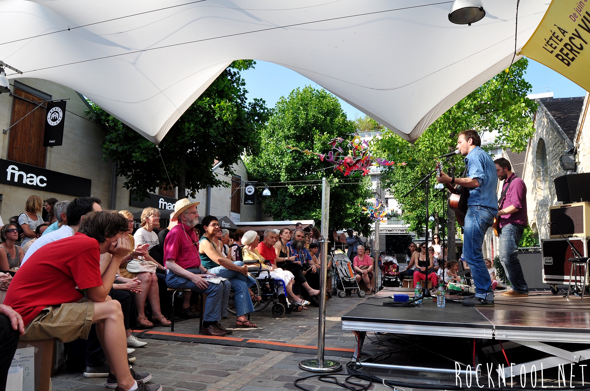 Hier, en fin d’après midi, le Kid était de retour pour un concert gratuit organisé dans le cadre de Musiques en terrasse, au cœur de Bercy Village (Cour St-Émilion). Les deux Cléments se sont installés en face d’un beau petit public enthousiaste qui finira par faire la queue pour s’offrir un CD de l’artiste à la fin du concert. Un cadre très convivial et de la musique qui plaît. Que demande le peuple ?