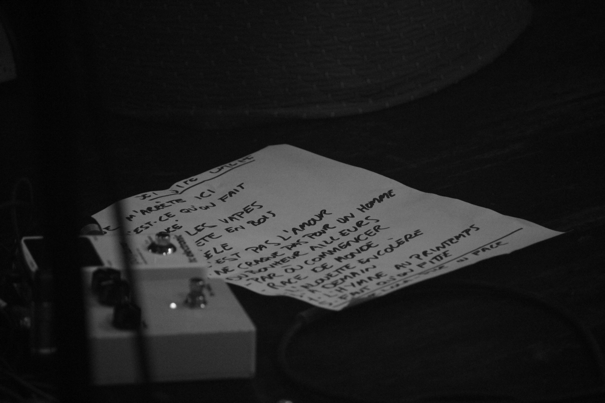 Dire que Jipé est à l’aise sur scène serait mentir. Il est à la maison, « au salon » dira-t-il en s’installant pour deux titres au sein du public, en acoustique. Il a même ramené ses potes, les 3 minutes sur mer, avec lesquels il prend grand plaisir à jouer, en interprétant des morceaux assez sublimes préparés spécialement pour rendre hommage à Félix Leclerc (dans le cadre du festival Aurores Montréal). L’équilibre entre le groupe et lui est franchement bon (ils se connaissent très bien), surtout sur ces parties instrumentales où Jipé fait des exceptionnels solos de trompette – modifiant la portée et la couleur du son avec le bout d’une ventouse (oui oui si on vous le dit).