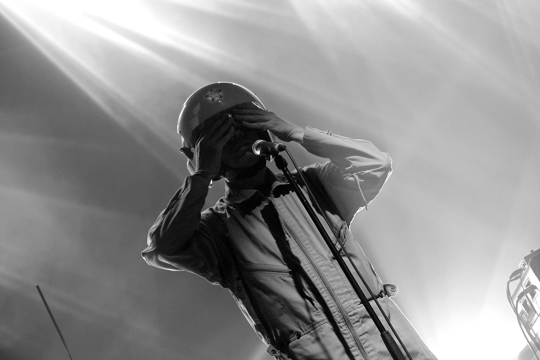 Cascadeur et RockNfool, c’est une histoire qui a commencé dans une église, il y a cinq ans. Deux albums plus tard, le projet à changé. Il n’est plus tout seul mais accompagné de trois autres musiciens qui avancent tous masqués. Seul le chanteur garde son casque. Cinq ans après, il y a toujours des couillons pour dire “nan mais on dirait trop Daft Punk quoi”. Cinq ans après, on est toujours émerveillés par cette voix haut perchée, cet univers poétique, cette atmosphère légère et enfantine… Et cinq ans après le début, on regrette cependant que Cascadeur ne soit pas moins entouré sur scène… Les plus beaux moments restent tout de même quand il chante en tête-à-tête avec son piano.