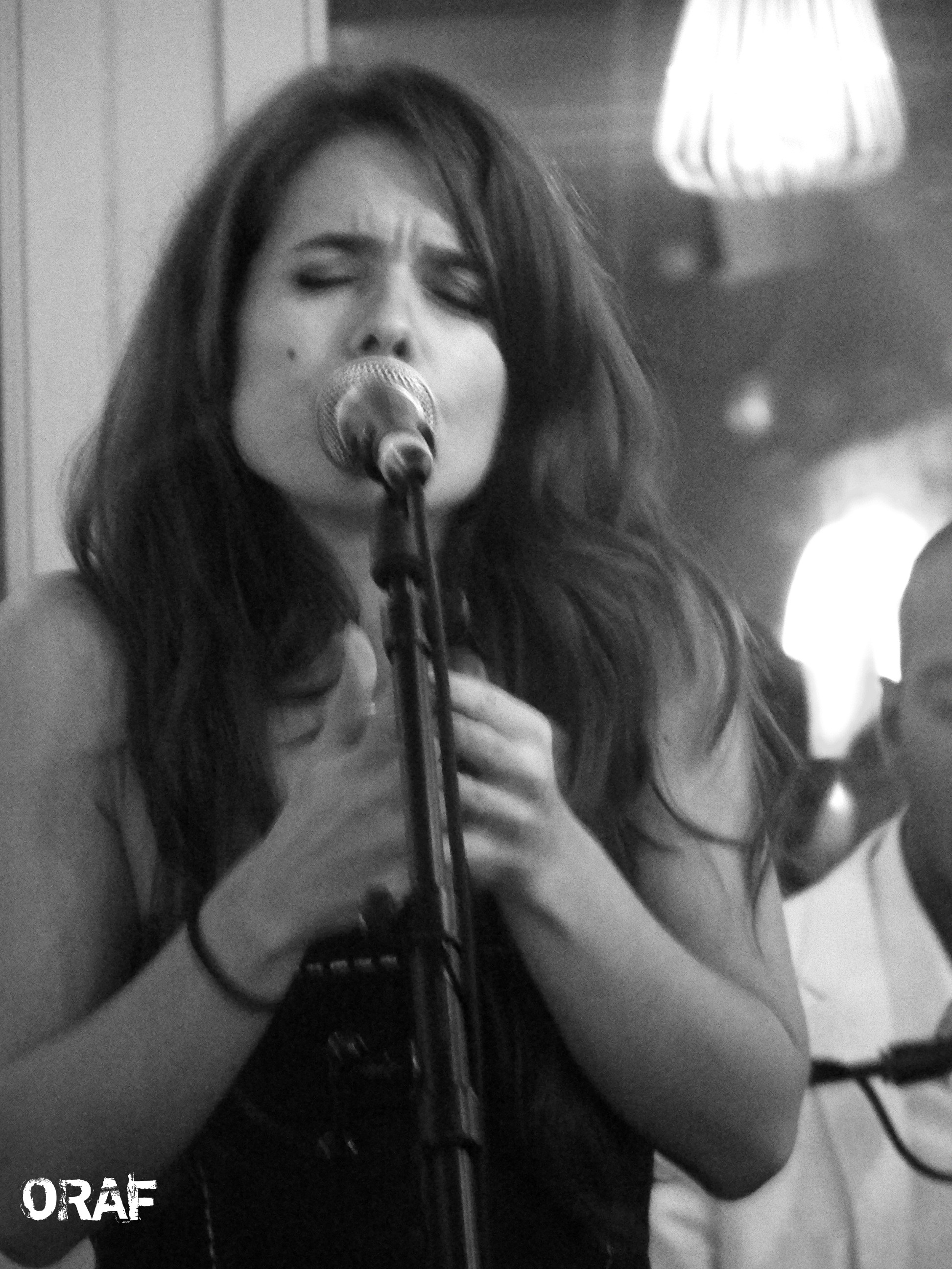 Allure de petite fille, les cheveux longs et la voix fluette, Babet c’est un peu une poupée. Une poupée grandeur nature qui lorsqu’elle se met à chanter, elle nous enchante totalement. Son univers est particulier, presque magique. Et, elle ne chante pas non, elle raconte des histoires, et nous sommes tous pendus à ses lèvres. On se tait et on écoute. On est envouté et émerveillé. Miss A dit que Babet c’est un peu une fée. La comparaison est tellement bien trouvée, que j’ose la lui reprendre. Son album lui est un conte : d’ailleurs l’album s’intitule le Piano Monstre, et pourrait s’apparenter à un livre pour grand enfant, ou Babet raconte des histoires. D’amour pour la plupart. Et, ce 29 septembre, au Pavillon du Lac, c’est presque yeux dans les yeux que la belle Babet nous les raconte. Elle commence par “Je pense à nous“, que l’on peut entendre un peu partout en ce moment. On ne résiste pas à cette jolie ballade entraînante et entêtante. Elle continue avec le “Piano Monstre“, avant d’accueillir son premier guest Hugh Coltman. Le bel apollon intervient en effet sur le titre “Les Amouratiques“. Pour la petite histoire le titre a été écrit autour d’une table par les deux artistes. Sur scène une belle complicité se dégage du duo, et on ne peut s’empêcher de sourire niaisement à la fin du morceau. Hugh Coltman se retire, et Babet continue l’exploration du Piano Monstre, avant l’arrivée de son deuxième invité. L’homme qui a une grosse voix et qui sort de sa caverne : Artur H. De nouveau, on voit que les deux artistes sont très proches et de véritables amis, du coup le titre “Ciel de Soie”, déjà parfait sur l’album, est sublimé en live. Quelques morceaux plus tard c’est son complice de toujours Mathias Malzieu qui l’accompagne. Ces deux-là inséparable chanteront le titre “Tes yeux dans ce bar“. Toujours aussi énergique Mathias est ravi d’être là, et nous on est ravis de voir les deux s’amuser autant!