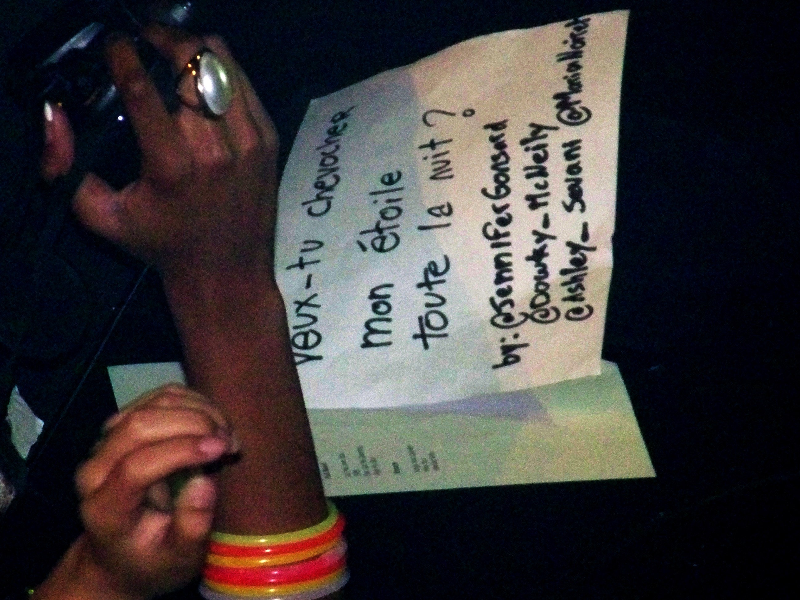 L’anglais visiblement très heureux d’échanger avec son public, demandera si ce dernier aime danser? Inutile de préciser que oui, puisqu’il se déhanche depuis près d’une heure ! Mais, pour Julian ce n’est pas suffisant, et il annonce avoir la chanson parfaite pour “la danse” : “She’s Got Me Dancing“. En pleine chanson, une fan présente au premier rang tend une feuille au jeune homme qui, éclate de rire avant de poser la feuille sur la scène : “Veux-tu CHEVOCHER MON ETOILE TOUTE LA NUIT”, c’était l’objet du message (les filles tenez-nous au courant, est-ce que la demande a été prise en compte?). Justement, c’est avec “Ride My Star” que Julian Perretta conclut et se retire.