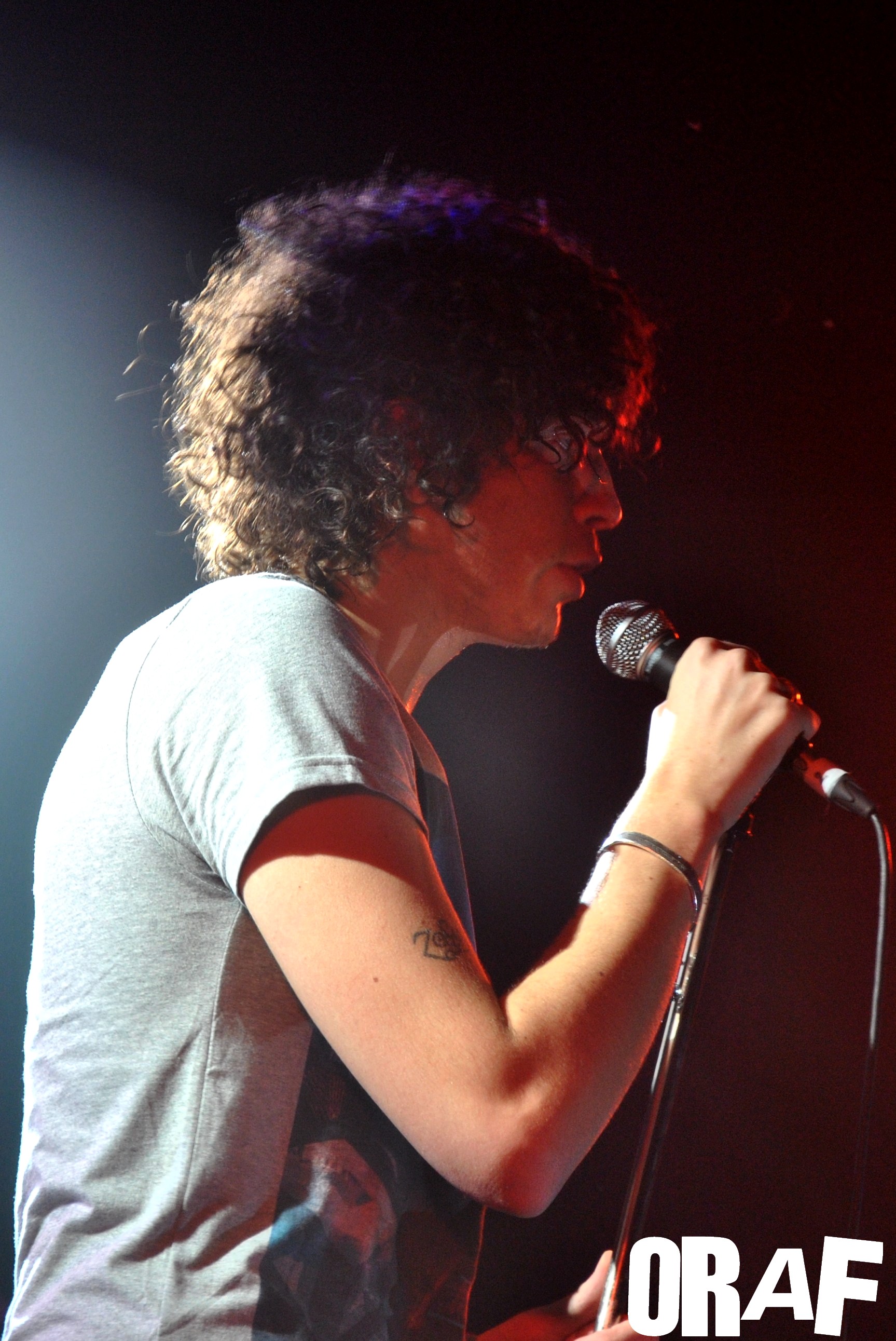 Après avoir joué devant une vingtaine de fan (et une cinquantaine de curieux) à la Paris Games Week la semaine dernière, Julian donne l’impression d’apprécier les show à comité réduit avec ce concert privé organisé par Voltage. Seulement une poignée de chanceux on ainsi pu franchir les portes du Bus Palladium à 19h30 ce vendredi 5 novembre. Une heure plus tard, c’est un Julian surexcité qui monte sur scène et commence d’entrée de jeu avec Urgently Needed. Le public est déjà bien réveillé et entonne le refrain avec plein d’entrain ! Il enchaîne avec sa reprise de Phoenix : If I Ever Feel Better ! Puis c’est au tour d’une chanson qu’il dit beaucoup aimer, Stitch Me Up. A la fin de ce morceau, il voit un gros nounours avec une perruque aussi bouclée que ses cheveux, qui a été apporté par des fans, le prend, et nous présente le nouveau membre du groupe. Décidemment Julian est vraiment en forme. Il nous explique ensuite qu’il est très touché par notre présence, et que ce concert sera le dernier de l’année 2010 dans la capitale, voire même le dernier avant son prochain concert parisien le 16 avril 2011. Petit moment d’indignation, puis il nous demande si nous aimons danser?