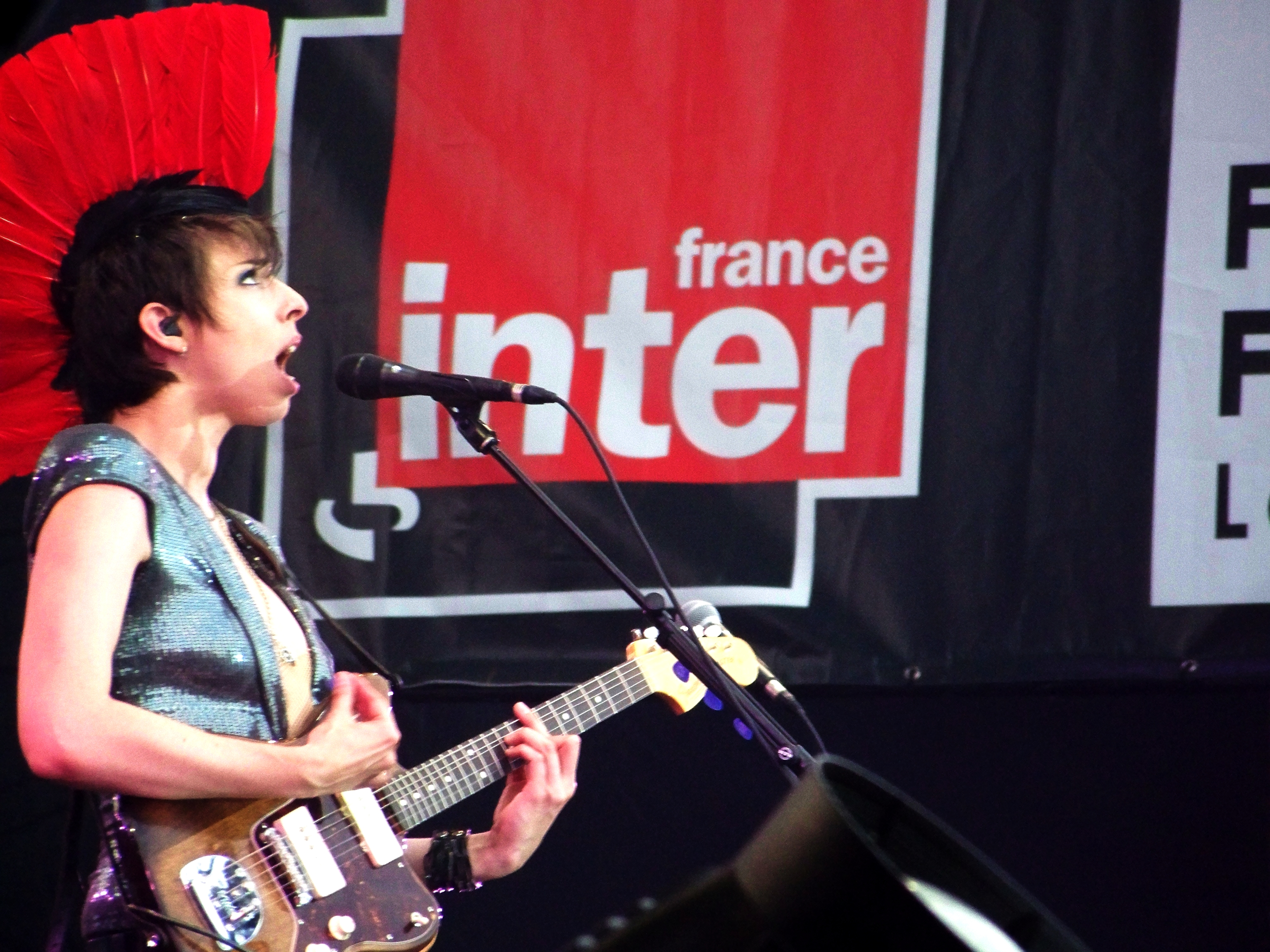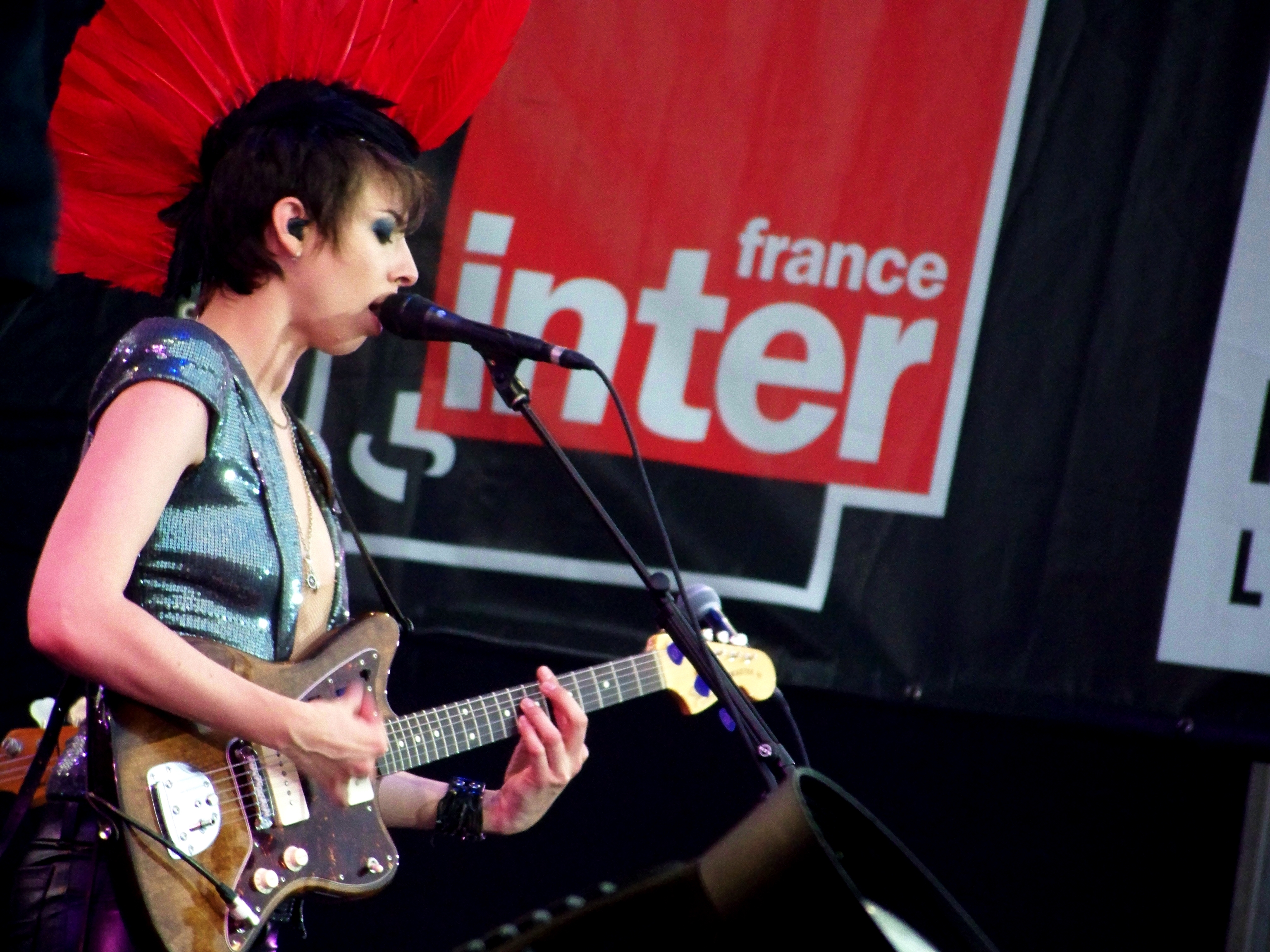 Mademoiselle K, c’est trop la classe. C’te fille je l’aime. Et j’aime encore plus sa crête rouge, son blouson en cuirs sans manches, ses deux guitaristes à chapeau, les grimaces de Mademoiselle K. J’arrêtais pas de la rater à Paris, il a fallu descendre à La Rochelle pour la voir, et ça fait plaisir. Seul point noir : soleil quand tu veux tu pointes.