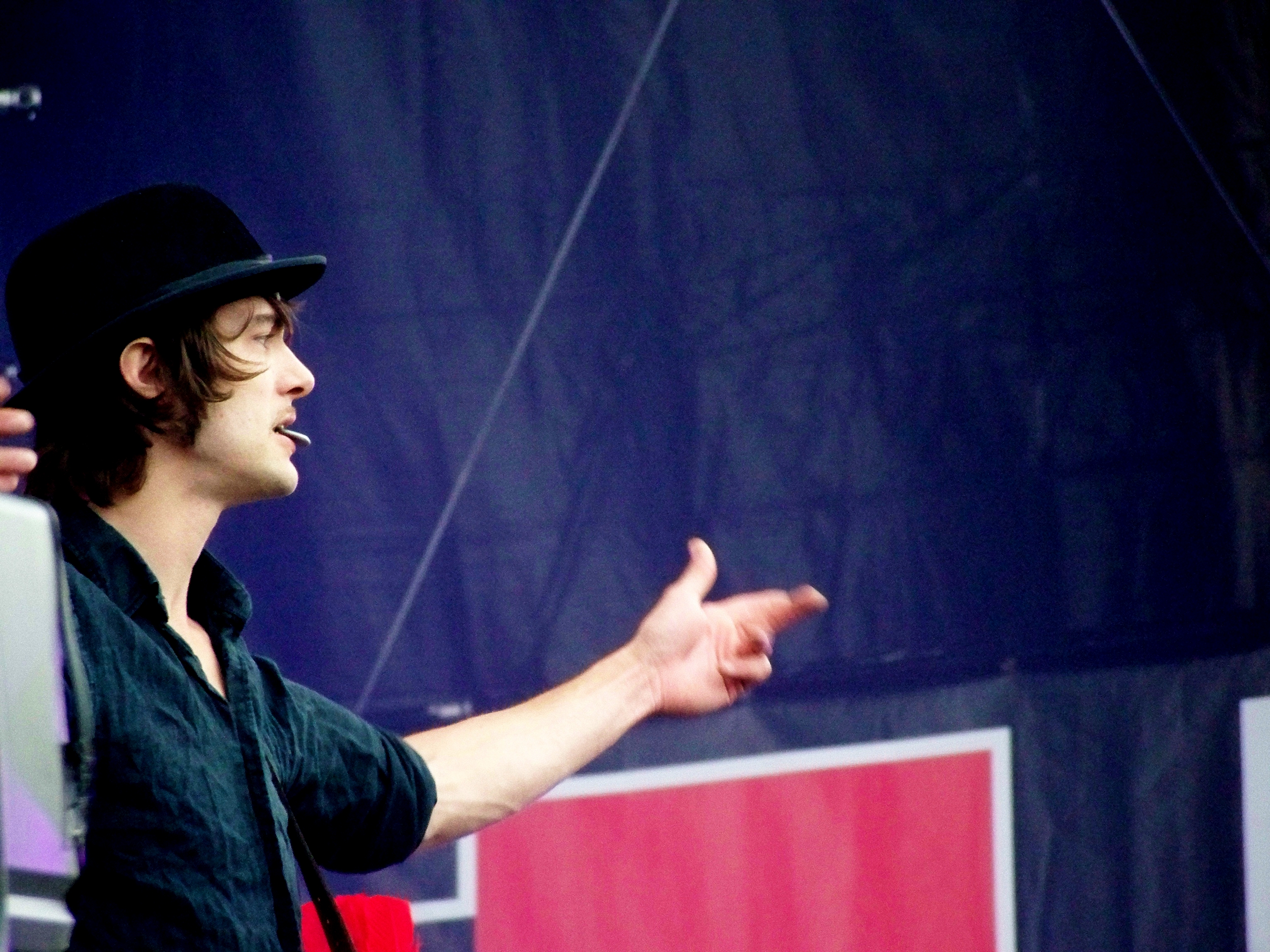 Oh à La Rochelle, ils ont aussi un Bus Palladium…Ca s’appelle le Casino. Tu vois la population du Bus ? Ouai une boîte de nuit, pour adolescentes de moins de 15 ans…et ben c’est pareil. Les filles sont habillées toutes pareils, et ont cet air blasé très caractéristique des parisiennes… Et elles écoutent Oh la la… (et oh la la, qu’est ce que c’est toujours la même chose). Et, les mecs, ben tu les comptes sur les doigts de la main…d’une main… Ils ont quatorze ans, et veulent tous en train “backstage”. Va savoir pourquoi ! Sinon, il y avait aussi The Shoes, et tu sais pourquoi ils s’appellent The Shoes ? Parce que les chaussures ça se met aux pieds, et c’est avec les pieds que tu danses”, dixit Lorent des Twin Twin. Et pour le coup, oui quand The Shoes entrent en scène tu te mets inévitablement à taper des pieds, tu shaker ton booty, mais la branchitude et la jeunesse dorée de La Rochelle, ça va cinq minutes, on s’échappe donc pour de la musique bien populaire. Un monstre sacré de la scène française, le meilleur pote de Papy Bertignac : Jean-Louis Aubert. Et, quand on le voit sur scène, on comprend pourquoi c’est un des meilleurs zikos de chez nous. Une présence et un charisme de folie, une banane d’enfer, pas d’économie d’énergie, les musiciens sont au même niveau que lui, et le public est absolument fantastique. Entendre 10 000 personnes chanter les titres du répertoire de Téléphone ou de Bertignac c’est quand même super impressionnant. Chapeau l’artiste.