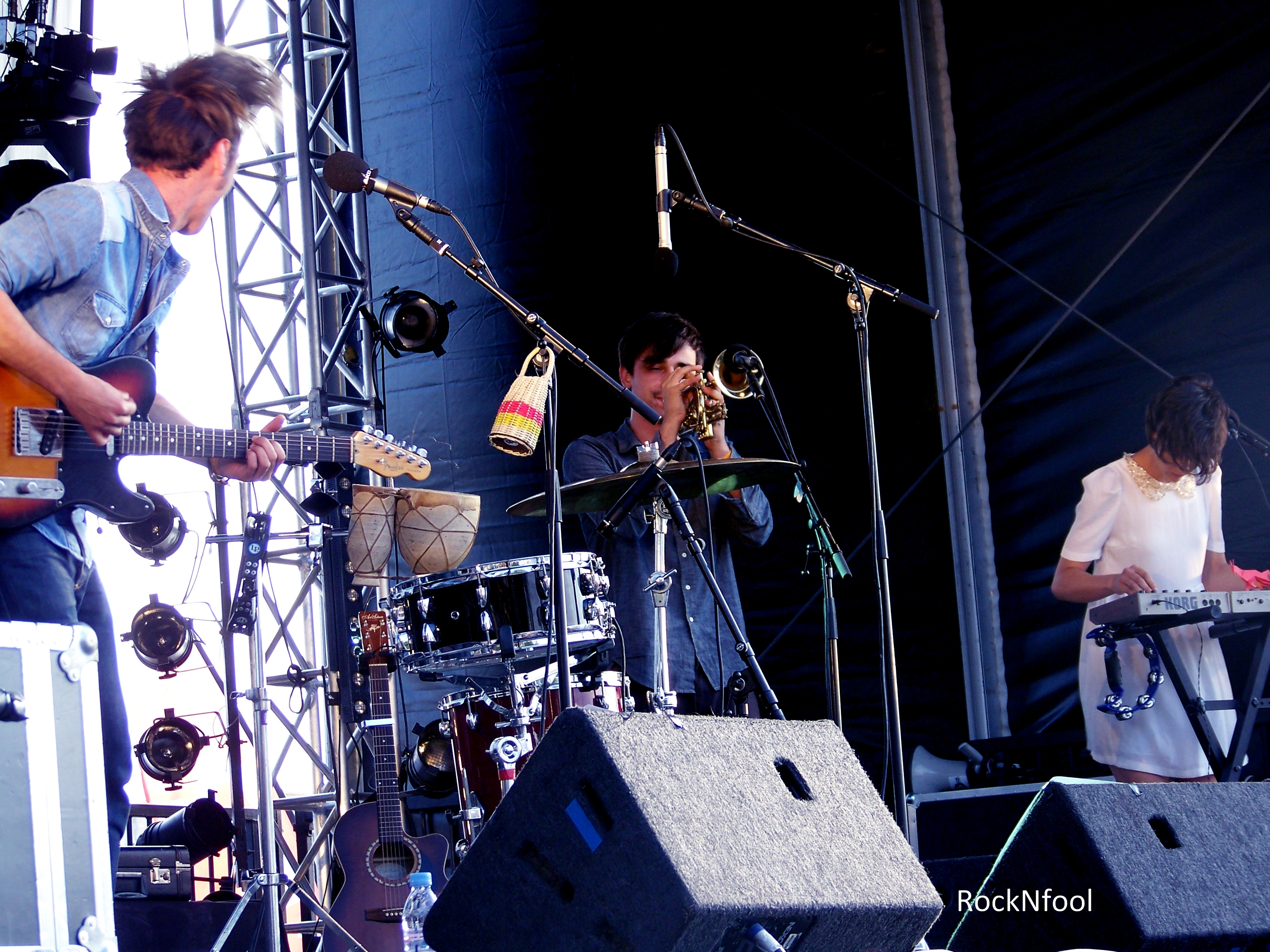 Ca fait plaisir de voir que des jeunes artistes qu’on aime se produisent à la Rochelle, dans ce beau festival des Francos. En plus, nous on est ravi puisque beaucoup de nos chouchous sont là, des signés, des non-signés ou sur le point de l’être. Et, parmi nos chouchous il y a bien entendu We Were Evergreen. Eux, jouait sur la scène de l’Horloge grâce à SFR Jeunes Talents (véritables mines de découertes).