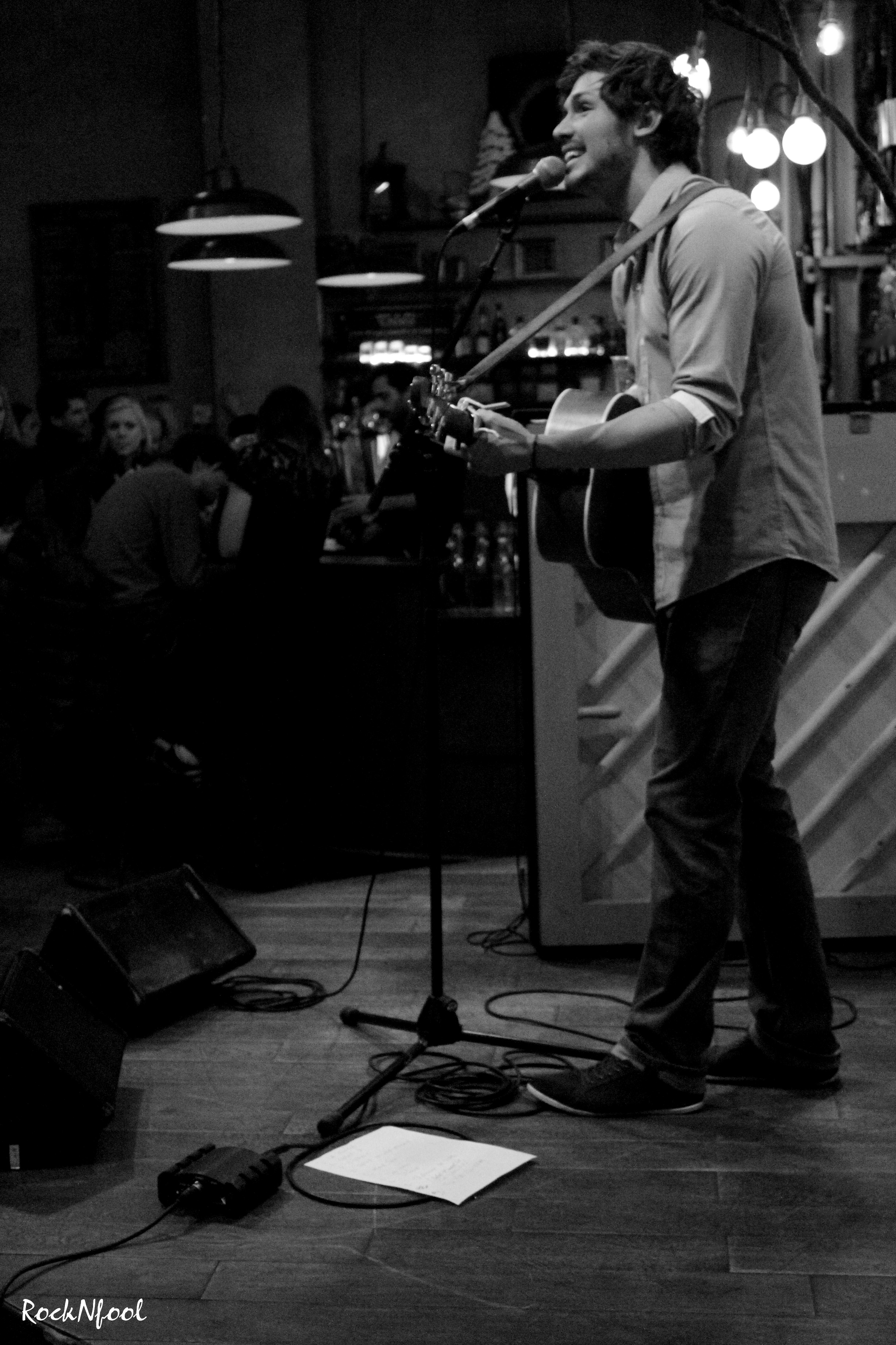 Gaël était le premier à monter sur la scène de la Halle aux Oliviers de la Bellevilloise. Seul avec sa guitare, le garçon présente les morceaux d’un futur album actuellement en préparation : “Tu me suivras”, “Sibérie”, “Reste encore l’Avenir” (mon coup de cœur absolu), autant de pépites tantôt enjoués tantôt mélancoliques. Un univers à la fois intimiste et chaleureux que je vous invite à découvrir sans plus tarder.