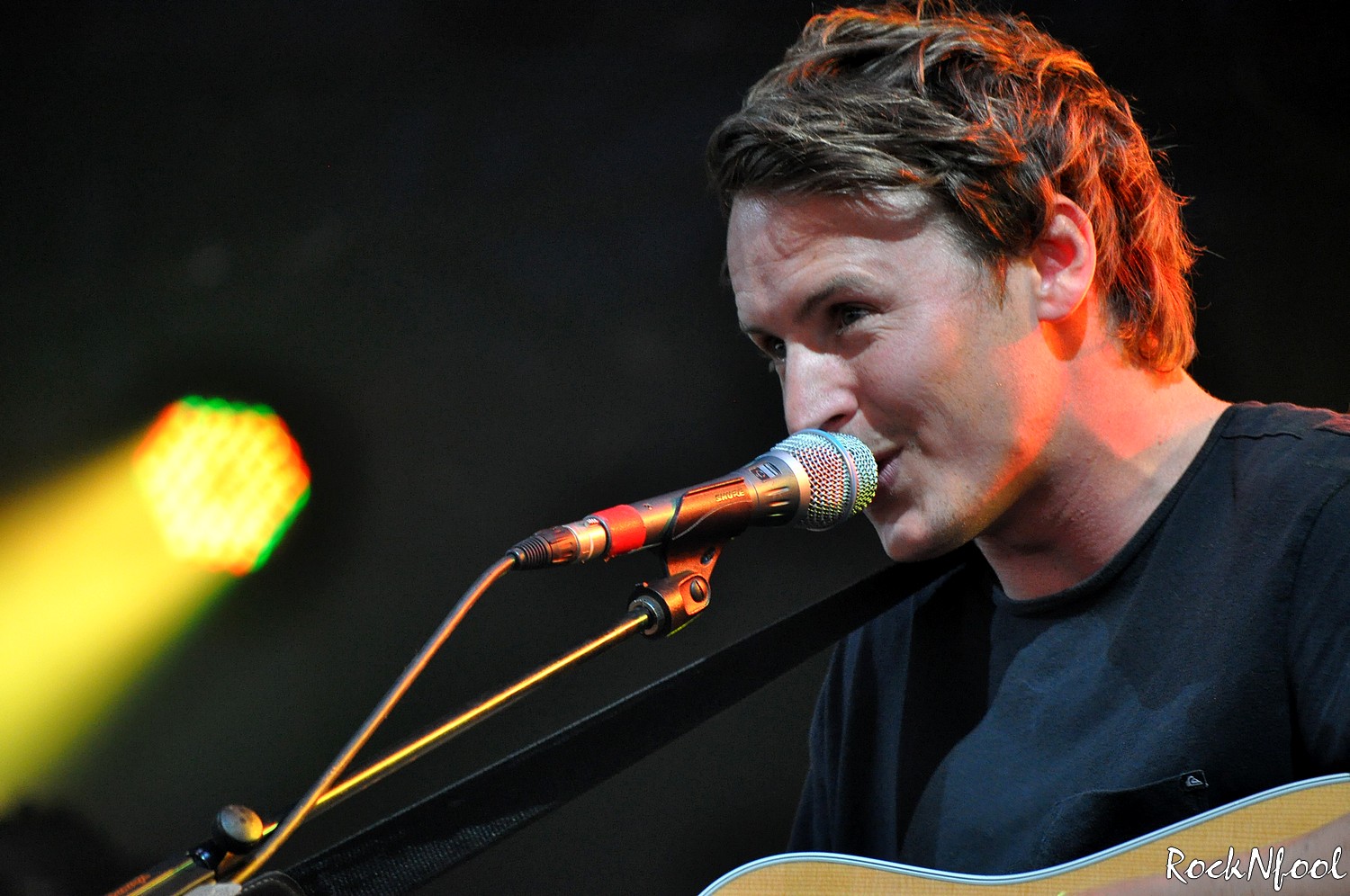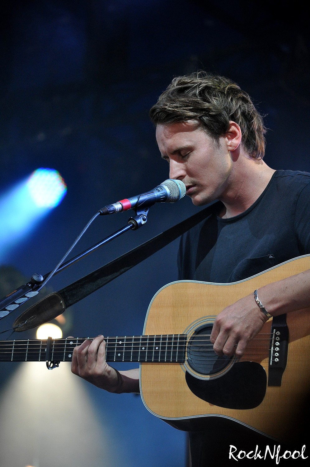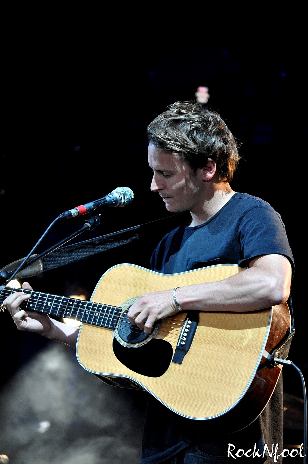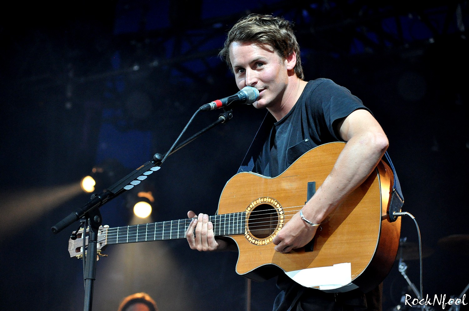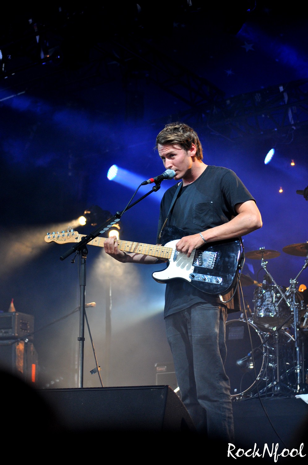 Set raccourci oblige pour cause de Festival, Ben Howard ne commencera pas par sa démonstration de « picking and taping » sur “Depth over Distance”, c’est “Everything” qui ouvre le bal. Enchaine avec “Old Pine” et “The Fear”. Changement de guitare et problème technique. La guitare de Ben n’émet aucun son. Les ingénieurs s’affairent pour régler le problème. Cela leur prendra toute la chanson. Heureusement, la violoncelliste assure, tout comme le guitariste (Richard Thomas, le beau gosse de Brother and Bones)… Alors qu’à Bourges, les problèmes techniques avaient quelques peu terni l’humeur déjà mauvaise de Ben, cette fois, le garçon en rigole. Le souci enfin réglé, le concert peut continuer. Le jeune homme visiblement heureux d’être sur scène bavardera souvent entre les morceaux, il trinquera avec le public, rigolera beaucoup. Le public plus que réceptif – parce que déjà conquis – chantera sur chaque titre. Jolie chorale sur “Only Love“, “Keep Ur Head Up“…et surtout “Diamonds“, décidément le titre le plus efficace du set. C’est celui-ci qui clôtura le concert de Ben Howard.