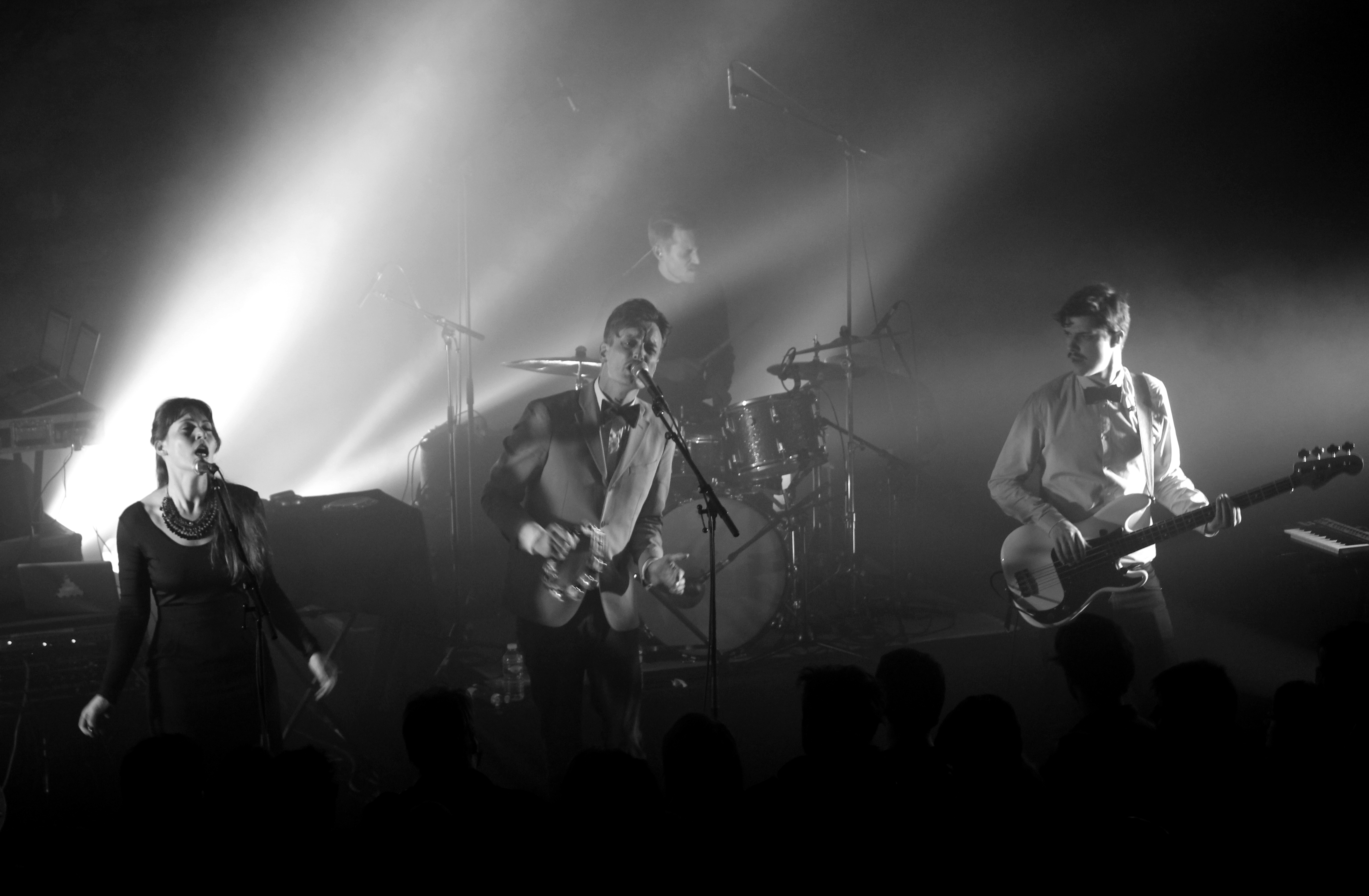 Parfois dans les reports de concet, l’expression “communion du groupe avec son public” peut apparaître. Une expression bateau, passe-partout qu’on peut placer quand on ne sait pas trop quoi raconter sur le concert. Sauf que là, j’ai beau cherché, j’ai du mal à trouver une autre tournure de phrase pour expliquer à quel point il s’est passé un truc entre le public du Café de la Danse et Efterklang. Une espèce d’étrange et intense connexion mystique. La salle est pleine à craquer, les spectateurs littéralement collés à la scène, les escaliers sont aussi pris d’assaut, pas un m² de libre. Pas une personne sans un sourire niais sur le visage.