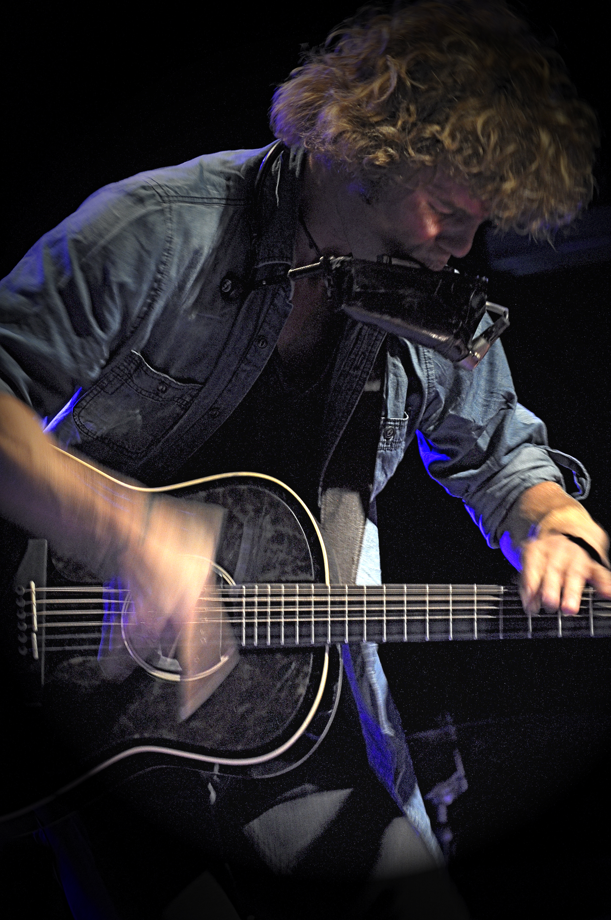 Kim va poursuivre avec le superbe Bathed in Black, mais il explique avant que s’il est là ce soir, c’est parce que lors du festival folk de Winnipeg il s’est retrouvé sans navette entre le Hilton où tous les artistes résidaient et le lieu du concert. Forcément, il devait y aller, et donc demander à une “star” folk de bien vouloir le laisser une mini-place. C’est de cette façon qu’il a rencontré Billy Bragg qu’il suit depuis plusieurs semaines sur les routes nord-américaines.