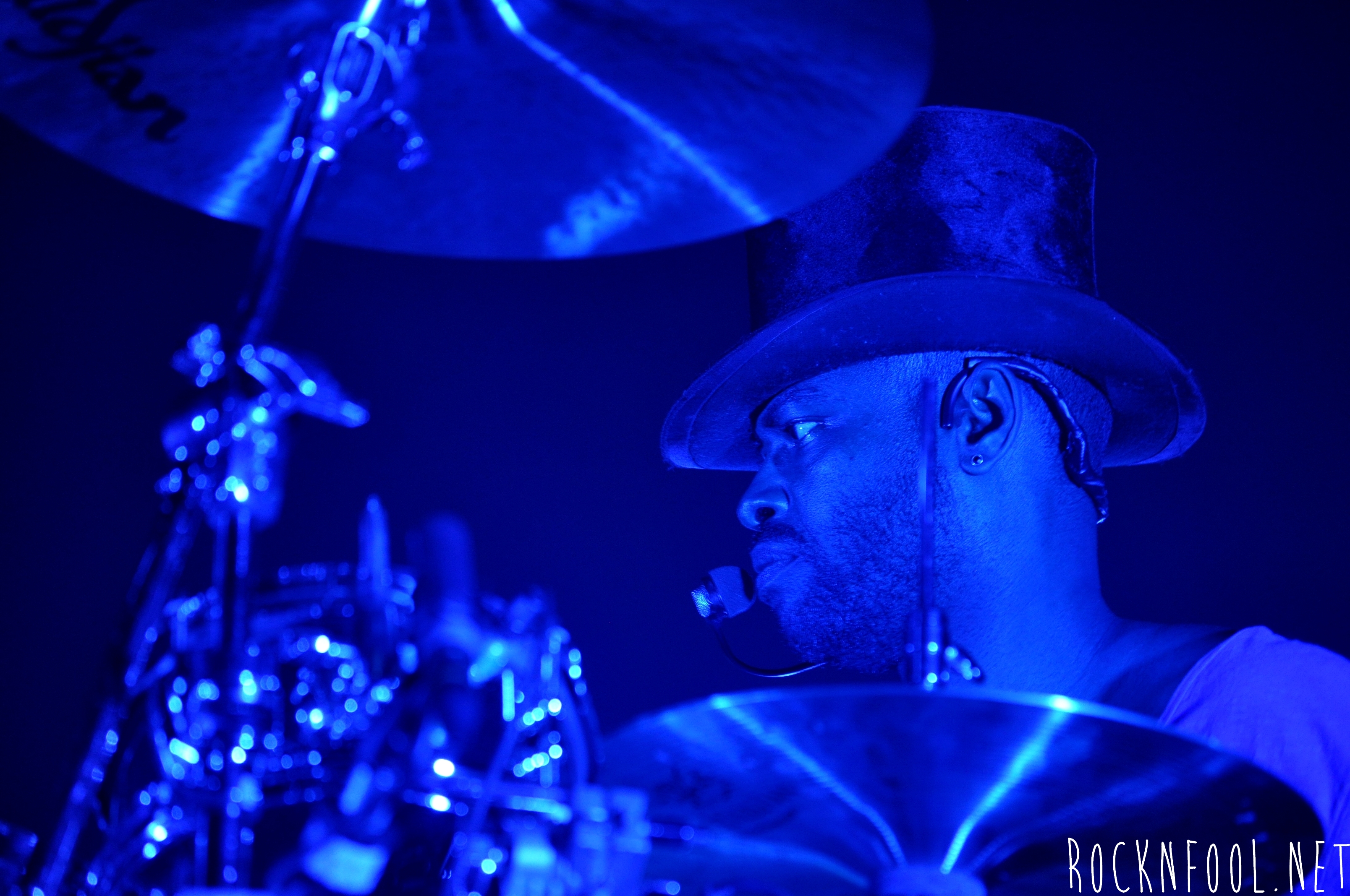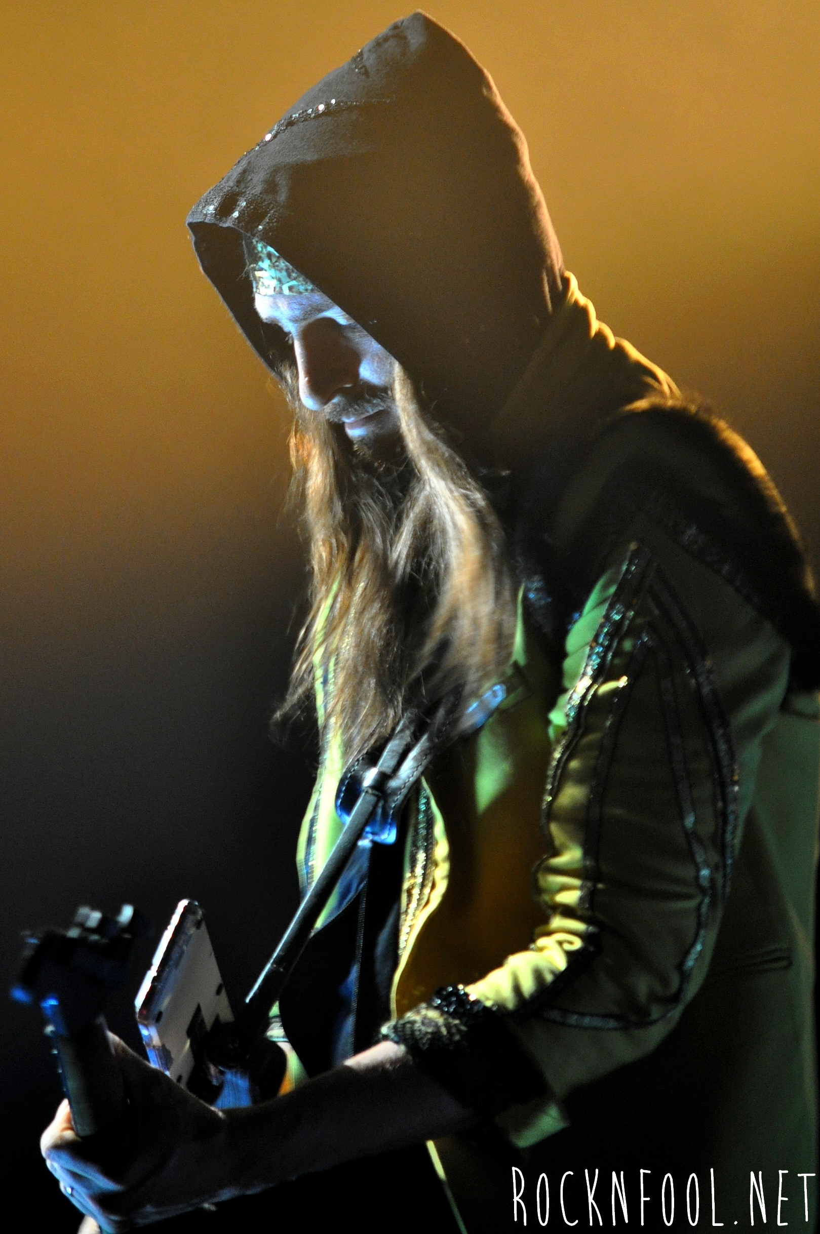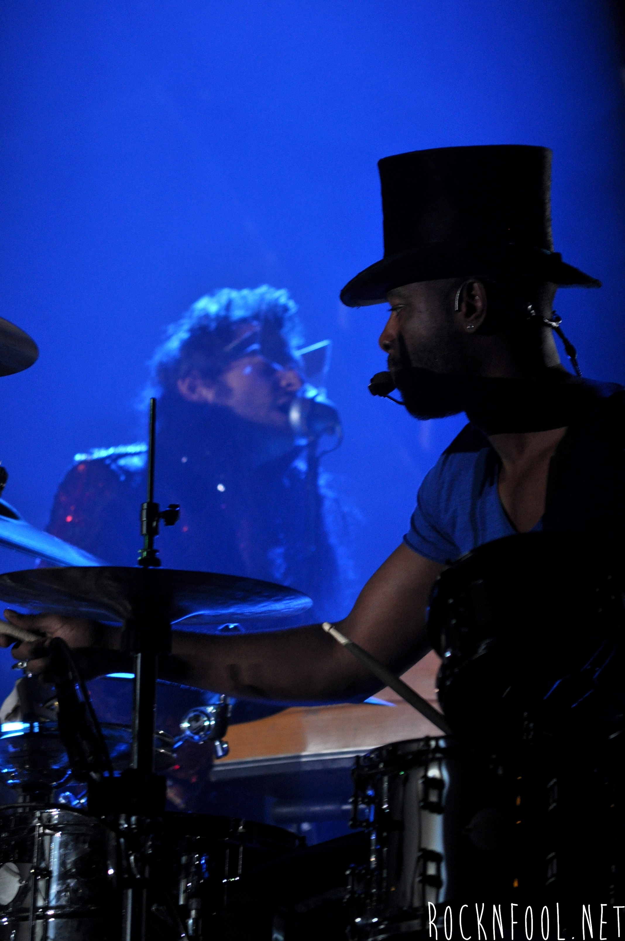 Pas vraiment de modification au niveau de la setlist pour le trio de musiciens. Un mélange assez bien dosé entre les anciens albums de -M-, ses plus gros succès, et son dernier opus “Îl“. Alors que la salle s’assombrit et que le public bouillonne, un voile renvoie des images abstraites dans des nuances de bleu. Elle débute, avec -M- sur son clavier, tandis que le voile s’élève, laissant apparaître Matthieu au clavier, Brad à la basse, et Lawrence à la batterie. Je ne le dirais qu’une fois, mais ce trio qui peine parfois à remplir la scène, est pourtant diablement solide.