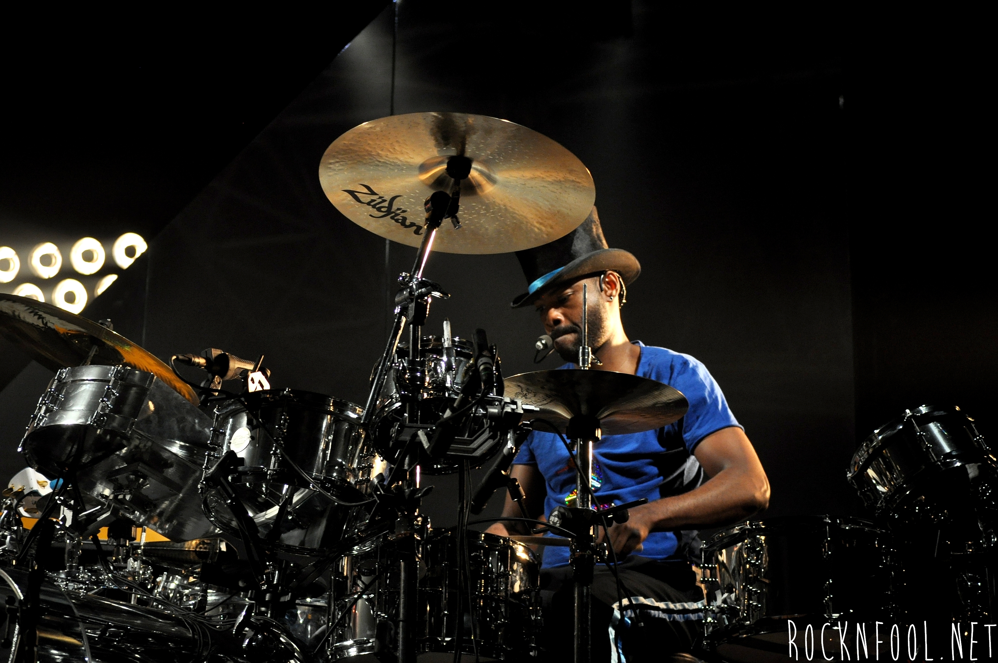 Il faut dire qu’il règne dans le Zénith une chaleur assez lourde, ce qui n’empêche pas les spectateurs présents dans la fosse de se coller au petit stand mobile où se dresse -M-, tel un prêcheur révélant la parole divine. Et puis il est temps de regagner la scène principale. D’un saut -M- bondit dans le public, et les lumières se rallument sur scène, laissant émerger Bradley et Lawrence pour un petit passage instrumental.