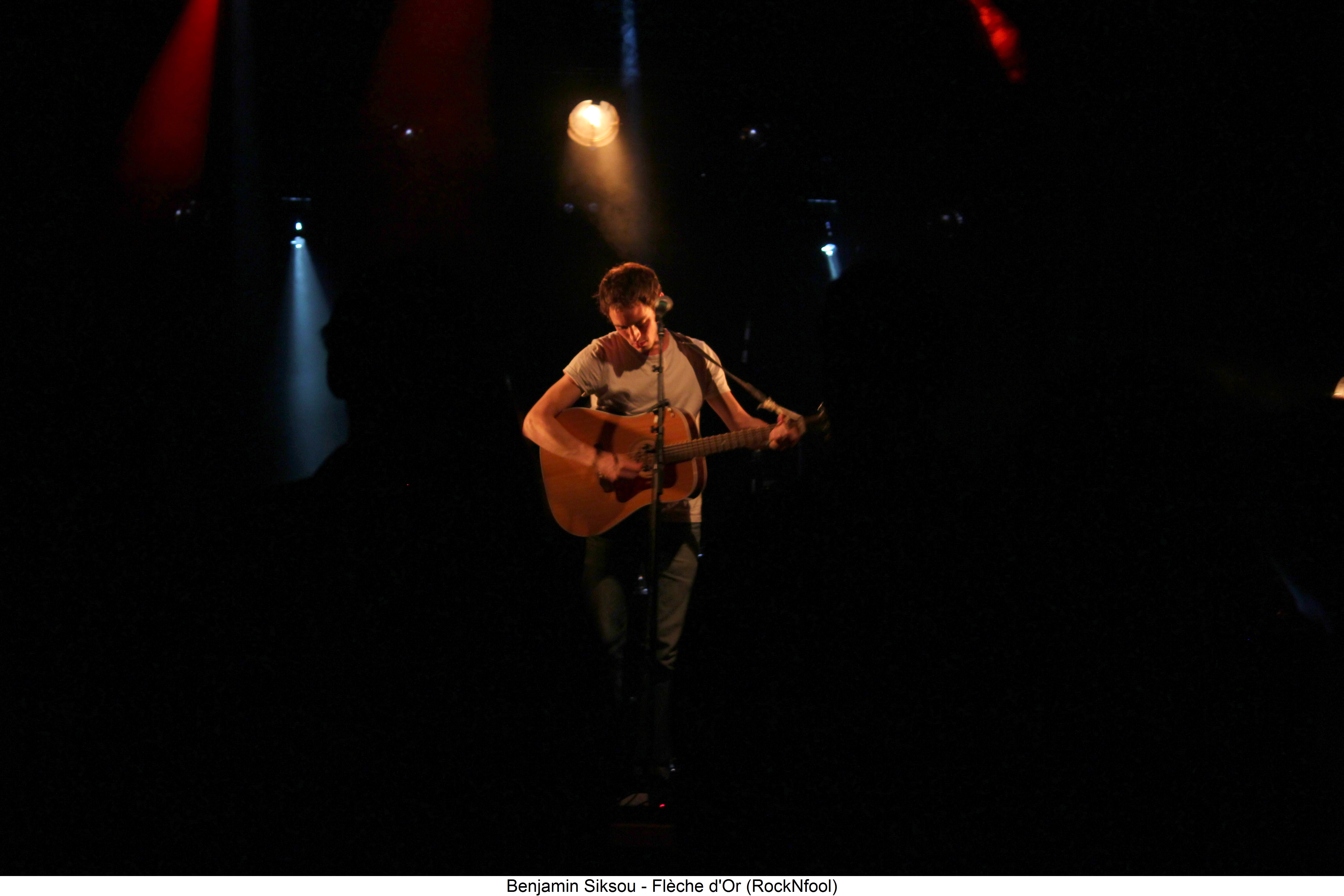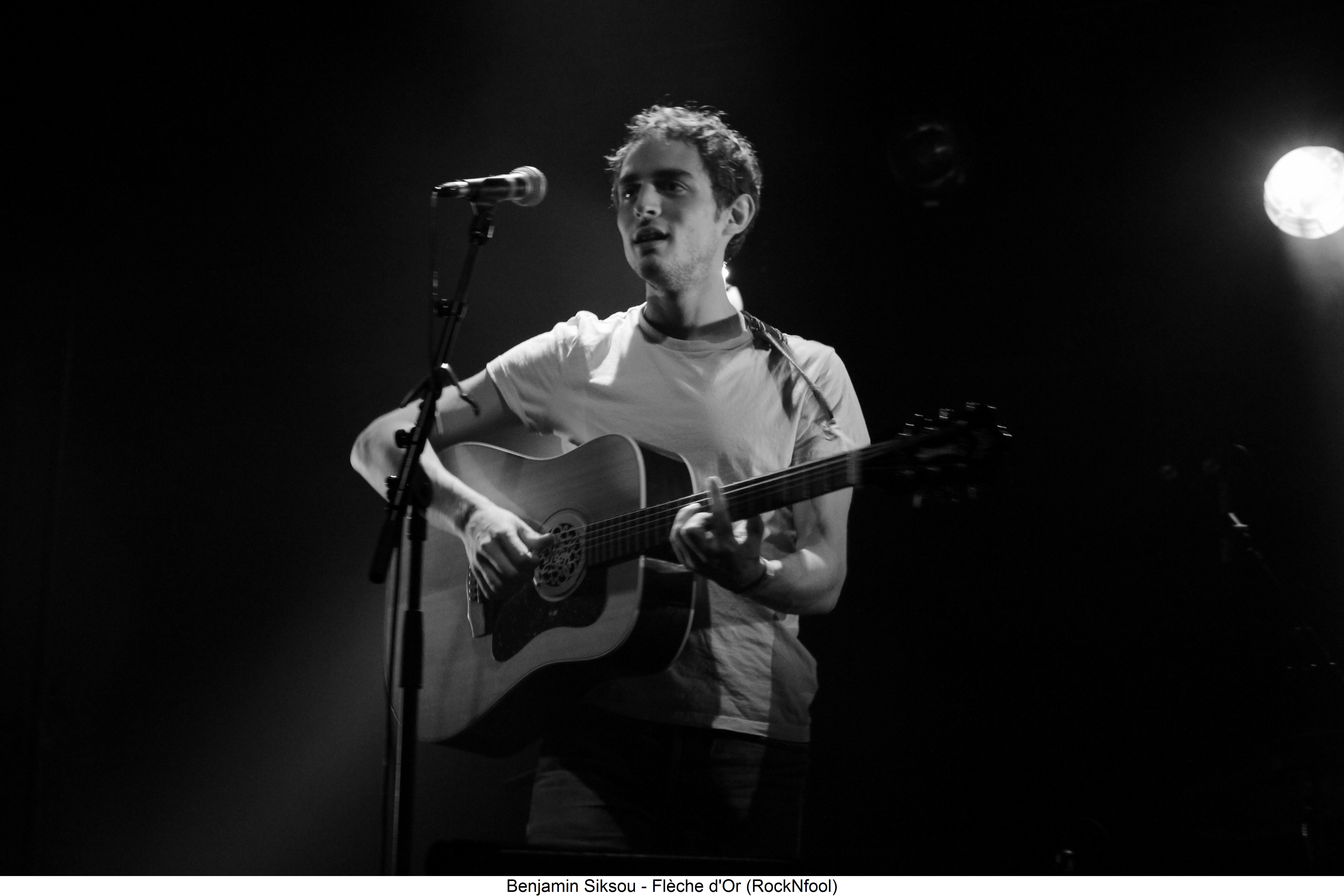 Son nom vous est familier, Benjamin Siksou a squatté nos petits et grands écrans a plusieurs reprises, jouant les chanteurs soul à la Nouvelle Star et l’acteur au cinéma. Depuis “Just Two Of Us“, j’ai pas lâché l’affaire. J’avais été scotché par le grain de voix de ce garçon, tellement gorgé de soul et si aisément reconnaissable. Il n’a pas gagné la Nouvelle Star, mais ce n’est pas pour autant une raison pour abandonner. Après l’avoir entre-aperçu à Sofar la semaine dernière, je le vois enfin pendant un set entier, à la Flèche d’Or. Oui, j’ai lâché Solidays pour le voir lui. Benjamin Siksou. Accompagné avec sa guitare. Et rien d’autre.