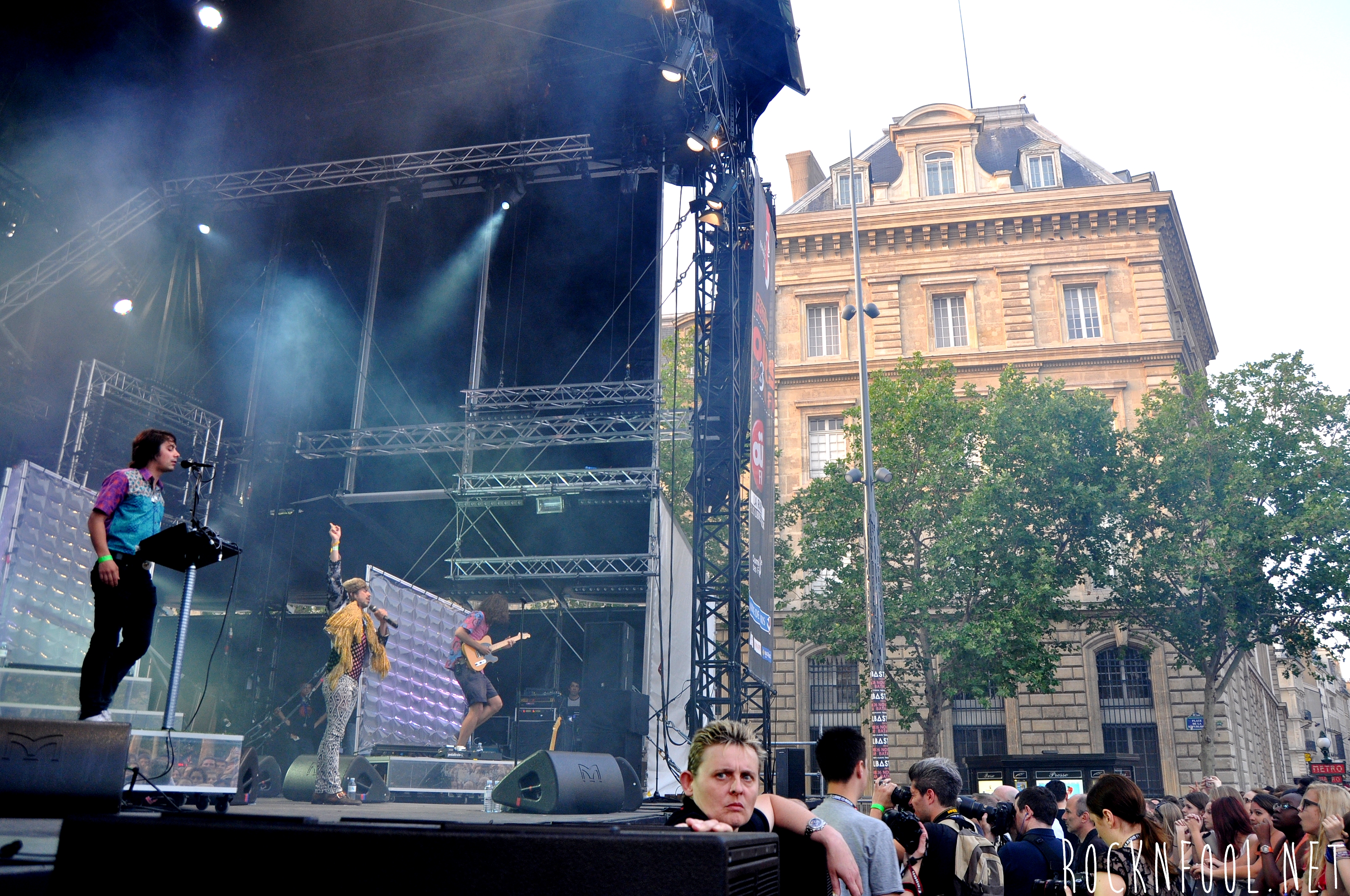 Y’a pas à en redire, ces mecs-là te vendent un show. Genre Show. Des costumes à la scéno, des histoires rocambolesques aux danses du bassin étrange. Naïve New Beaters c’est un peu de la dynamite en barre et le fait est qu’ils ont dynamité la place de la République à coups de tubes dévastateurs. C’est bombastique, c’est festif, c’est parfois un peu too much quand même. Perso, j’écoute ça à toute petite (vraiment toute petite) dose. Je pense que si tu rentres pas tout de suite dans le délire NNB, t’as un peu mal aux oreilles et à la tête. Je ne suis pas vraiment entrée dans le délire, du coup ça m’a vite saoulé. Cependant, mention spéciale à Mickey Mouse qui a fait une apparition sur un titre. Un Mickey un peu défait parce que Minnie l’a largué, ce qui ne l’a pas empêché de danser du break dance… Shit happens everyday but it’s alright…