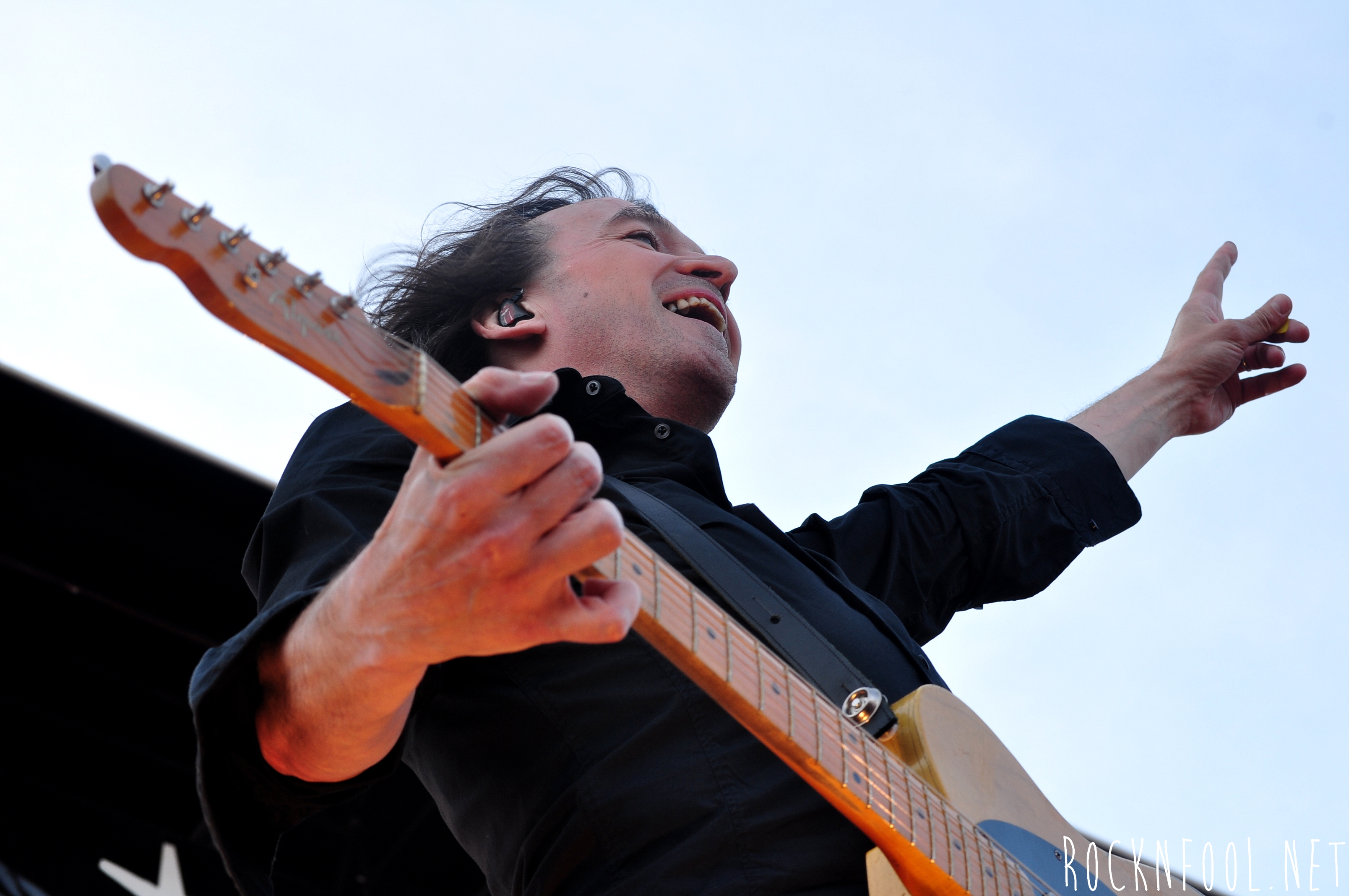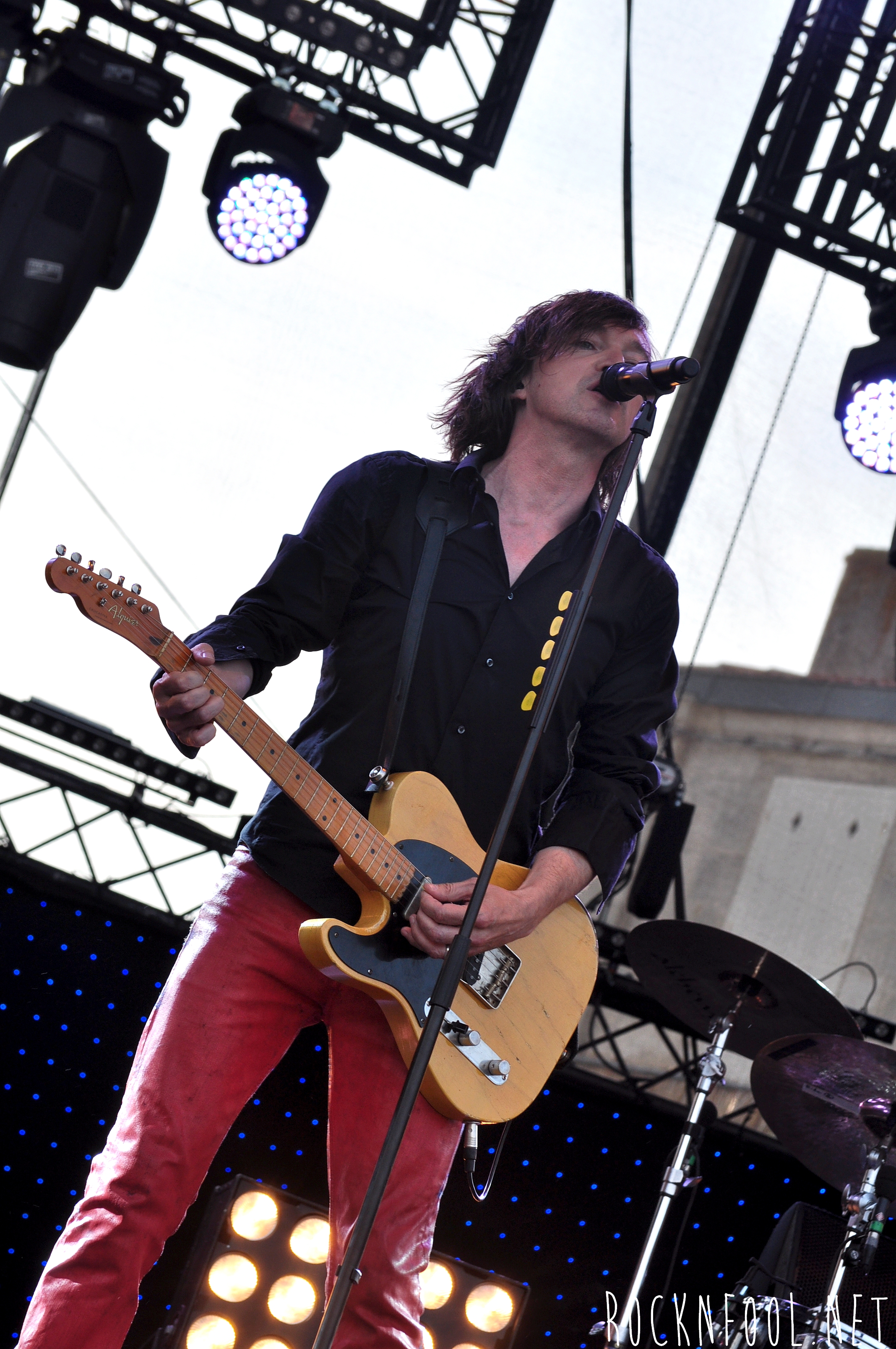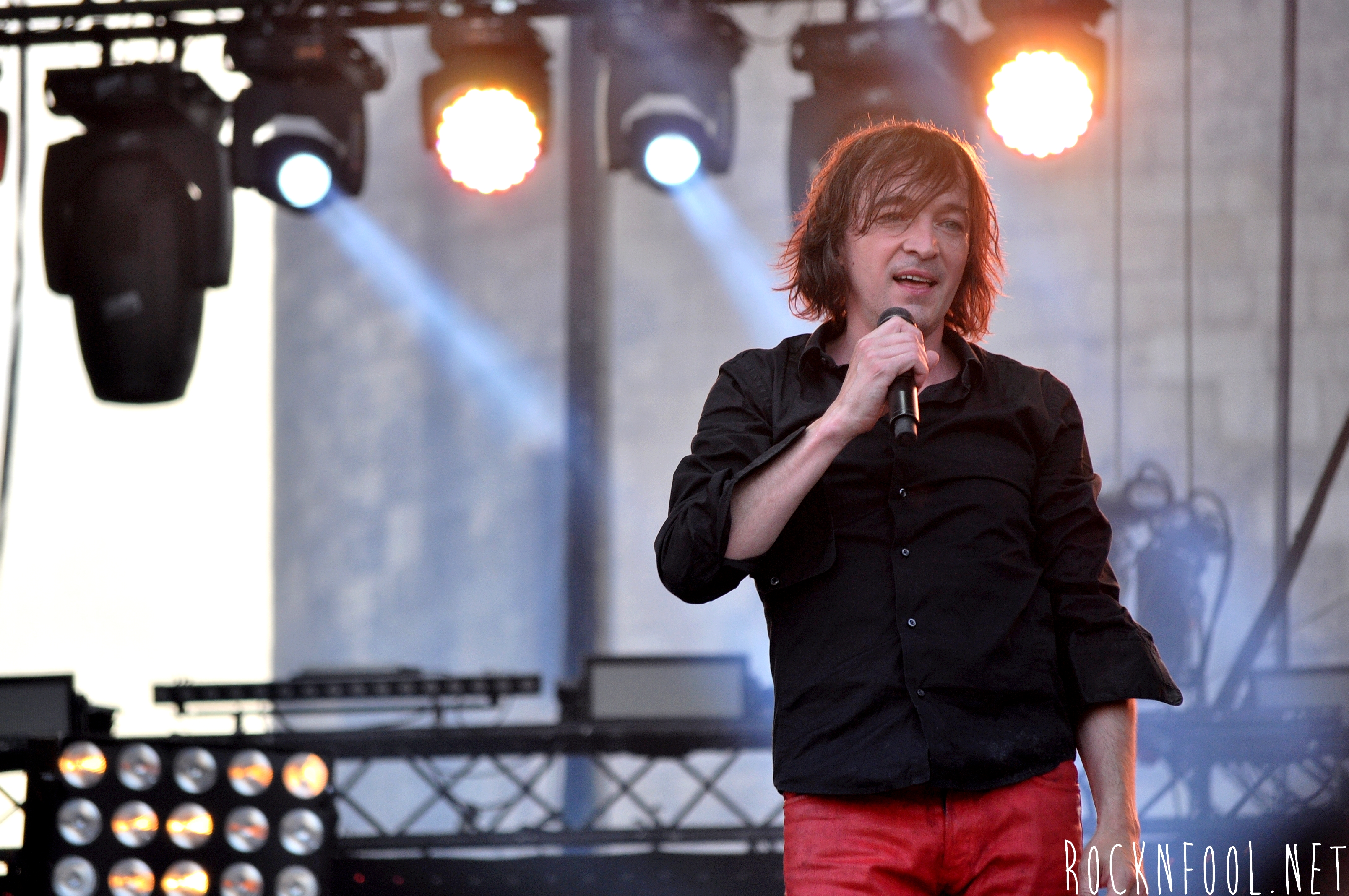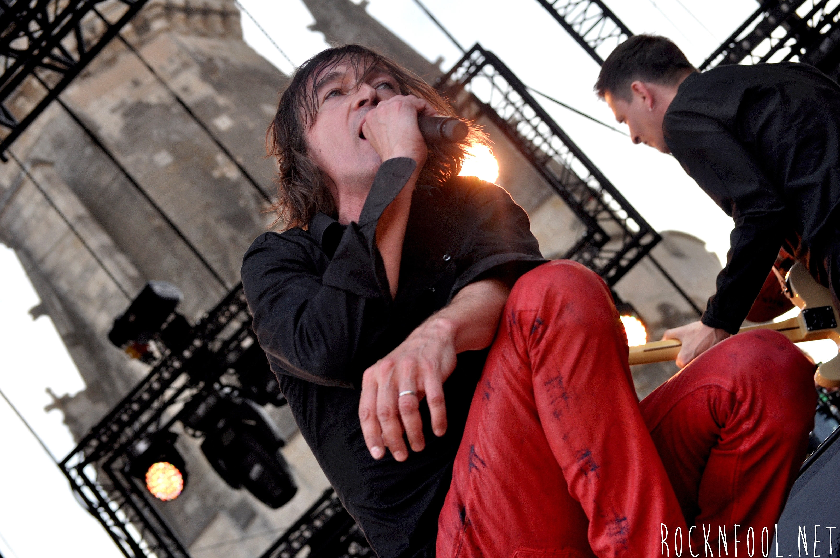 Je ne peux pas vous décrire ce concert tant je n’y croyais pas moi même. Cali semblait se nourrir de l’adrénaline de la scène. Il est venu chercher le public à chaque titre, et c’est pour lui qu’il jouait. C’est pour lui (et la mise en scène), qu’il a fait des galipettes sur la scène, qu’il s’est balancé une bouteille d’eau sur le crâne, qu’il a volé la caméra d’un technicien sur scène, qu’il a croqué des pétales de roses d’un bouquet pour mieux les recracher sur la caméra de fosse, qu’il a attrapé le drapeau breton d’une fan, qu’il a crié “A POIL !”, et enfin, qu’il a fait deux body-surfing, dont un énorme, où il s’est littéralement fait porter par le public du devant de la scène, jusqu’en haut du gradin au fin fond de la place. Complètement fada ? En tout cas c’est impressionnant.