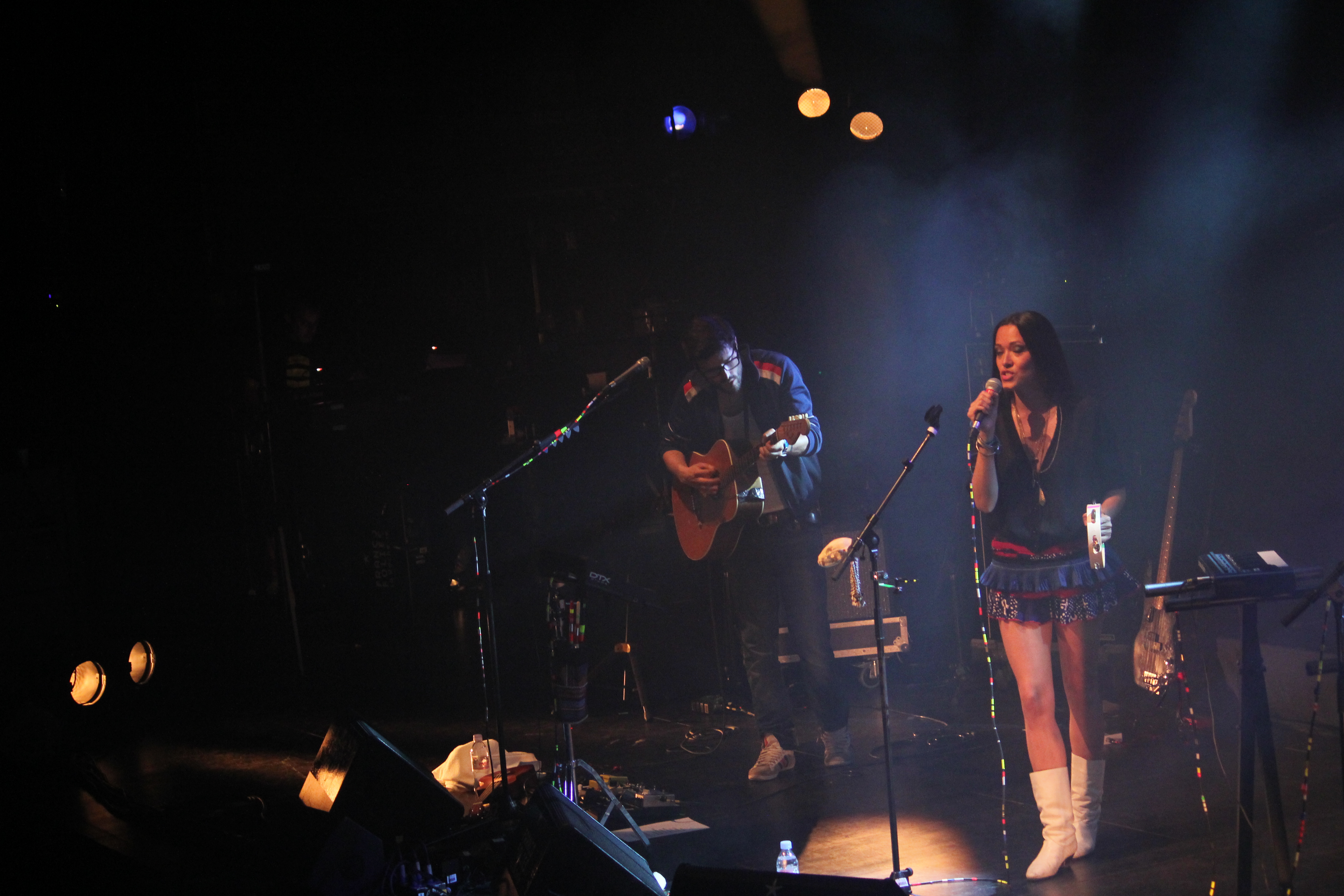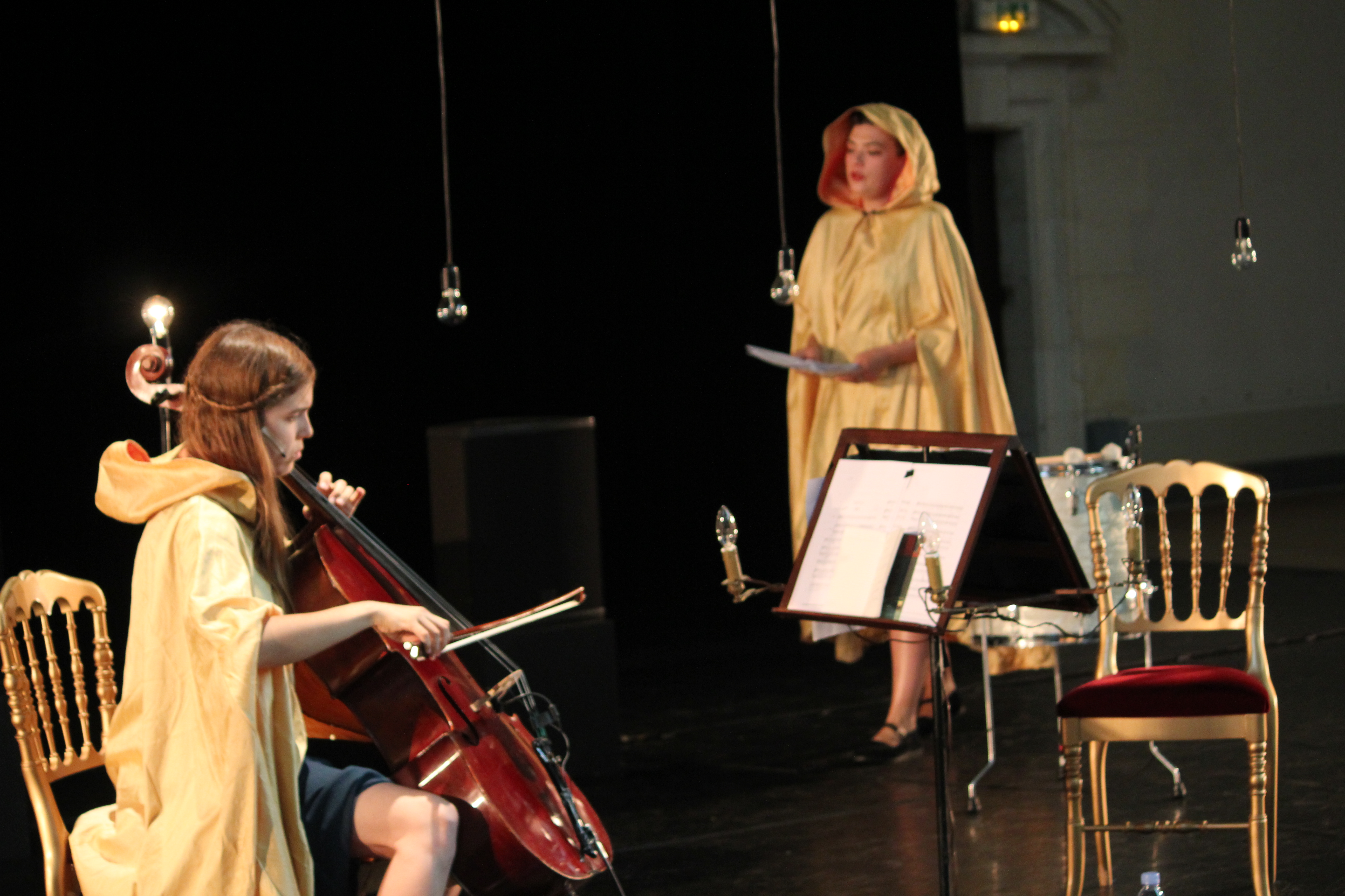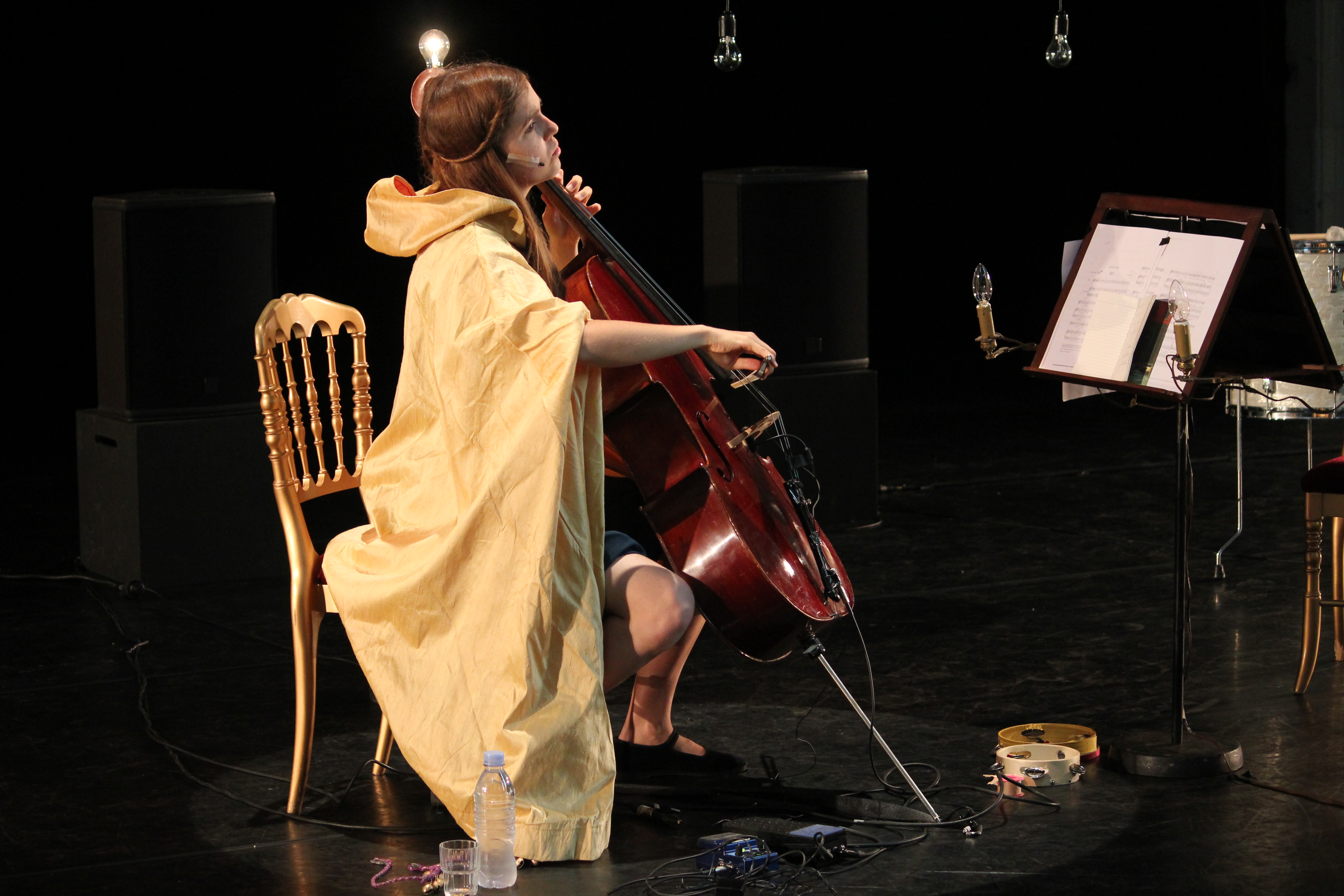 Dans cette chapelle Fromentin, lieu où se déroulait les Folies Matinales, il se passait chaque matin de bien jolies choses. Dommage, rare ont été les journalistes (plus rares ont été les blogueurs) à venir y jeter une oreille. Tant pis pour ceux qui ont loupé AuDen, Rosemary Standley et Dom La Nena. J’écrirai un billet spécial pour le premier parce qu’il mérite que j’en écrive des tartines. Vous connaissez tous ma faculté incroyable à fondre comme neige au soleil pour les folkeux qui chante les amours brisés, morts et foirés ? Ben voilà, AuDen c’est un peu ce qu’il fait. En français, sur des arpèges romantique, il pose des textes poétiques comme il est rare de trouver aujourd’hui. Ce jour-là il était seul avec sa guitare, ses deux micros (tu sais que j’aime les folkeux seuls devant leur micro), ses chansons tristes, ses effets de voix, et cette chanson “L’Etourdi” qui m’a complètement eue… Je crois que Lame De Son a tourné une session avec lui, j’ai déjà réservé un paquet de mouchoirs entier juste pour le visionnage. Après une première partie remarquable, le concert qui suit ne pouvait être qu’exceptionnel. Il l’a été. Forcément, lorsqu’on associe deux femmes aussi douées que Dom La Nena et la délicieuse Rosemary Standley, le résultat ne peut être que magique. Chants traditionnels, country, religieux, folk, elles chantent tout et dans toutes les langues. Scénographie millimétrée et épurée. Mélange des voix parfait. Moment suspendu.