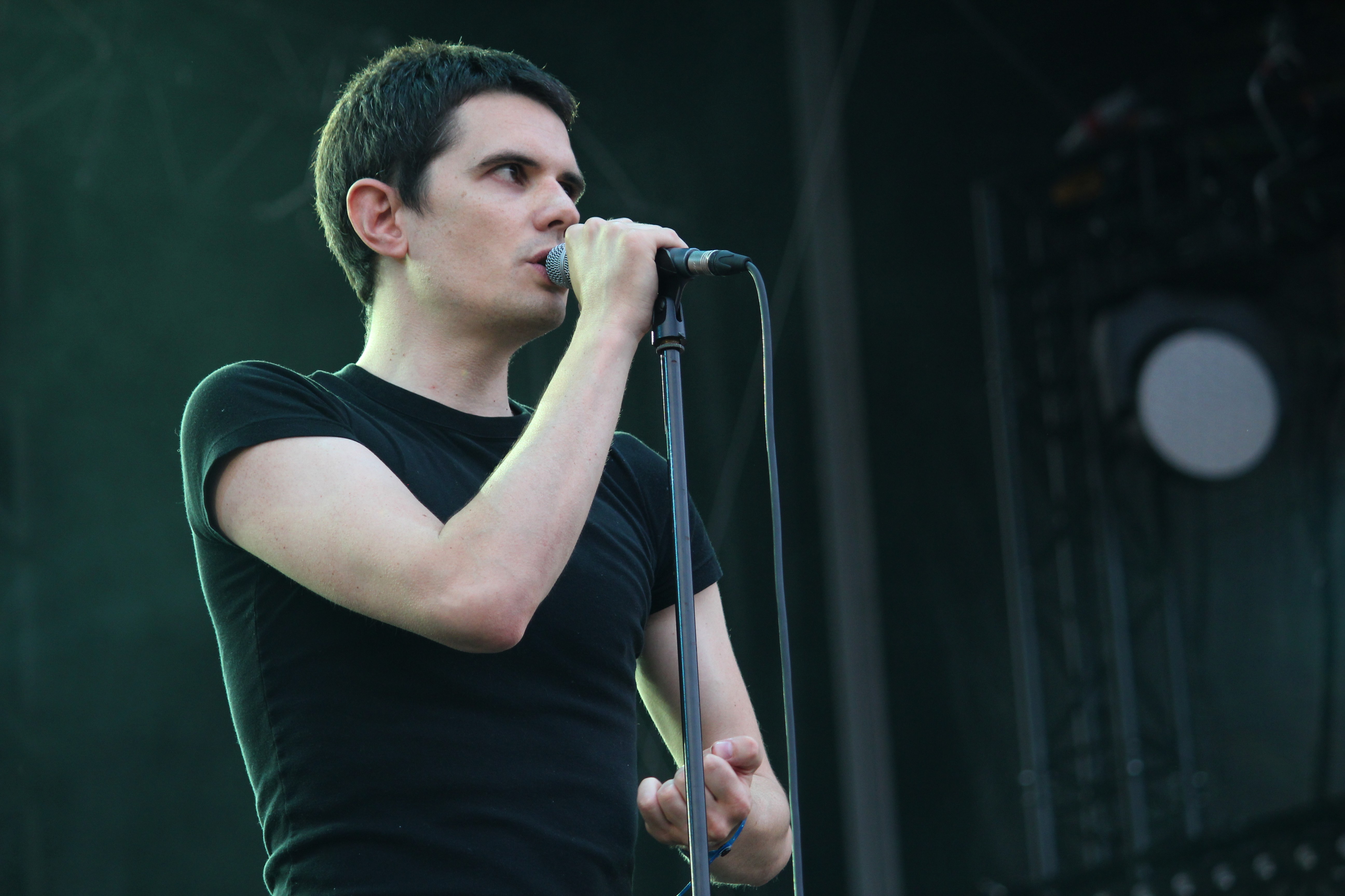 Sur la Grande Scène, le seul concert qui m’intéressait vraiment était, forcément, celui de Lescop. Rodé et bien entraîné par une tournée qui n’en finit plus c’est un Lescop beaucoup plus à l’aise sur scène que l’on retrouve, et pas intimidé du tout par l’immense espace qui s’offre à lui. Il chantera son premier et remarquable album, avec sa collection de tubes devant un public qui finira tous les bras en l’air.