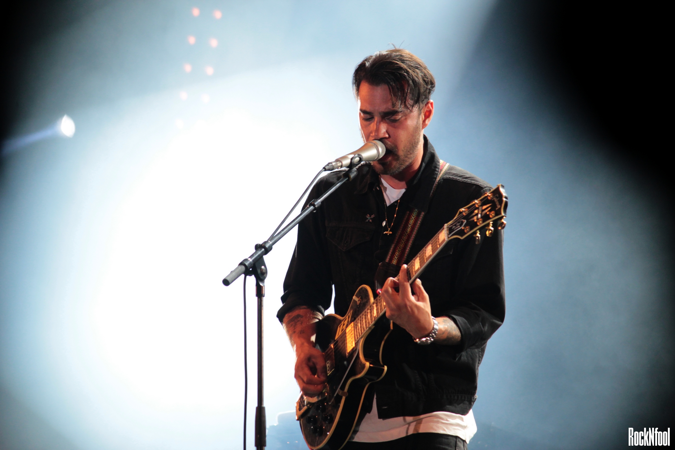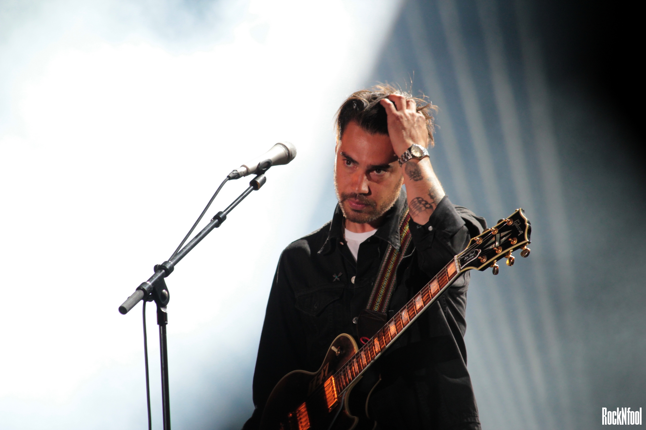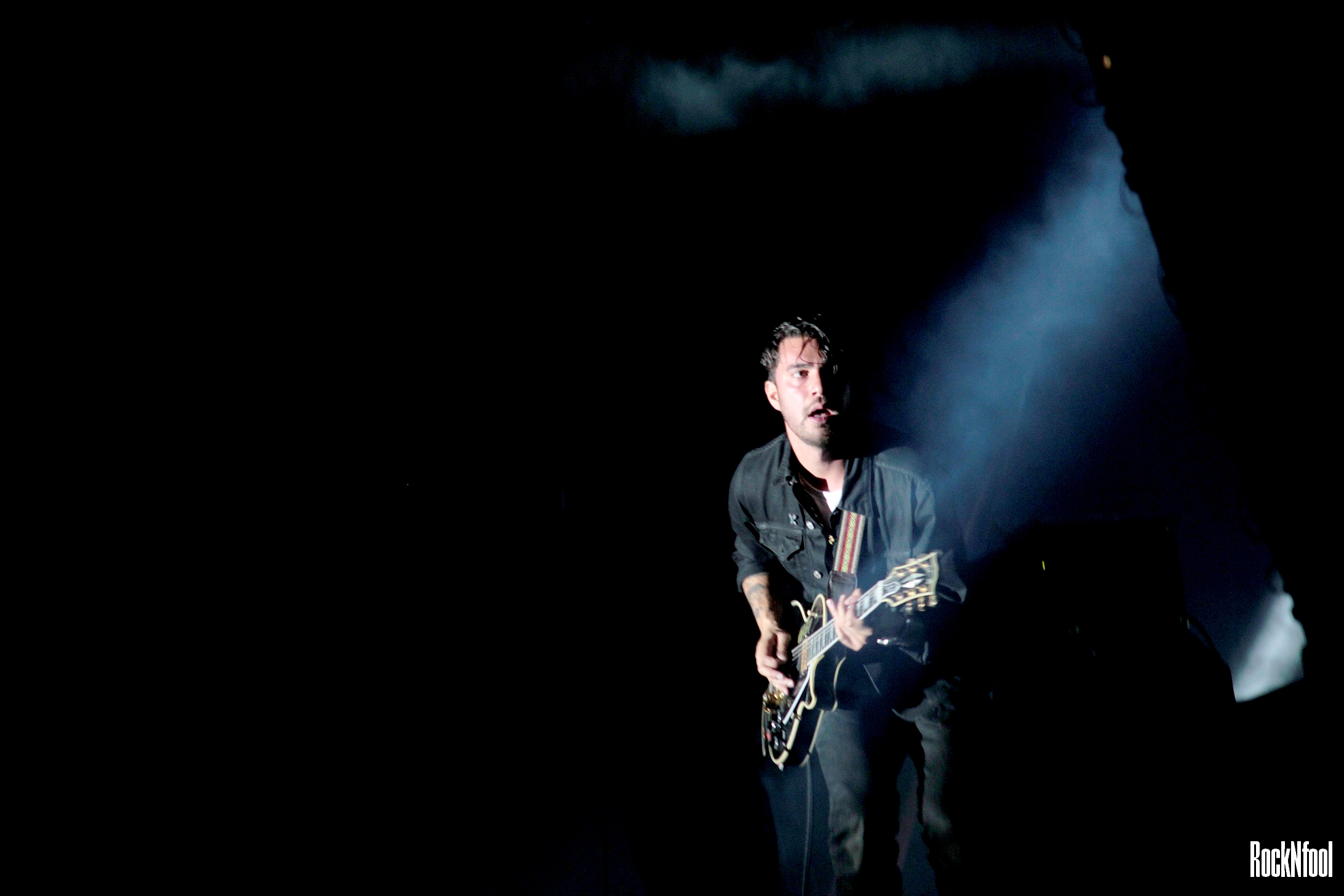 Le rockeur californien qui fait craquer les filles était programmé à minuit, ce samedi. Après Neil Young. Dur, mais il a quand même assuré l’animal, même avec des poches aussi grosses que des pattes de corbeaux sous les yeux… Il faut dire que le garçon et sa bande enchaînent les concerts depuis le mois d’avril et la sortie de Head In The Dirt. Cela ne l’a pas empêché au groupe de donner un concert sale, rock, brut. Forcément, il a présenté les titres de son nouvel album et quelques titres de l’excellent Will The Guns Come Out : Rascal You, Fuck It. You Win, Dead Wrong. Entre les morceaux, ce sont les instruments qui parlent, rugissent. Hanni torture sa guitare, se jette à genoux. Adrian Rodriguez (basse) jette sa chevelure dans tous les sens façon hard-rockeur et Hayden Tobin martyrise sa guitare, bref ça envoie du très lourd… Le public est en transe, le groupe est à fond.