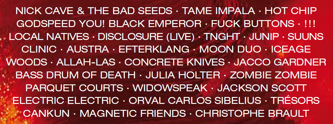 Ensuite c’est l’enchaînement, avec un passage obligé devant Nick Cave et ses mauvaises graines pour faire le plein de rock. On ira danser sur !!! venus présenter leur excellent Tr!!!er, on retournera sur la Scène des Remparts faire un coucou aux strasbourgeois d’Electric Electric, auteurs d’un des meilleurs albums de 2012 (Discipline), et on terminera devant Fuck Buttons venus clôturer la soirée.
