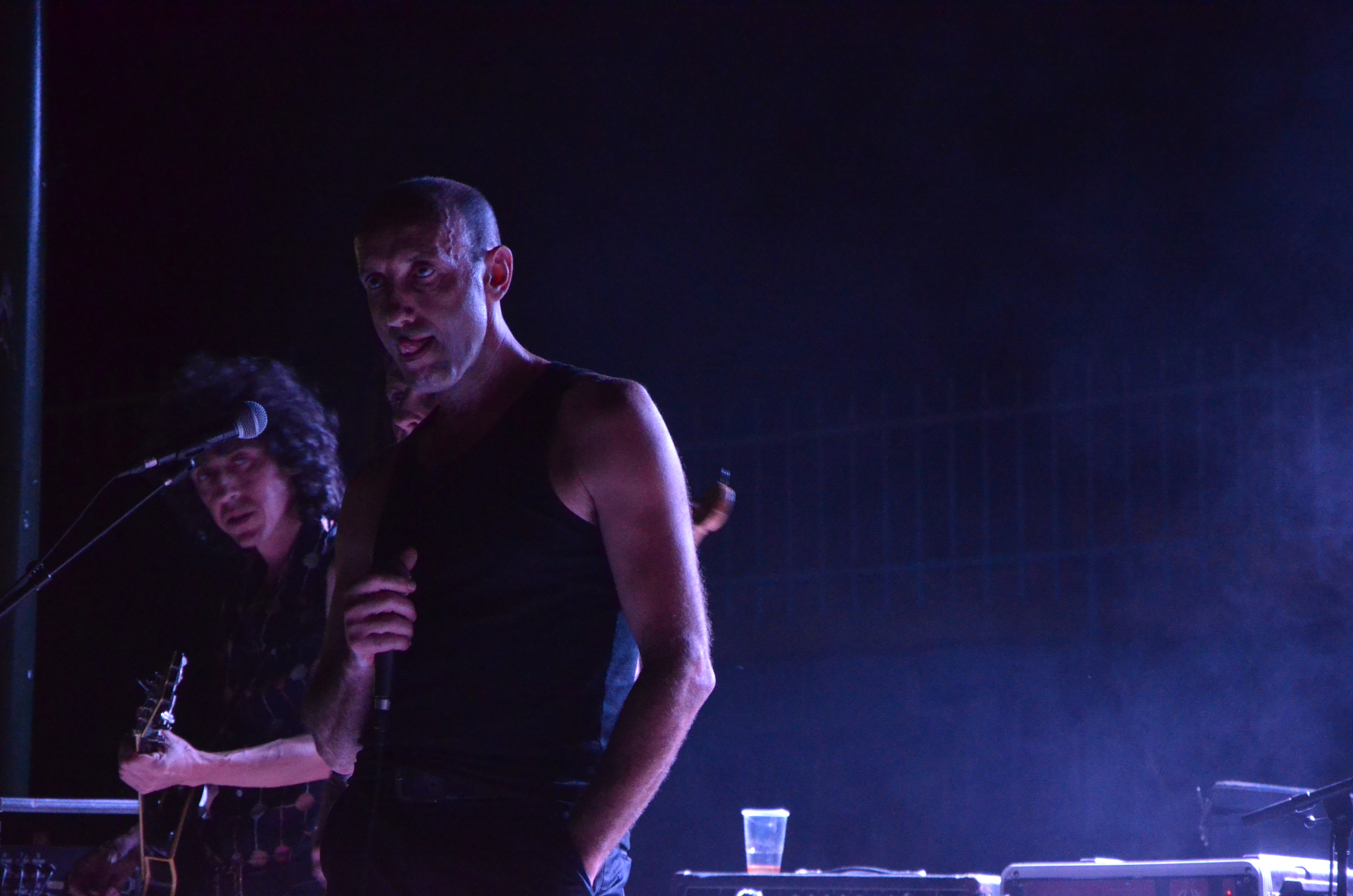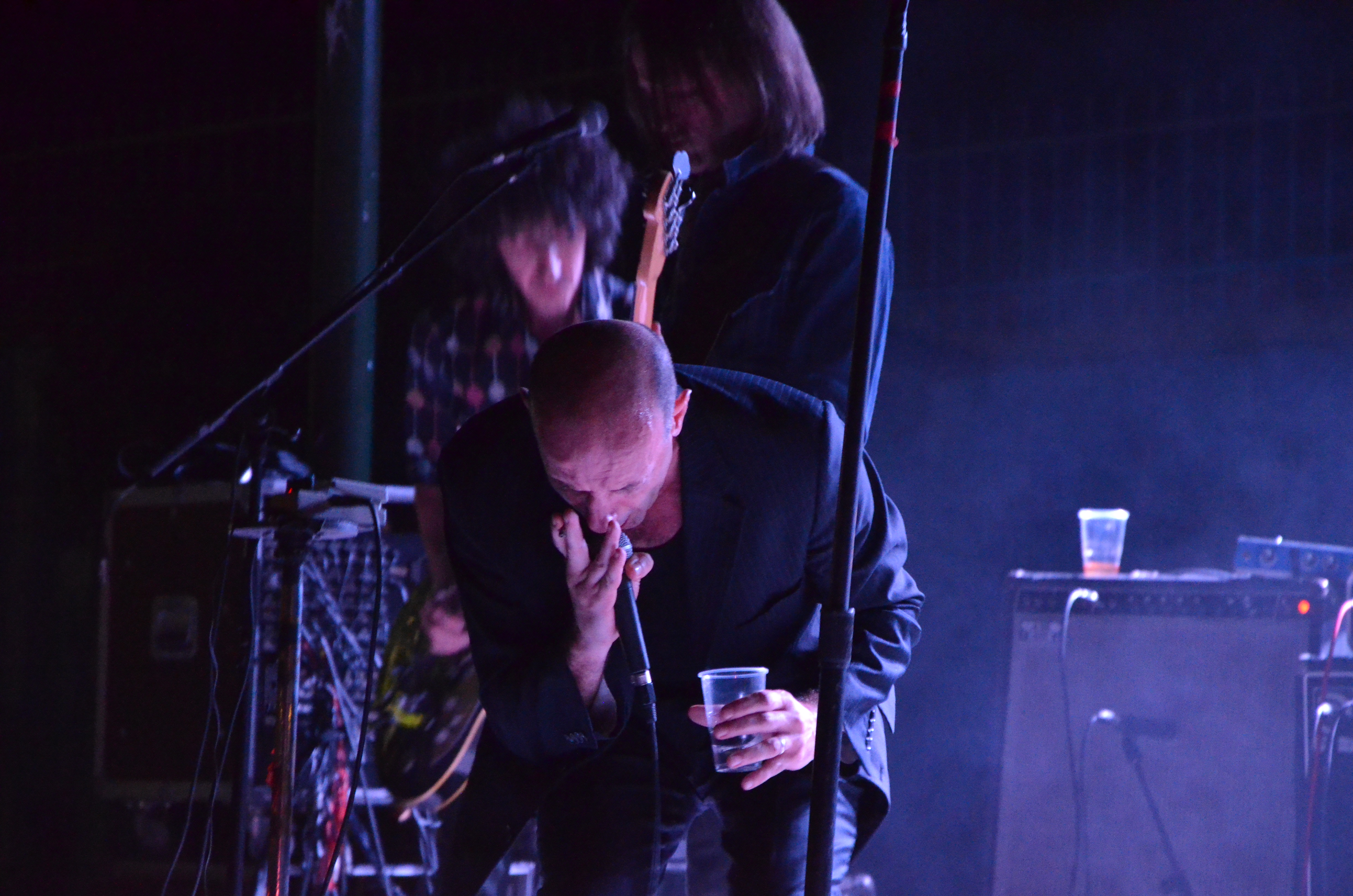 Côté scène, les Italiens de Movie Star Junkie entament la soirée. Le chanteur, saladier sur la tête, se fait renverser de la bière dessus par son comparse le guitariste. C’est le seul fait marquant. Musique sympa, on sent une inspiration western dans les mélodies, un peu psyché aussi, mais mieux sonorisé, ça aurait été plus agréable.