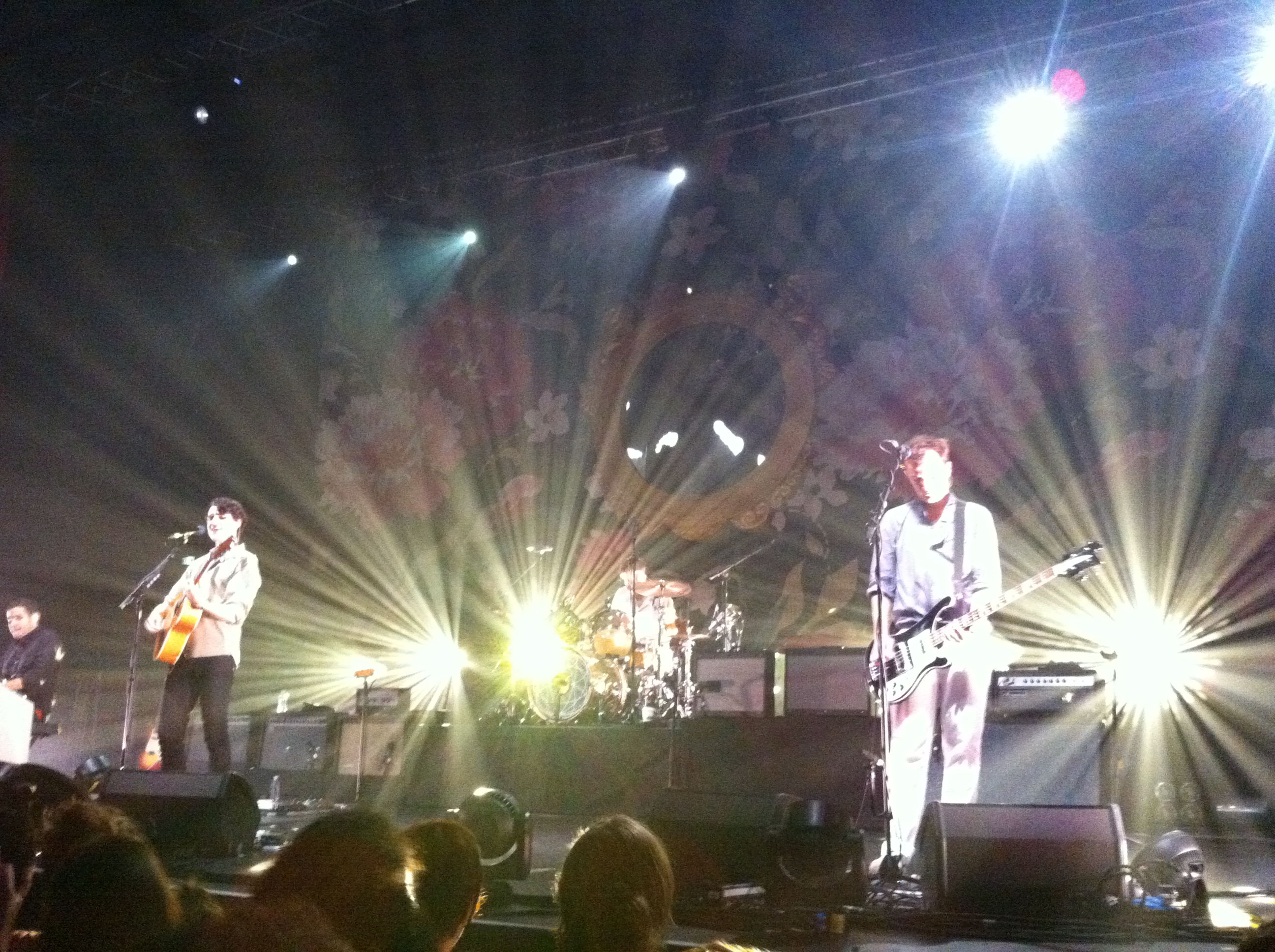 Qu’on se le dise : Le A n’était vraiment pas le meilleur choix de première partie pour un groupe comme Vampire Weekend. C’est donc devant un public excité mais endormi que les quatre New Yorkais dressent la tapisserie de fond de scène et entament un Cousins endiablé qui réussira à secouer la salle. S’en suit un set quasi-parfait, alternant ballades pop (Hannah Hunt, Cape Cod Kwassa Kwassa, Ya Hey …) avec des titres plus énergiques (Diane Young, Run ou l’énorme A-Punk), le tout équilibré entre les trois albums du groupe. Public emballé à 300%, grâce à l’apparente bonne humeur d’Ezra Koenig et la danse perpétuelle du bassiste. Le concert se finira sur un Walcott de torture, puisqu’on ne veut pas qu’ils s’en aillent. On n’aura même pas droit à un petit rappel. Mais on en ressort avec le sourire pour trois jours.