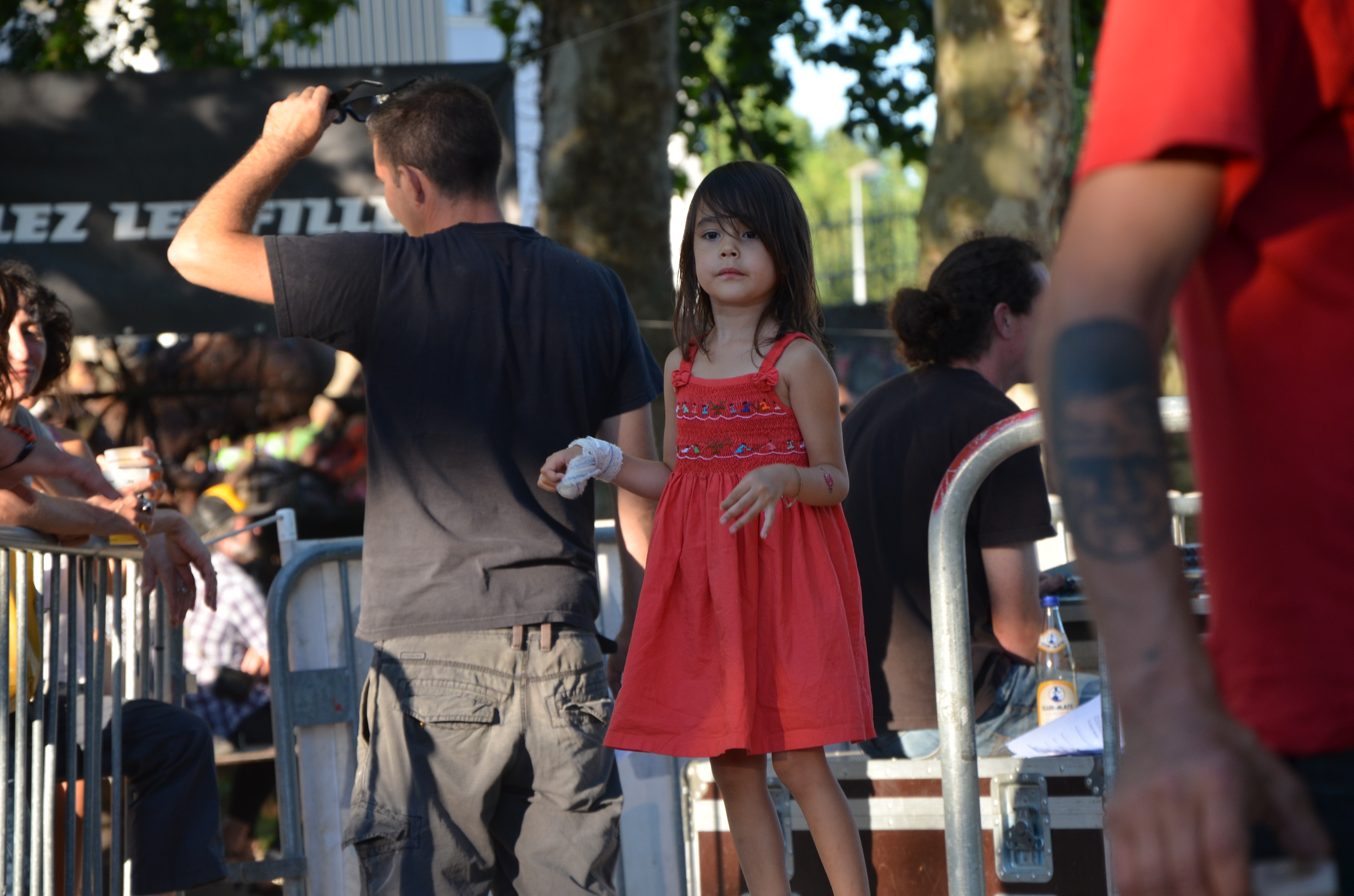 Côté public, des pantalons rouges, des pantalons verts, des robes courtes, des robes longues, des chapeaux, des bonnets, des blousons en cuir, des chaussures jaunes, des sacs en forme d’ananas, des barbes, plein de barbes : pas de doute, on est dans l’un des rendez-vous de la hype bordelaise. Et des parents de la hype, parce que le rock destroy, “c’est de famille – chez eux – tu vois ?”.