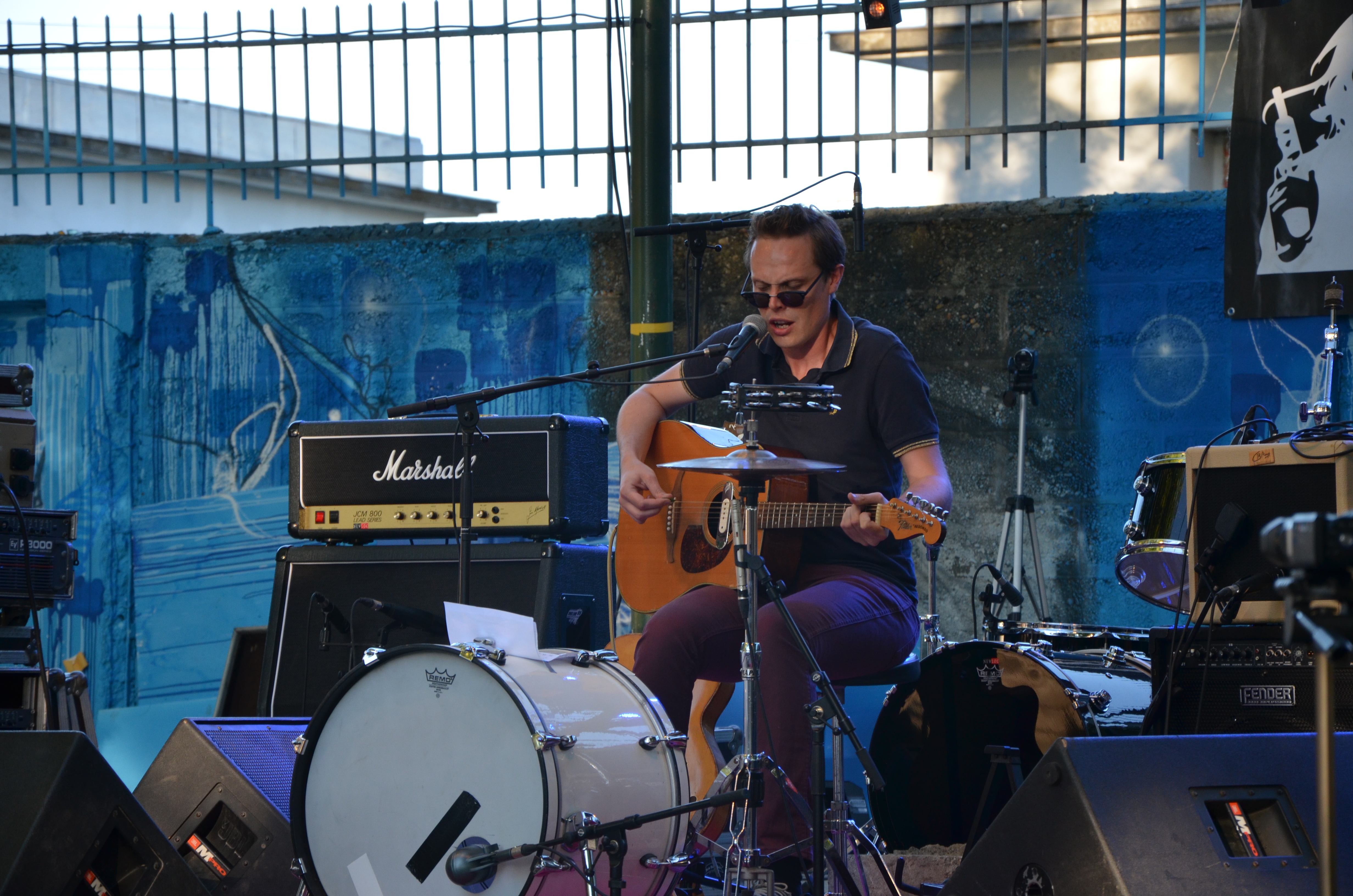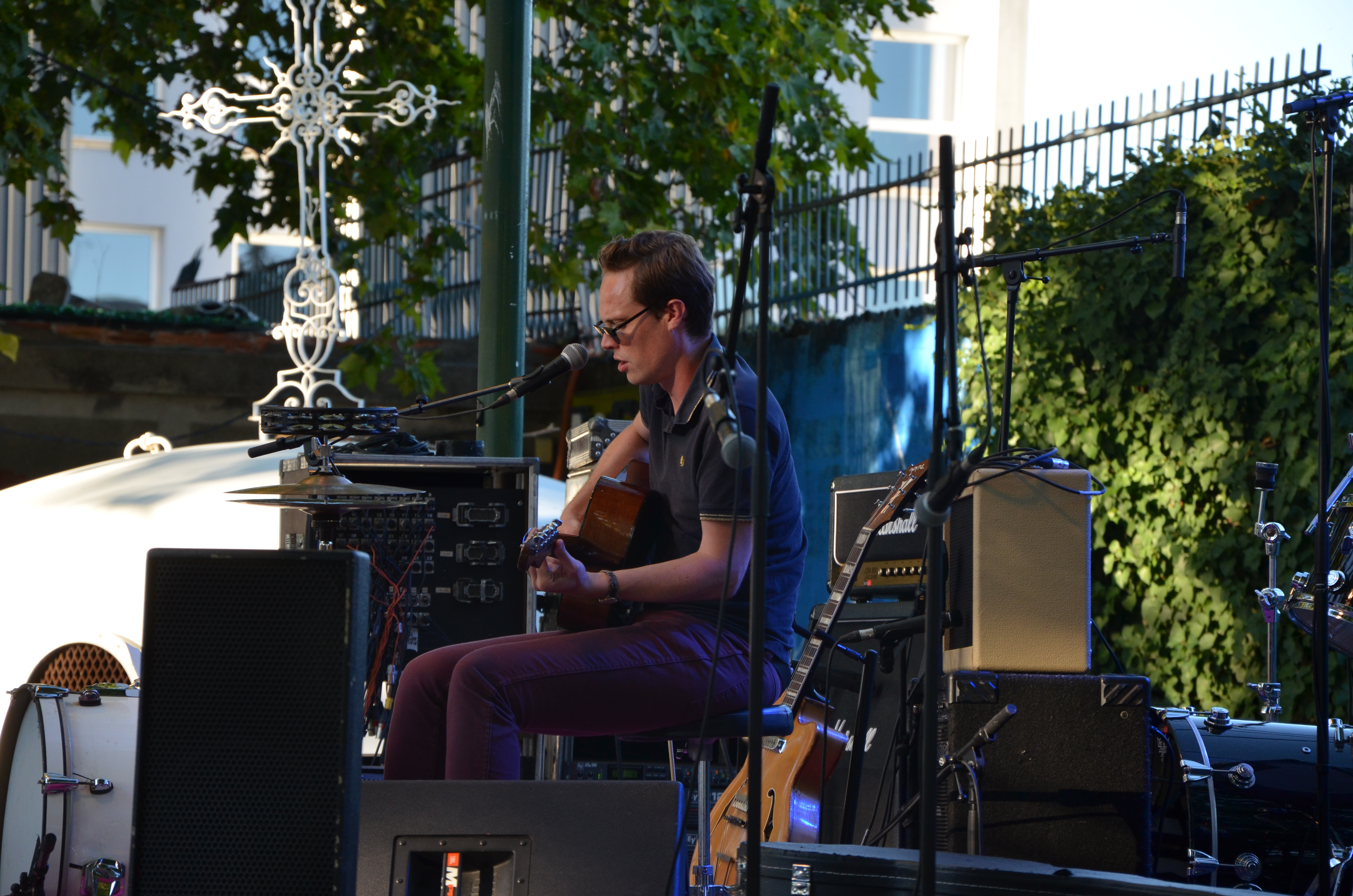 Cette fois ci, le soleil est au rendez-vous … Contrairement à l’organisation générale, qui nous a forcé à attendre une demi heure le premier concert, les réglages ayant pris du retard, mais qu’importe. 19h30, voici venir I Am A Band, qui comme son nom l’indique, fait tout, tout seul : guitare, chant, batterie. Et malheureusement, l’inconvénient de ce genre de chose, c’est qu’on tourne souvent en rond. Même si ses compositions, assez inspirées du plat pays d’Amérique du Nord, celui où la peine de mort existe encore, sont assez plaisantes, on en fait vite le tour. “Mais, ça fait 10 minutes qu’il chante la même chose. Non ?” Bah non. Quelques petits morceaux sympas quand même (comme celui ci par exemple). (À noter : si les gens sont allongés sur la colline et parlent entre eux, c’est que t’arrives pas à capter leur attention, ce qui est mauvais signe pour ta carrière musicale. Et c’est pas la peine de lancer des “j’espère que je ne vous dérange pas ceux qui dorment là bas” entre deux chansons, ça ne marchera pas mieux). Par chance, le public se réveille sur la fin avec des chansons beaucoup plus énergiques.