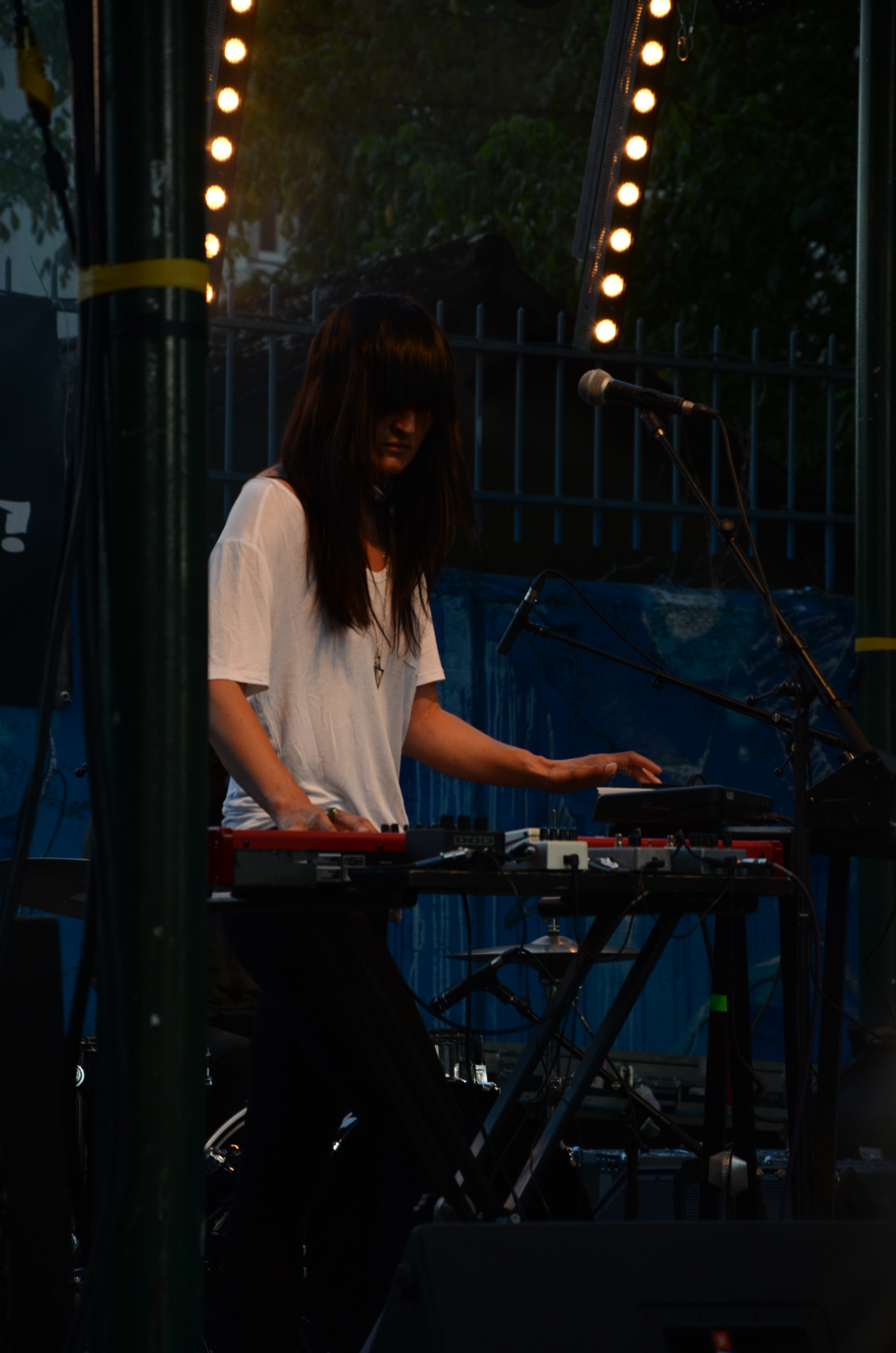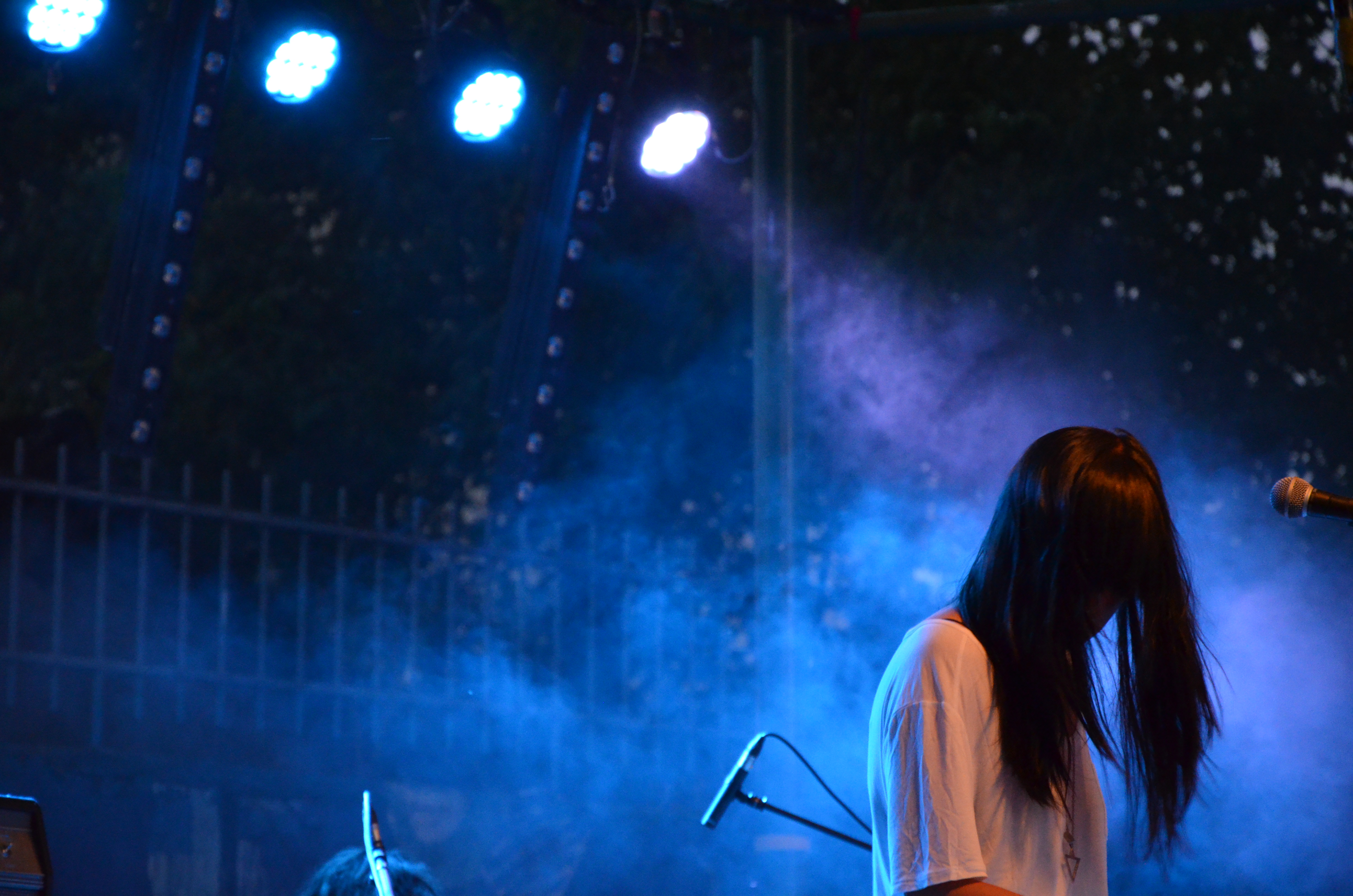 Le A, c’est un groupe de filles … Ou presque, puisque à la batterie, on retrouve un homme très chevelu. La première chose qui m’est venue à l’esprit en écoutant leur musique, c’est “j’ai déjà entendu ça quelque part”, et c’est pas bon signe. Warpaint n’est pas noté dans leurs influences, mais c’est pourtant l’une des ressemblances les plus claires qu’on peut identifier. Ensuite, ce fameux batteur semble tout droit sorti des années 90 (Sonic Youth et tout le reste), ce qui ajoute un peu à l’intérêt pas gigantesque de l’ensemble. À la fin du concert, beaucoup de personnes du public disaient “ça tourne en rond quand même” et oui, en somme.