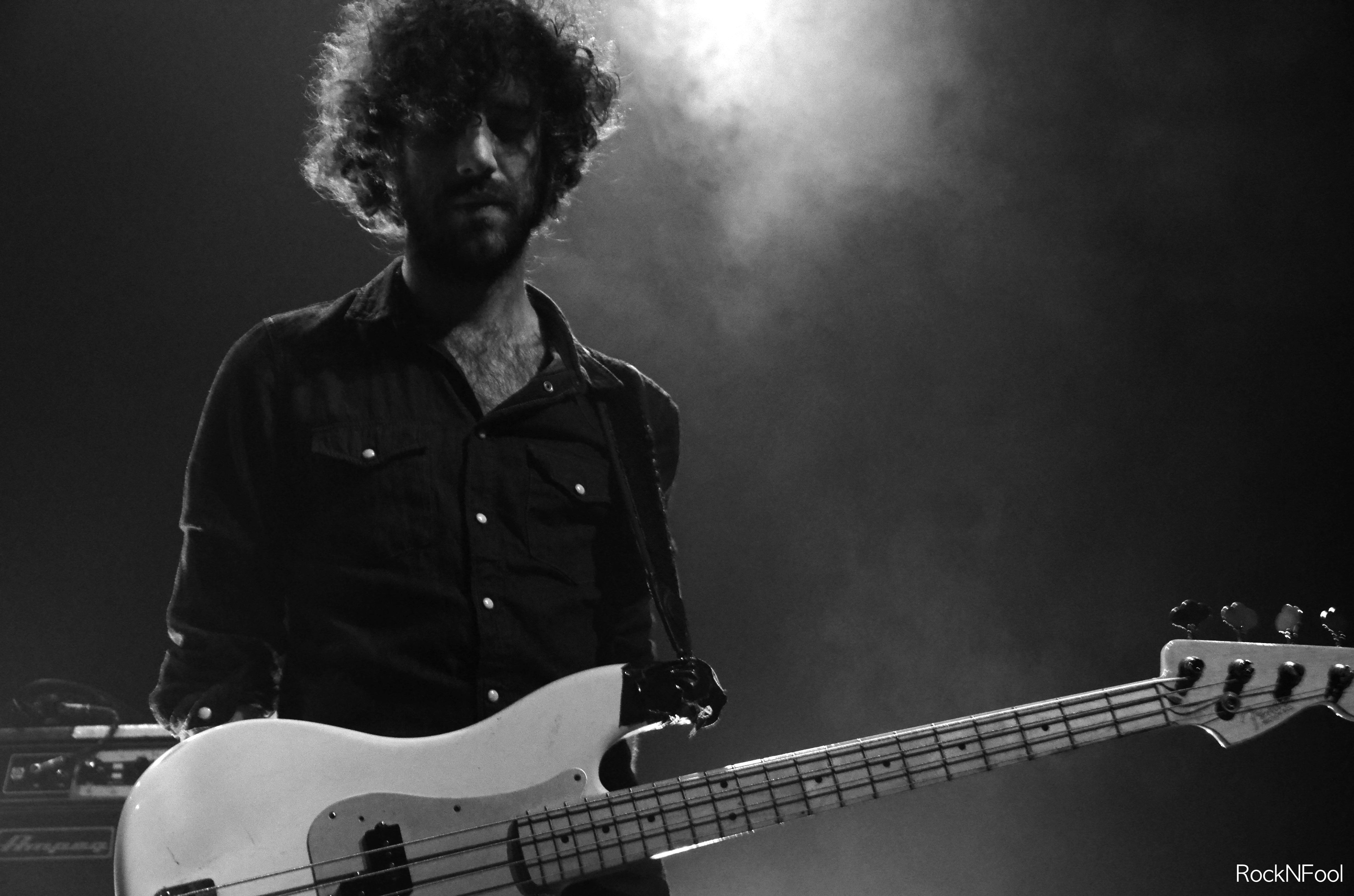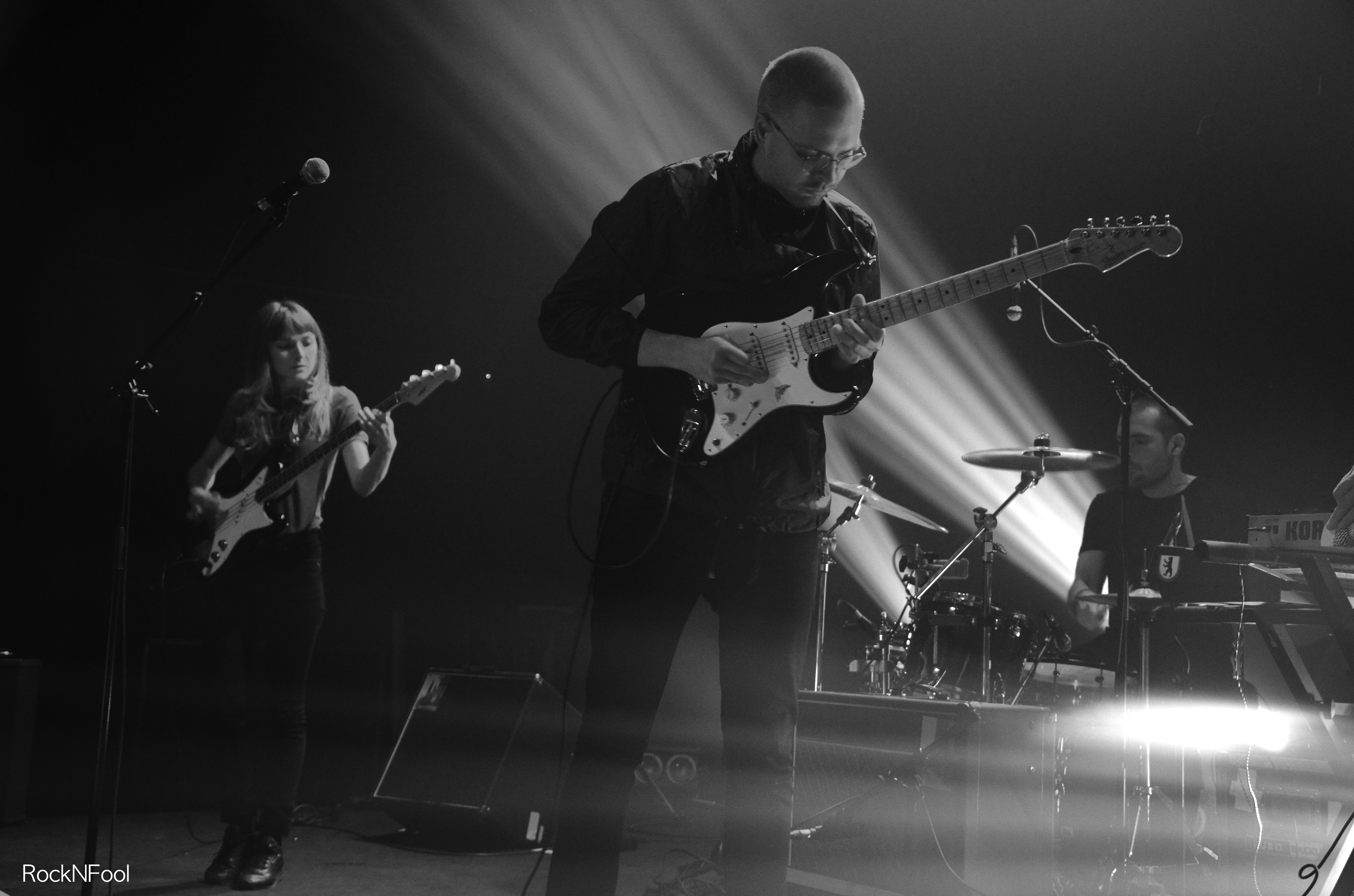 Malheureusement, la sauce n’a pas pris chez moi. Beaucoup trop de bruit et de mouvements pour au final pas grand chose. Parce que oui, des mouvements, ce n’est pas ce qui a manqué : déhanché un poil niais de la bassiste, course à pied du chanteur, toupies du guitariste (qui a manqué à plusieurs reprises de m’assommer avec sa Fender) … À en donner le tournis. Alors certes, l’énergie déployée sur scène est colossale, et certes, les références, palpables, sont excellentes. Mais pour moi, ils n’y apportent rien et n’ont fait que les mélanger. Même la voix du chanteur est un mix entre le timbre de Ian Curtis (Joy Division) et la nonchalance d’Aaron Dessner (The National). Pour ce qui est des compositions, on ne les sent pas s’enchaîner, mais pour les raisons opposées à Garciaphone : elles se ressemblent toutes. Peut-être est-ce dû à la technique quasi irréprochable des musiciens qui occulte leur folie endormie … Hasard malheureux de la setlist ou nouvelle technique de musculation pour batteur : les tempos ne descendaient jamais au dessous de 150 BPM, soit un bon Cassius de chez Foals (ou God Save The Queen des Sex Pistols pour les moins frais d’entre nous). Visiblement, le public (qui était resté bloqué en masse au bar pendant le concert de Garciaphone) a vraiment apprécié cette pop-cold wave, l’ambiance était bonne, les regards rivés sur la scène. Un bon concert, oui, d’accord, on était loin du stade Jena Lee, mais j’ai rapidement trouvé le temps long.