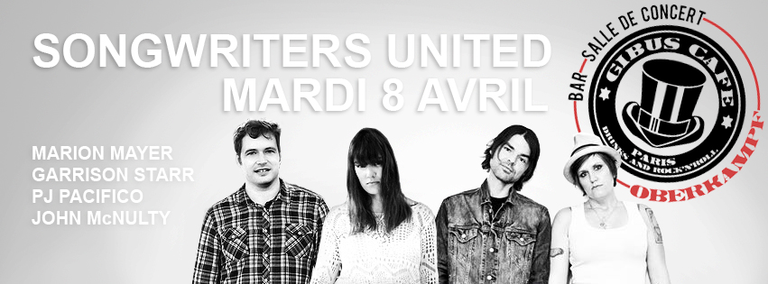 Vous connaissez l’amour que l’on porte aux songwriters. D’ailleurs, si vous êtes ici, c’est peut-être parce que vous aussi vous les aimez. Ca tombe bien, allons les aimer ensemble, le mardi 8 avril. Ce soir-là, se tient au Gibus Café, la première édition du Songwriters United. Pour l’occasion, quatre artistes folk sont invités à se produire sur scène pour faire découvrir leurs univers boisés et mélancoliques : Garrison Starr, Marion Mayer (aperçue en première partie d’Angus Stone), PJ Pacifico et John McNulty. Rocknfool a 3 X 2 places à te faire gagner. Pour remporter les sésames, il te suffit d’envoyer un mail à onlyrock.folk@gmail.com.