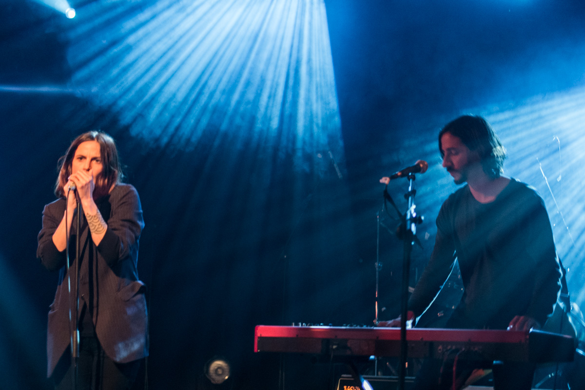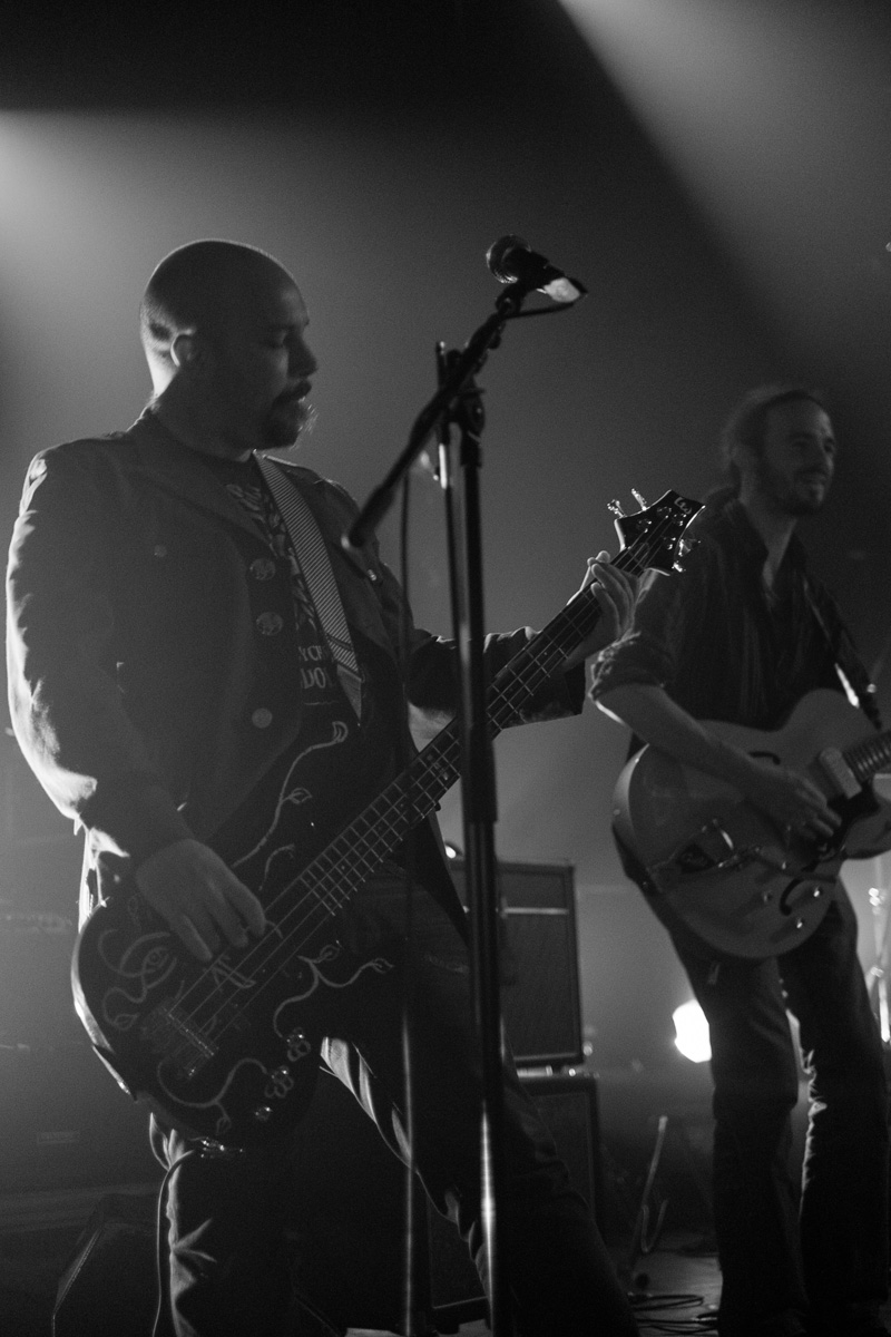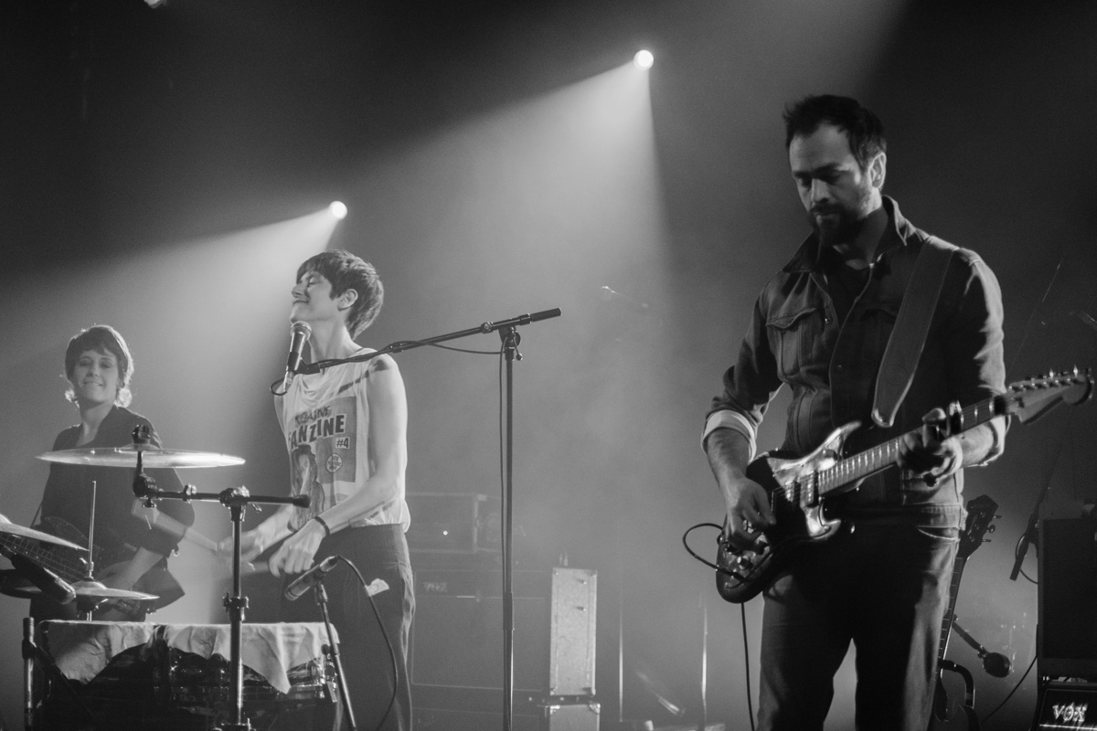 Suivent Robi. Je n’avais pas particulièrement prêté attention à eux, navigant visiblement plutôt dans les eaux de la chanson française, j’aurais peut-être dû. En fait on penche plutôt vers la coldwave (avec d’ailleurs une reprise de Trisomie 21), tendance gentillette tout de même. A noter un groove énorme, porté notamment par l’excellent bassiste, et son tout aussi excellent son de basse. La chanteuse assure elle aussi parfaitement, que ce soit en français ou en anglais. Un bon moment, même si les blagues inter-titres finissaient par être assez lourdes.
