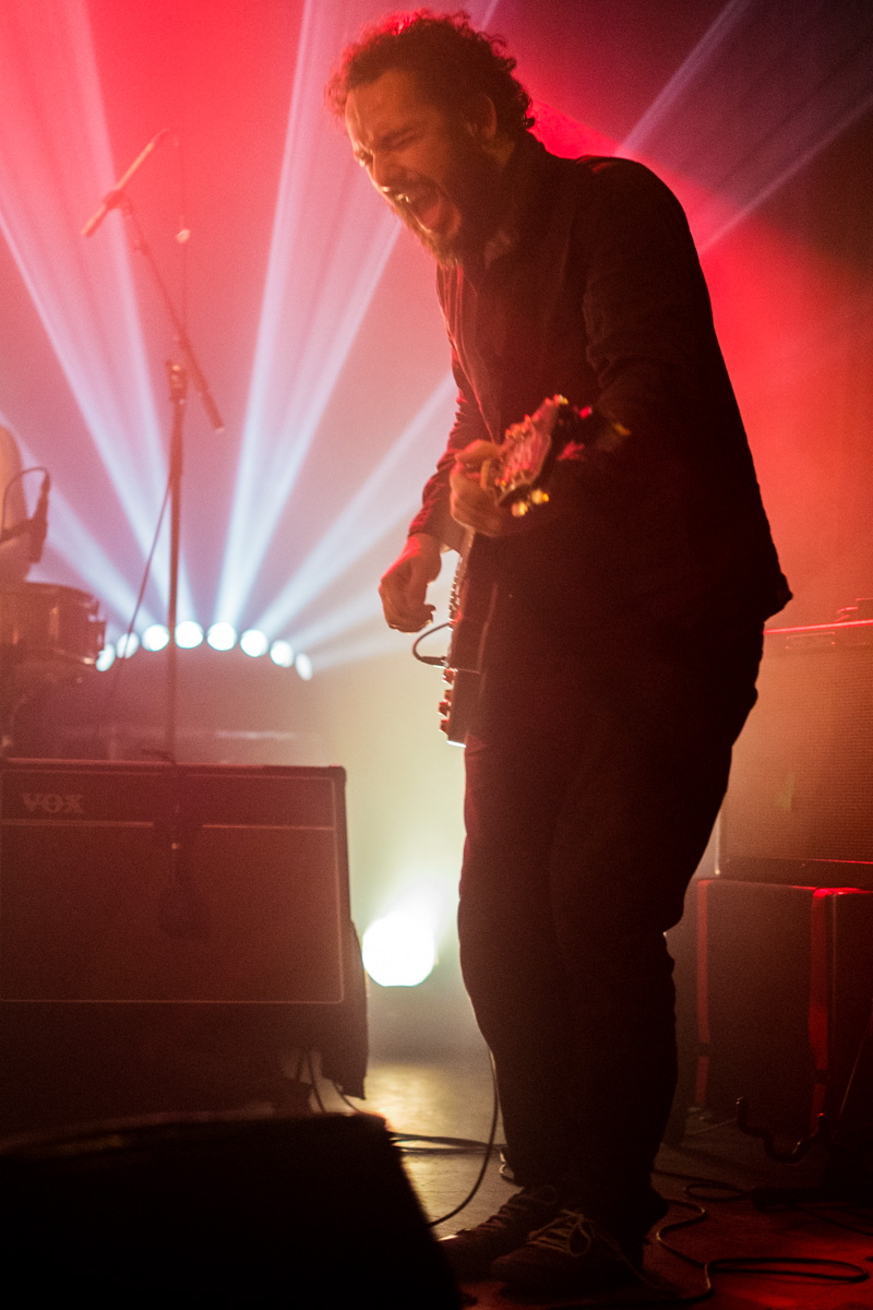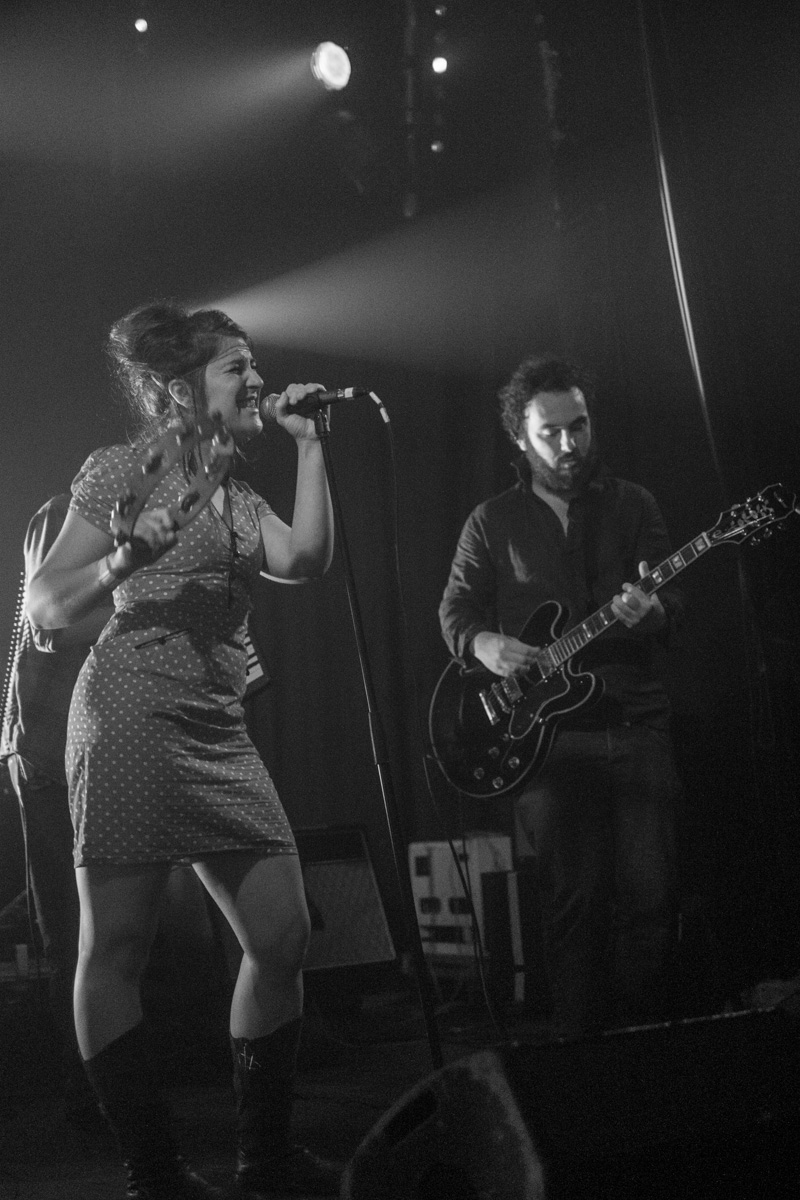 Troisième groupe : Sound Sweet Sound. Les toulousains débarquent à six sur la scène pour étendre encore un petit peu le grand écart musical de la soirée. Un très gros son (sans pour autant être les moins fins), mur de guitares qui bourdonnent, riffs stoner hypnotiques et chant plongé dans la reverb’. De longs morceaux d’un psychédélisme tortueux, oscillant entre la traversée de plaines désertiques et les explosions de guitares. Le public finira même par onduler sur les rythmes lancinants. Tout bonnement excellent, à revoir.
