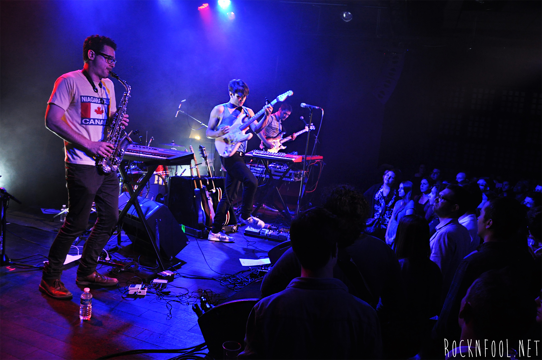 A ma droite, un danseur épileptique. Devant moi, deux photographes accrochés à la scène comme une moule à son rocher. A ma gauche, trois étudiants en école de commerce, très alcoolisés, trois têtes à claques qui parlent politique en plein concert. Très fort. L’un d’entre eux, pensant même être dans son salon, n’hésitera pas s’appuyer contre la scène, dos à l’artiste pour parler avec ses copains. L’artiste en question c’est Peter Peter. Et il a fallu se mettre dans un coin isolé, loin des gens pour pouvoir apprécier comme il se doit la superbe pop mélancolique du Canadien.