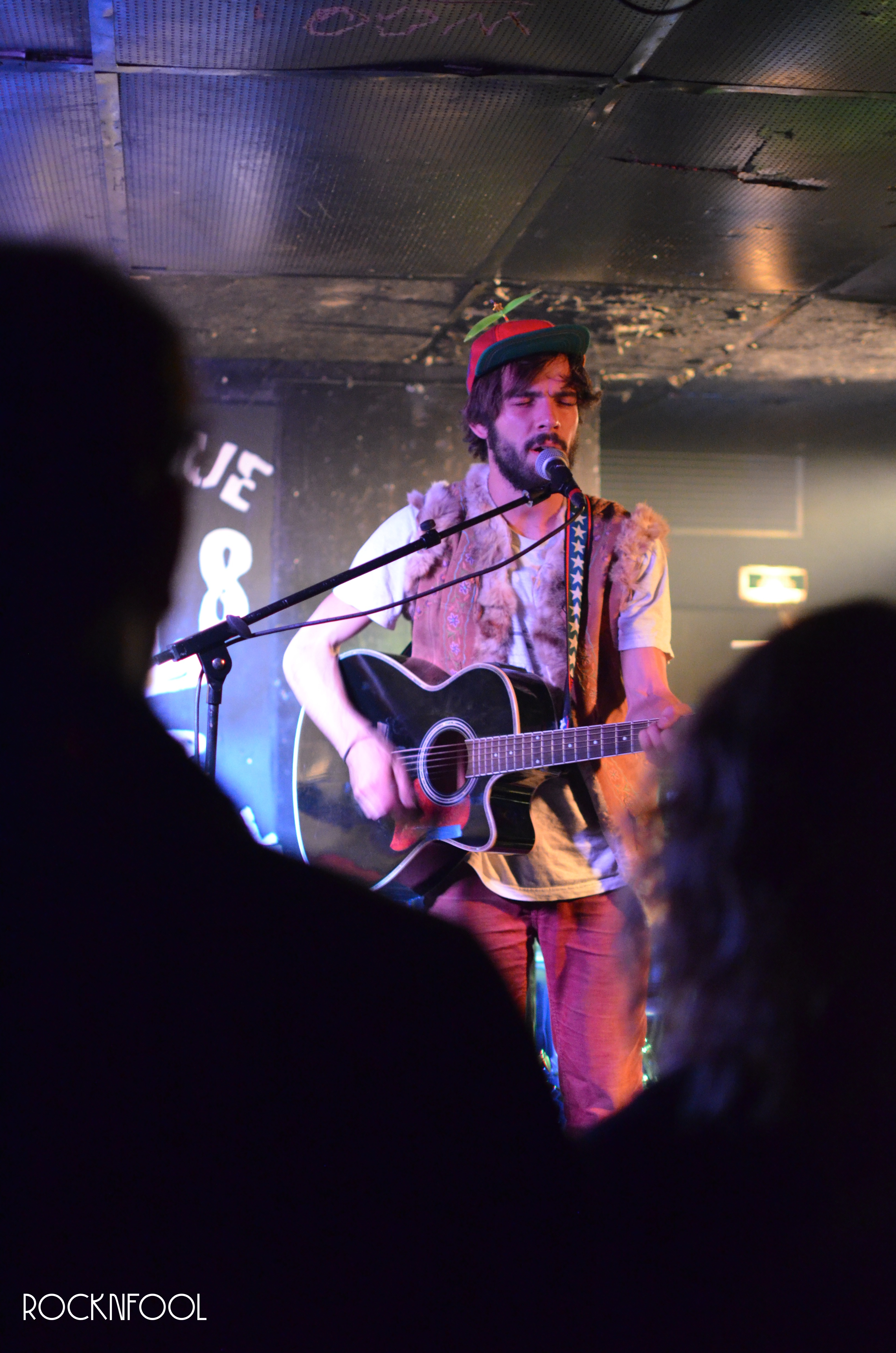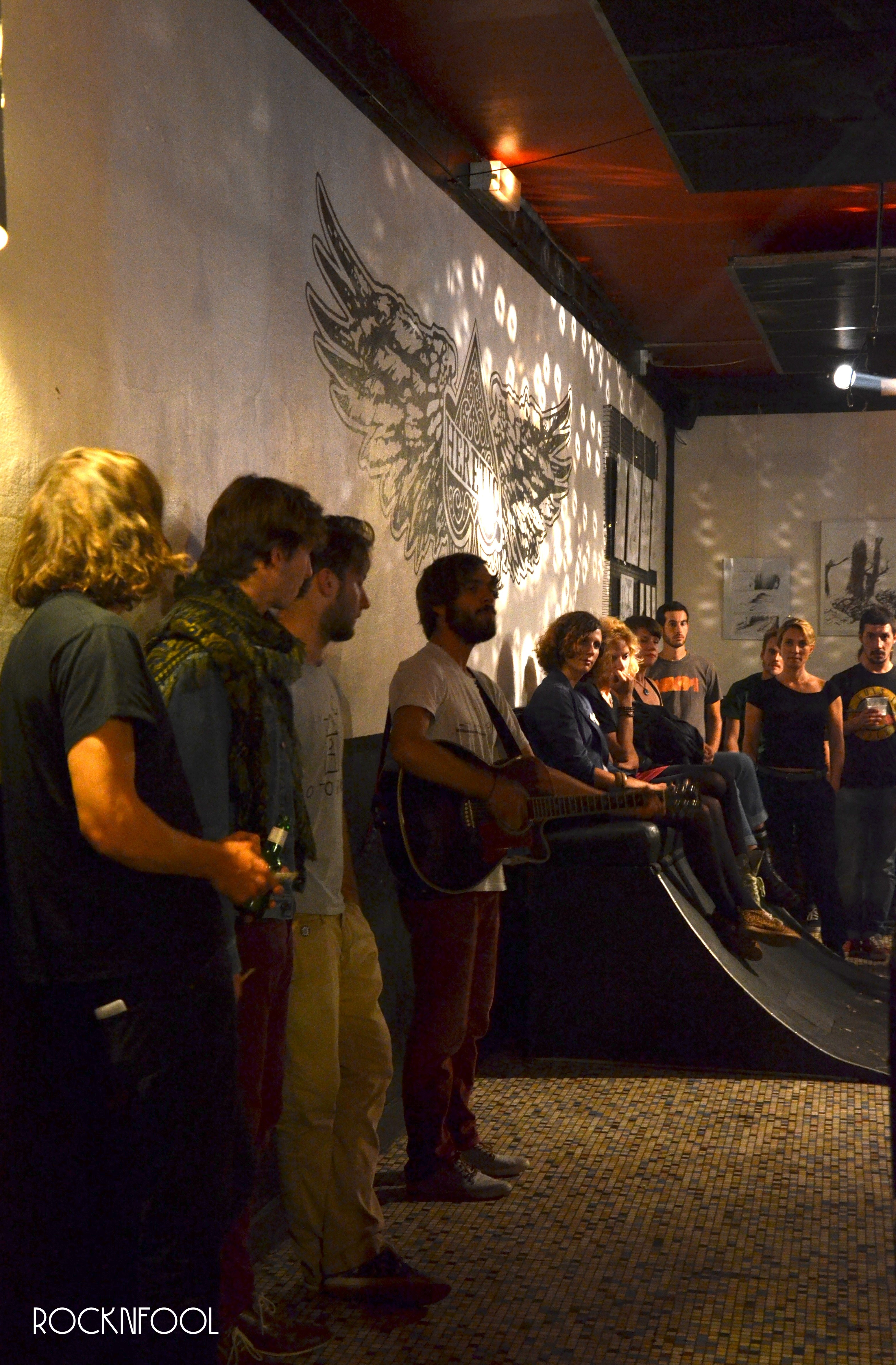 La soirée a donc commencé en compagnie de Thomas Skrobek. Débarqué de nulle part, casquette à hélices vissée sur la tête, il a entamé son set devant le bar, tout en douceur, avec pour choeurs les musiciens de Samba de la Muerte et Botibol. De la folk, génial, on adore ça.