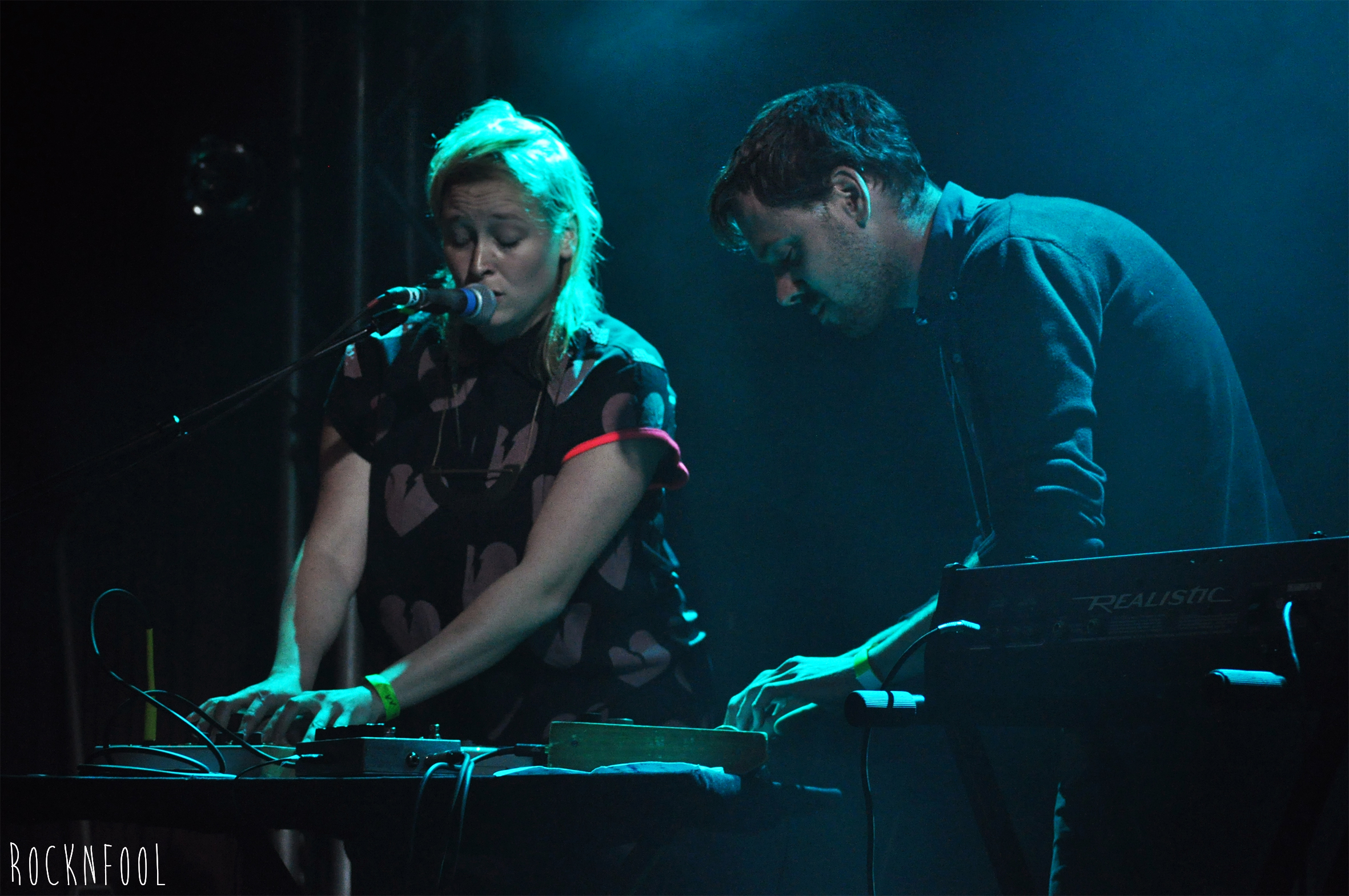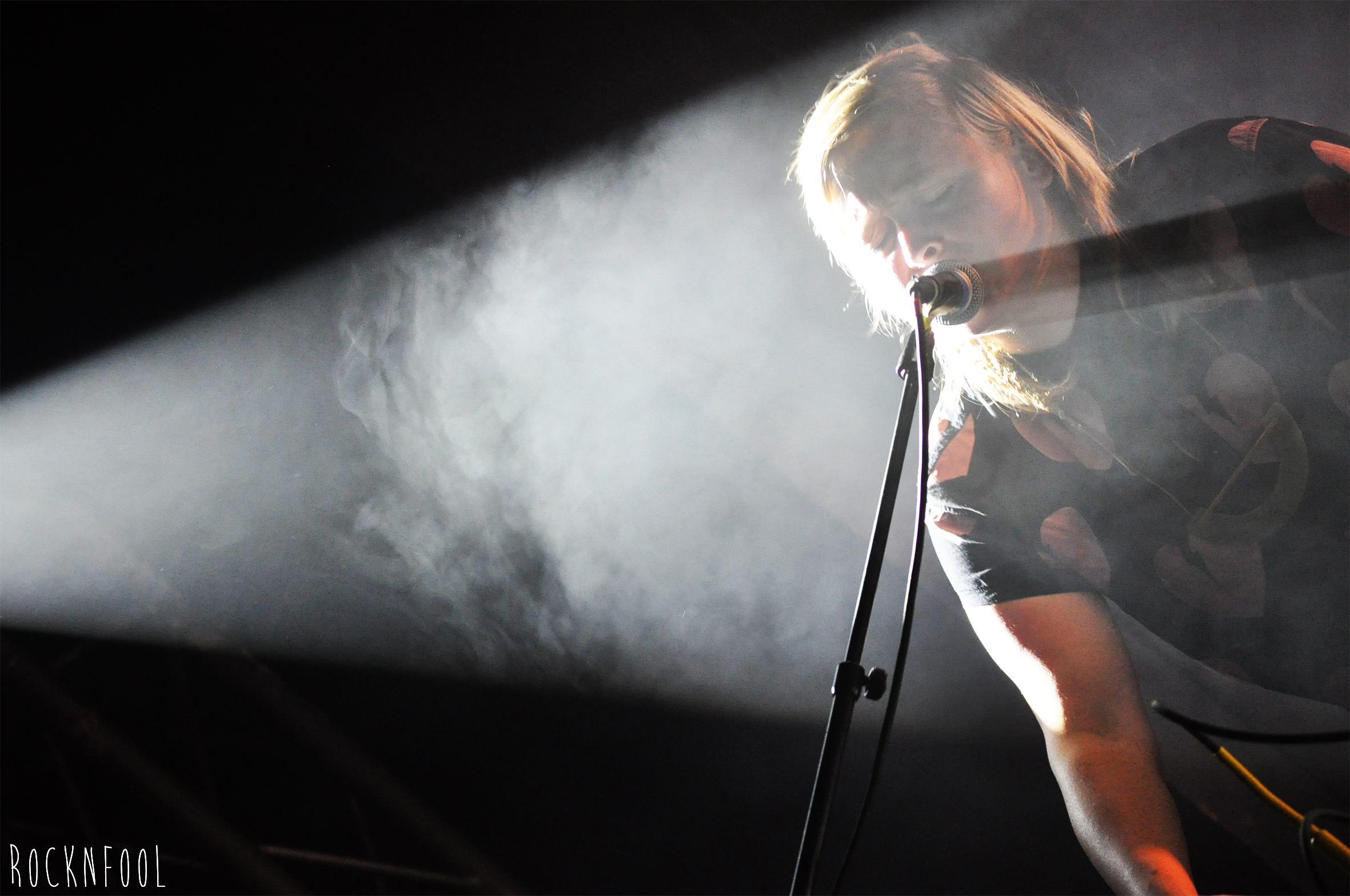 Lançant le concert sur les coups de 20h avec “Lover’s suicide”, les trois Canadiens de dear criminals fédèrent très vite le public arrivé à l’heure autour de leurs compos électroniques sombres et lancinantes. Chacun derrière sa table de mixage on aurait pu croire à un set froid de dj individualiste. Pas du tout. Le trio se fait plus duo entre Frannie et Charles à la voix, Vincent au milieu accompagnant en retrait les échanges tantôt passionnels tantôt hostiles des deux chanteurs qui interprètent les titres de leur dernier EP Crave, et de Weapons qu’on vous conseille vi-ve-ment. De gros beats viennent parfois rompre les douces mélodies espiègles et délicates nous entraînant dans une spirale de sentiments contradictoires, un vrai ascenseur émotionnel qui vient nous achever sur “Took It From Me”. Énorme coup de foudre fusionnel, bliss total.