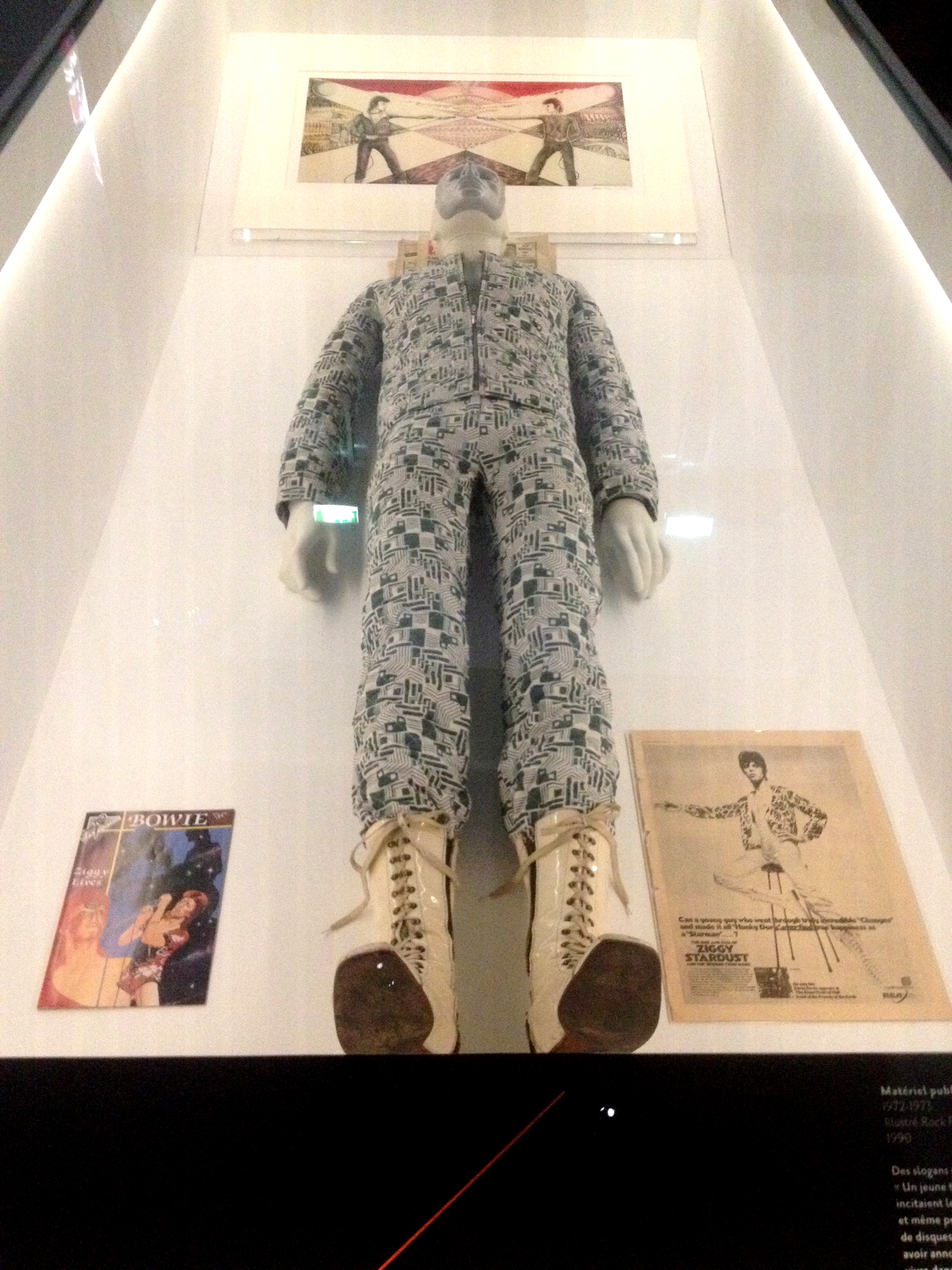 300 objets, des costumes aux pochettes d’albums en passant par des paquets de cigarettes et même un mouchoir marqué de rouge à lèvres (qui proviennent des archives perso du chanteur), David Bowie is propose un voyage dans la tête de David Bowie. Plus que la musique en elle-même, c’est les personnages qu’a incarné le chanteur qui est présenté. D’où il puise son influence, comment nourrit-il son imagination (en pillant dans les pages des magazines mode, comme le personnage de Ziggy Stardust inspiré d’une photographie d’un mannequin androgyne aux cheveux rouge flamboyant), comment fonctionne son mécanisme créatif du plus théâtral des chanteurs.