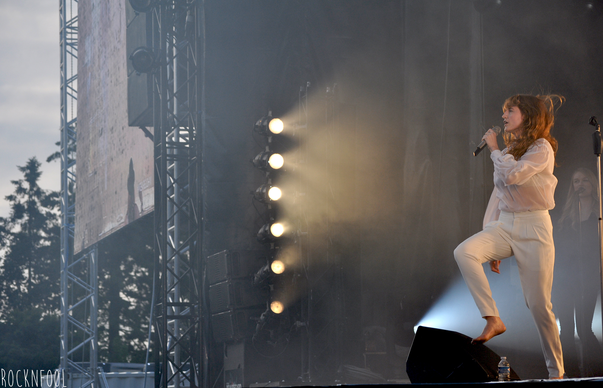 Dès l’instant où Florence foule la scène, pieds nus, tenue virginale, le temps s’arrête. Les fans sont là, certaines mêmes venues d’Angleterre spécialement. On entre en transe avec cette fantastique chanteuse, à la fois survoltée et planante, par sa (si belle) voix caractéristique et sa pop prenante et accessible. Complètement exaltée, parcourant la scène de long en large, Florence, mi-prêtresse, mi-déesse livre un set à la hauteur de son magnétisme, alternant entre les titres de son dernier album (How Big, How Blue, How Beautiful, Ship to Wreck, Queen of Peace, What Kind of Man…), et les incontournables de son répertoire (Drumming Song, What the Water Gave Me, You’ve Got the Love, Spectrum…). Submergés par les pouvoirs chamaniques de Florence, on n’a pas vu le temps passer. Impressionnance totale.