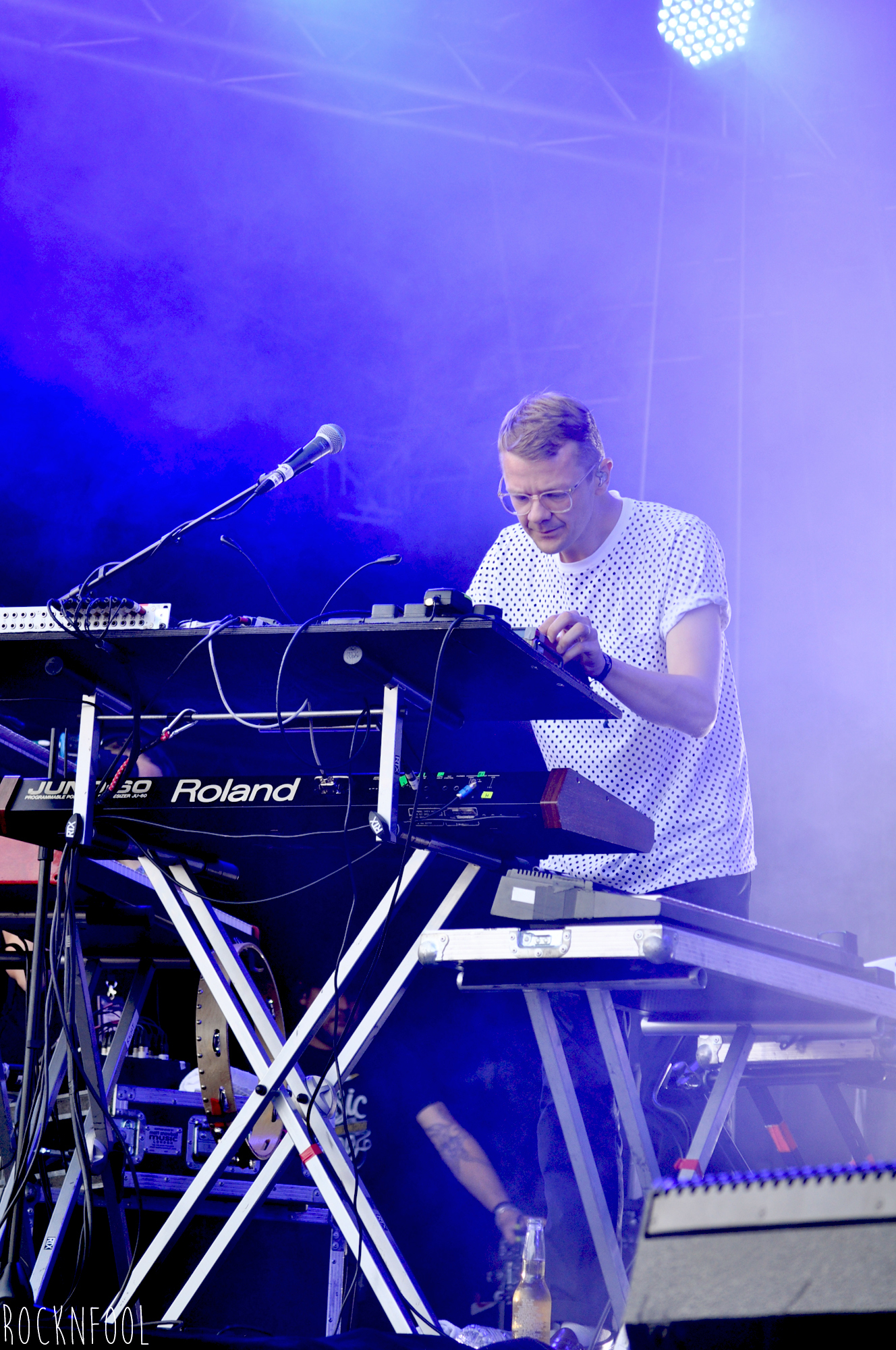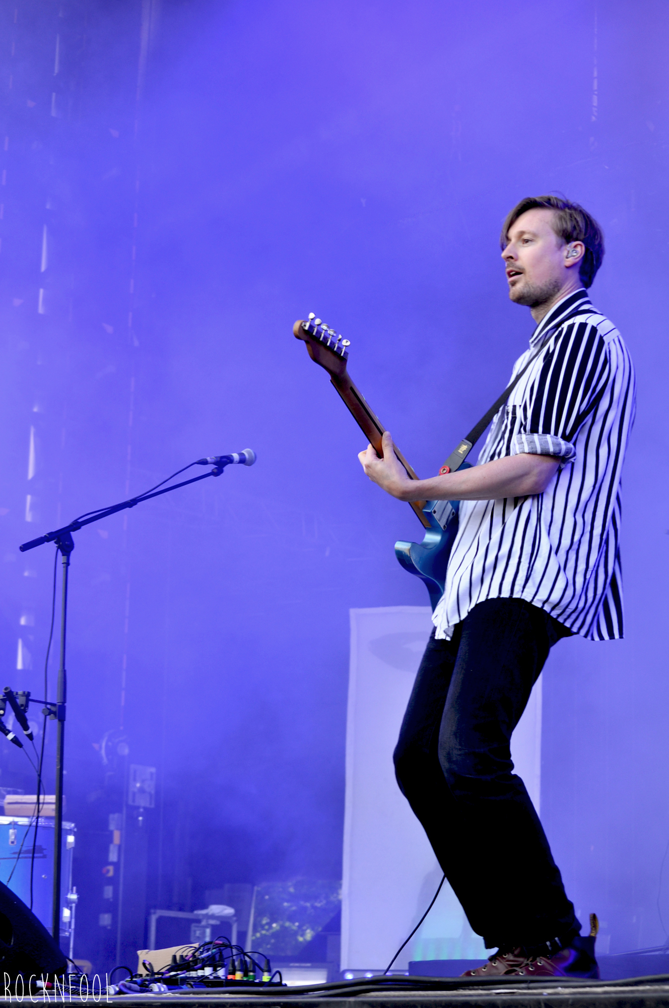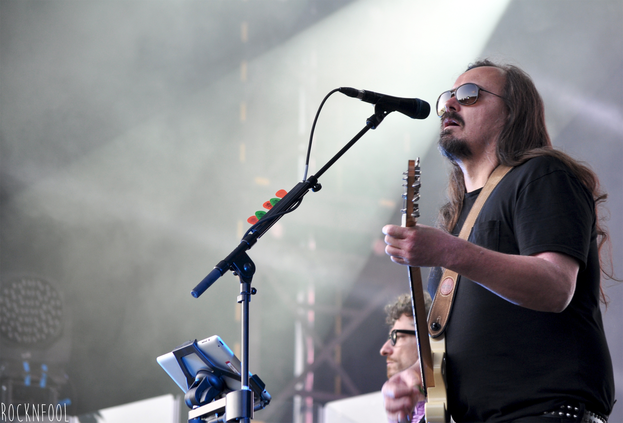The DIVA is back. On n’avait pas encore eu notre shoot d’Asaf pour l’été, nous voilà satisfaites. Monsieur débarque sur la grande scène après une intro musicale jazzy, qu’il viendra agrémenter d’un scat expressif et enjoué. Il interprétera peu de chansons de Gold Shadow, son dernier album, sans doute contraint par les exigences du public en festival, peu enclin aux douces balades et à la mélancolie post-rupture. Dommage. En tout cas Asaf, accompagné par ses musiciens a nullement manqué à ses obligations : petit poème en français déclamé juste avant Conspiracy Visions of Gomorrah, duel de solos de guitare vs voix, Reckoning Song en guitare-voix puis en version poumpoumptcha pour le plus grand plaisir du public, dont la plupart (pour ne pas dire les 3/4) ne connaissait/n’était venu que pour cette chanson). Déprimant sur les bords. On gardera en mémoire le sourire radieux du chanteur venant saluer avec tous ses musiciens en avant-scène.