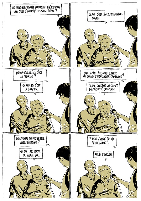 Alors que le fuyard se retrouve très vite au coeur de toutes les discussions, il rejoint tant bien que mal la Lozère où, comme “ils ne captent ni télé ni radio”, il se pense en sécurité.
