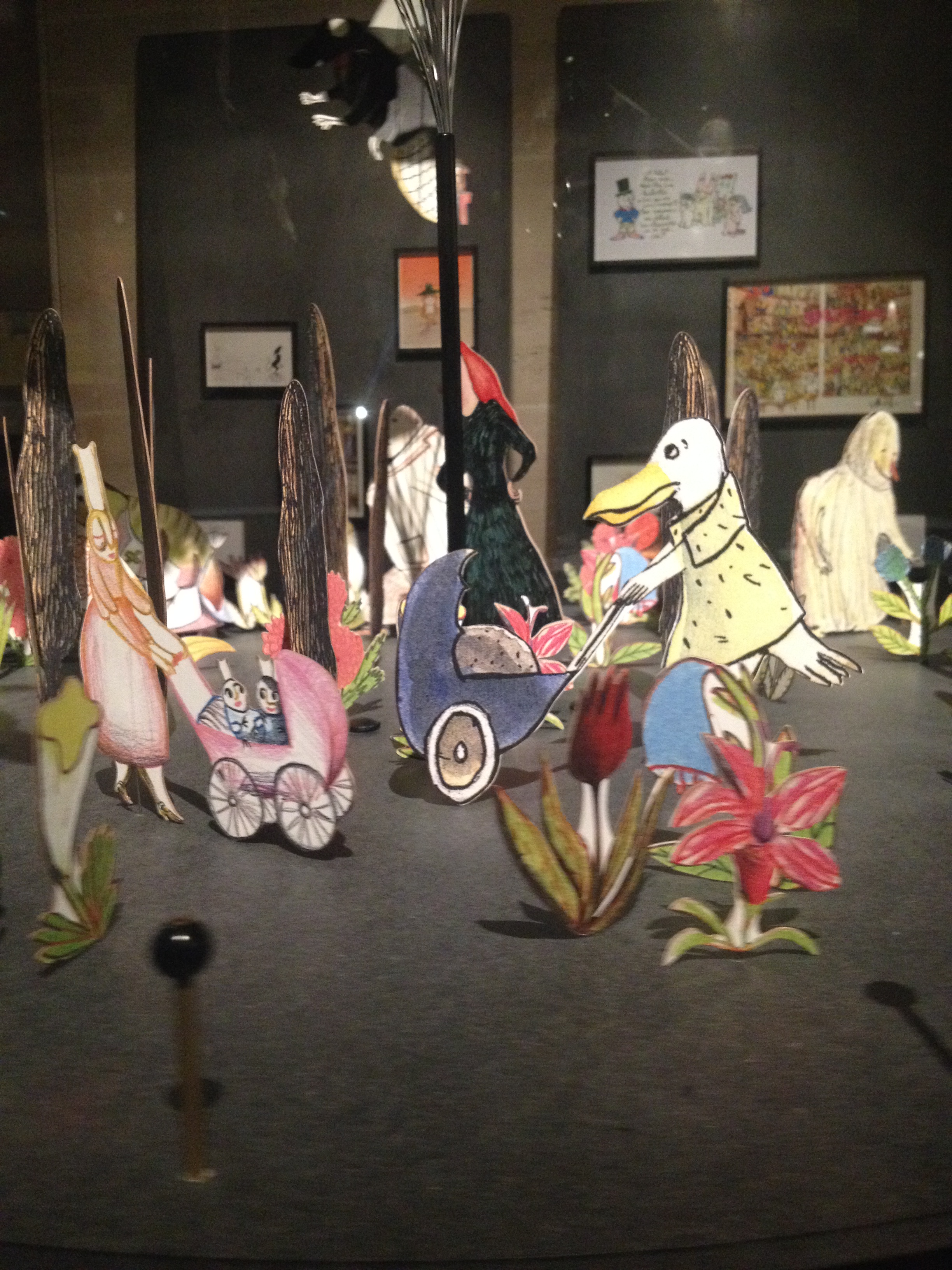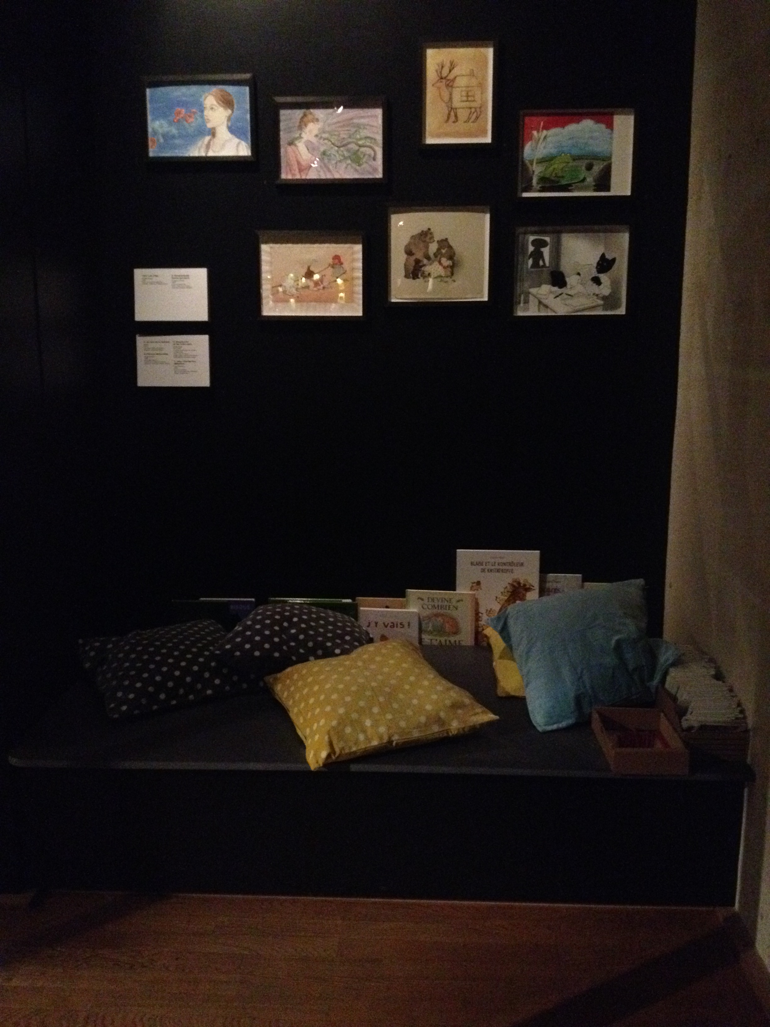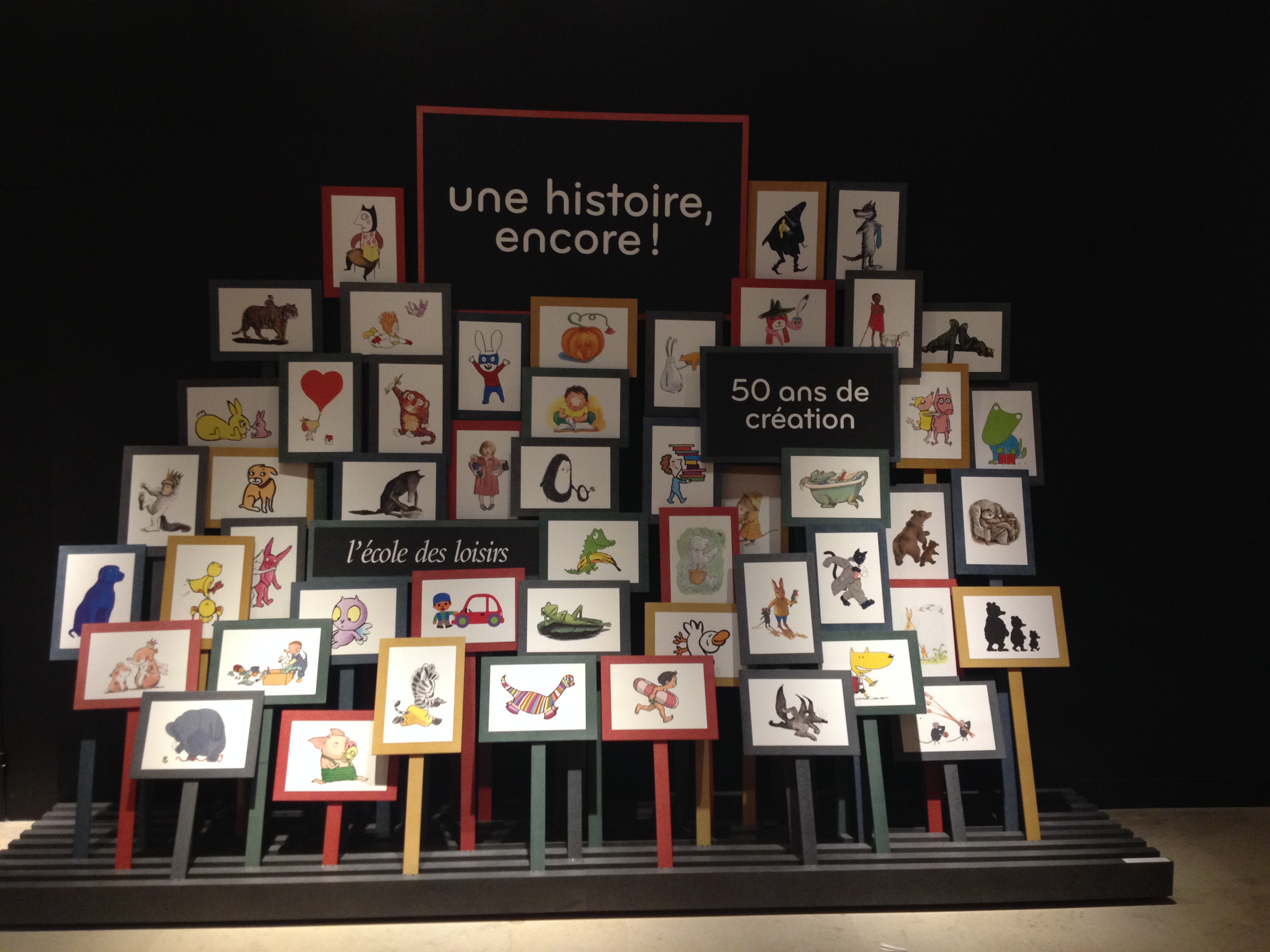 Du 1er octobre 2015 au 7 février 2016, rendez-vous est donné à la Galerie des jouets du musée des Arts décoratifs pour s’enthousiasmer devant les personnages de toutes ces albums qui ont bercé notre enfance. Deux longues salles ont été investies par la maison d’édition installée rue de Sèvres : vitrines restituant l’ambiance (et le capharnaüm) des dessinateurs, vitrines animées (coucou les chapeaux des Trois Brigands et le poussin de Claude Ponti) et bien sûr de superbes planches originales de nos personnages préférés auxquels on voue encore une grande tendresse (on a adoré celle du Voyage d’Oregon et celle de Max et les Maximonstres)… Pour couronner le tout, un espace multimédia avec des vidéos permettant de comprendre les étapes du travail éditorial et cerise sur le gâteau, des petits coin de lectures, confortablement aménagés (coussins, crayons, petits carnets…) avec tous nos albums préférés. Bon anniversaire l’école des loisirs… et encore merci !