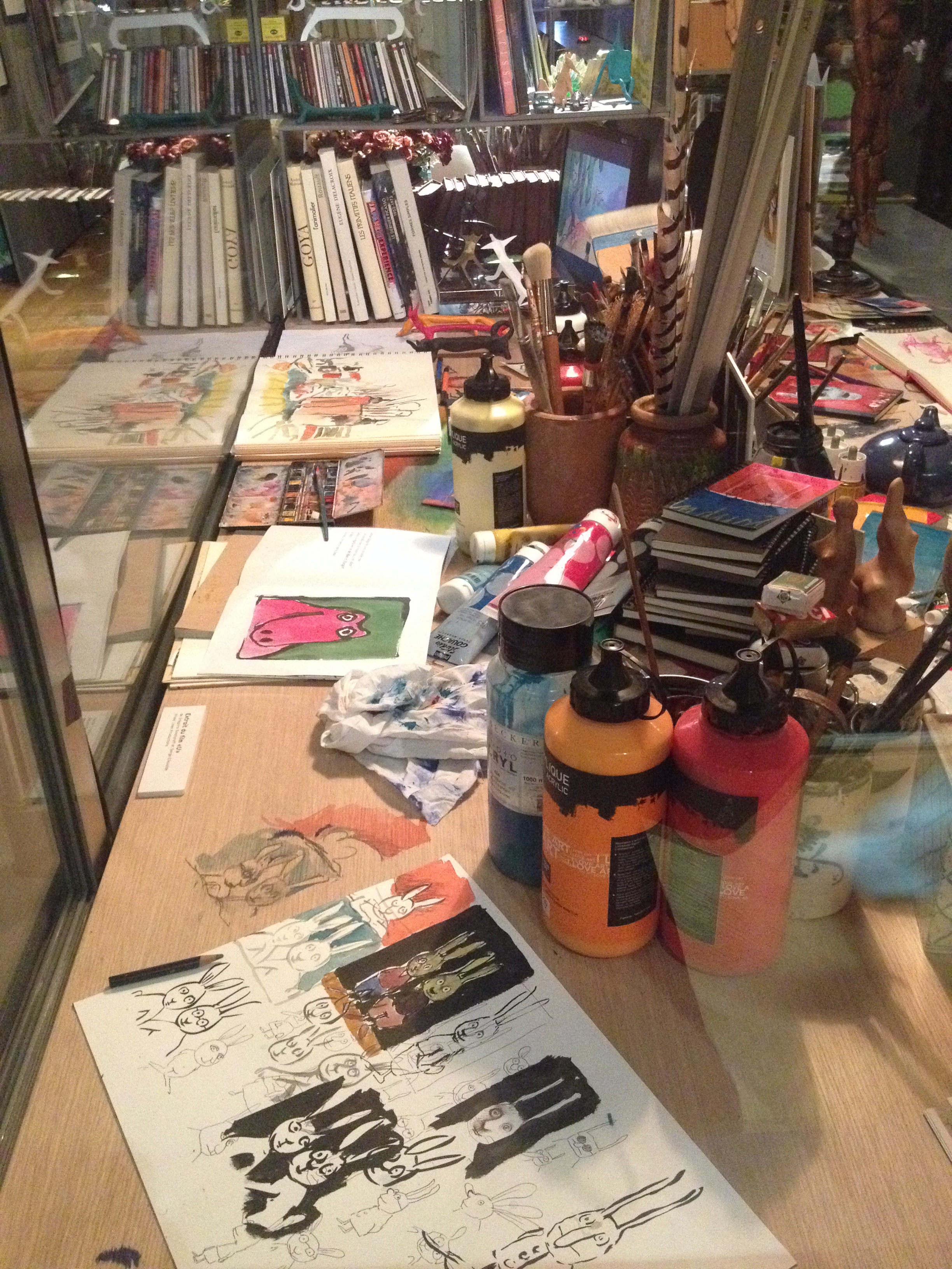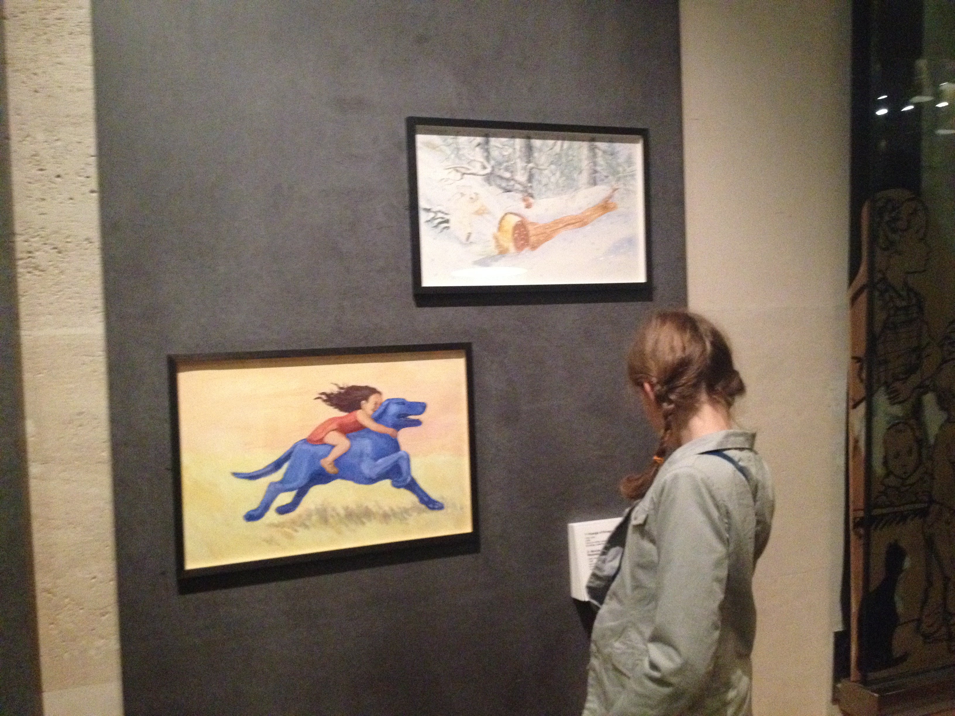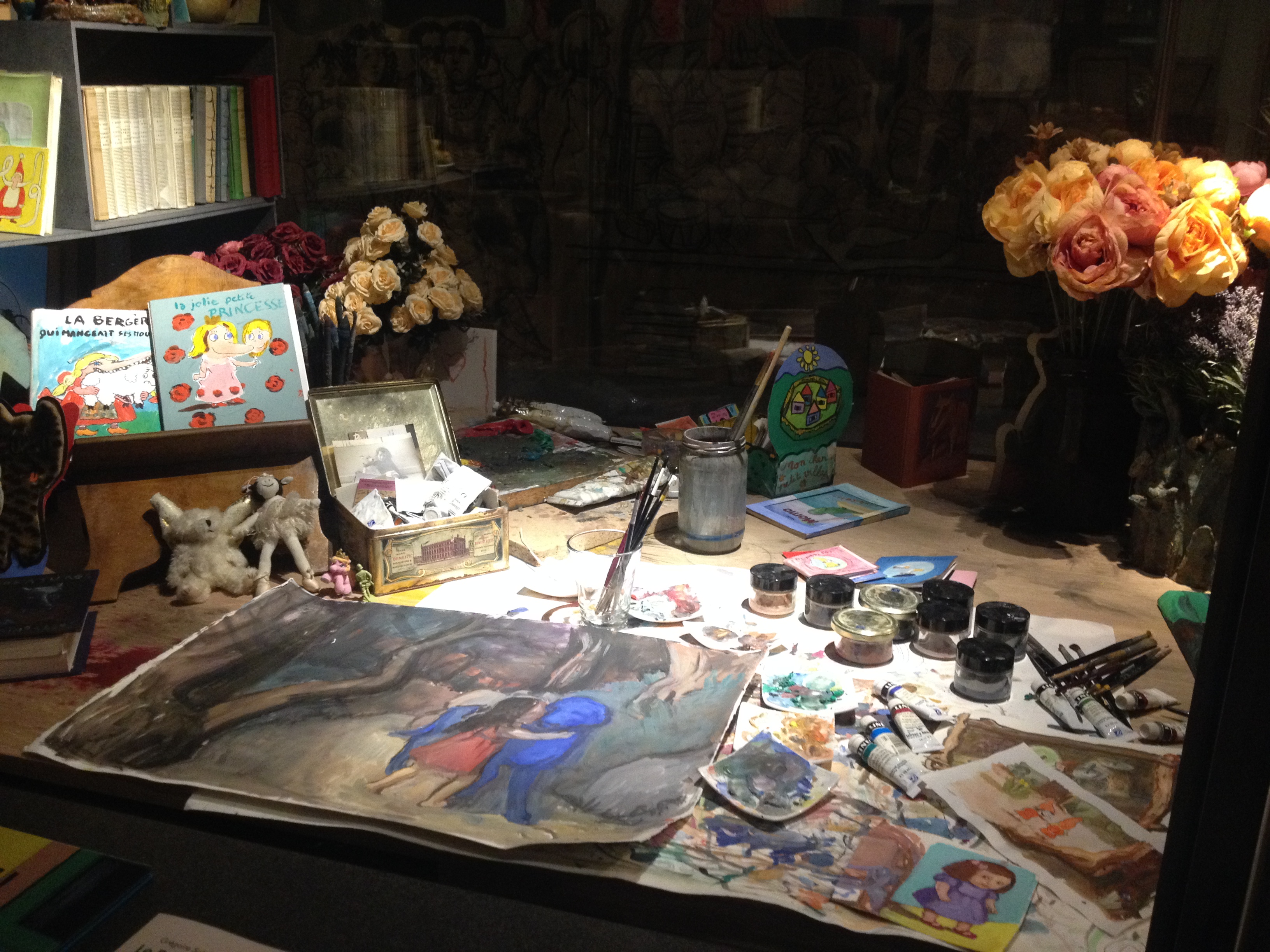 Du 1er octobre 2015 au 7 février 2016, rendez-vous est donné à la Galerie des jouets du musée des Arts décoratifs pour s’enthousiasmer devant les personnages de toutes ces albums qui ont bercé notre enfance. Deux longues salles ont été investies par la maison d’édition installée rue de Sèvres : vitrines restituant l’ambiance (et le capharnaüm) des dessinateurs, vitrines animées (coucou les chapeaux des Trois Brigands et le poussin de Claude Ponti) et bien sûr de superbes planches originales de nos personnages préférés auxquels on voue encore une grande tendresse (on a adoré celle du Voyage d’Oregon et celle de Max et les Maximonstres)… Pour couronner le tout, un espace multimédia avec des vidéos permettant de comprendre les étapes du travail éditorial et cerise sur le gâteau, des petits coin de lectures, confortablement aménagés (coussins, crayons, petits carnets…) avec tous nos albums préférés. Bon anniversaire l’école des loisirs… et encore merci !