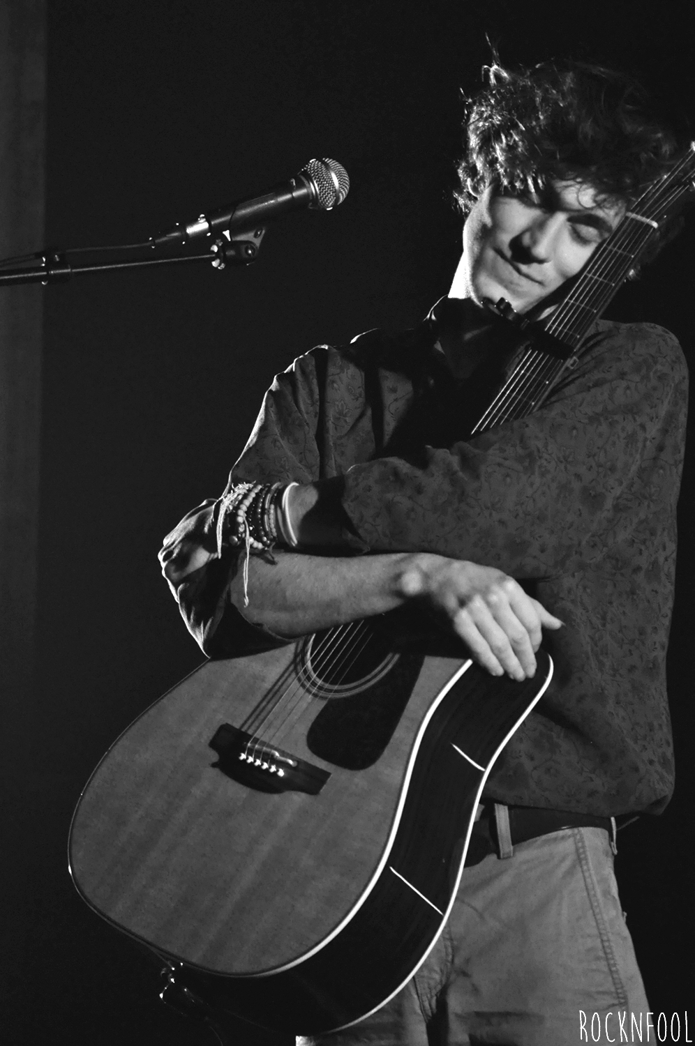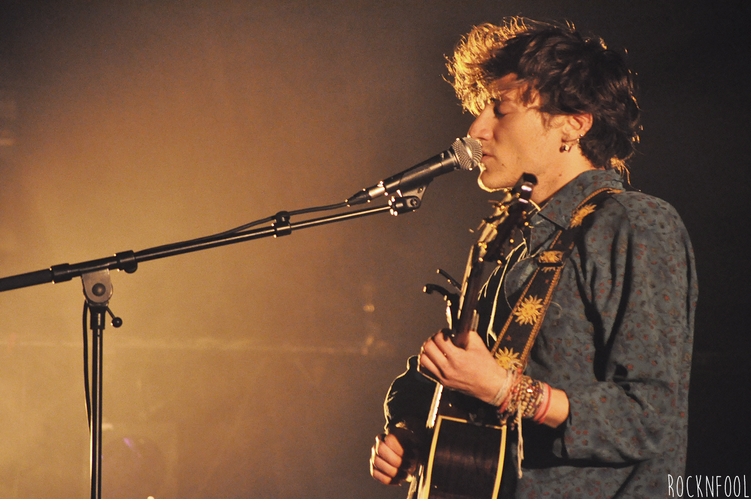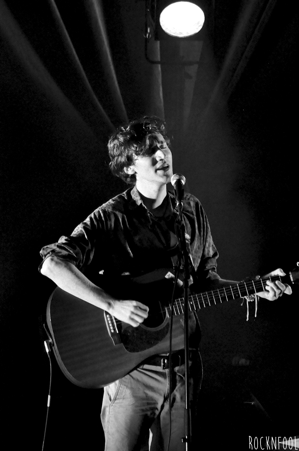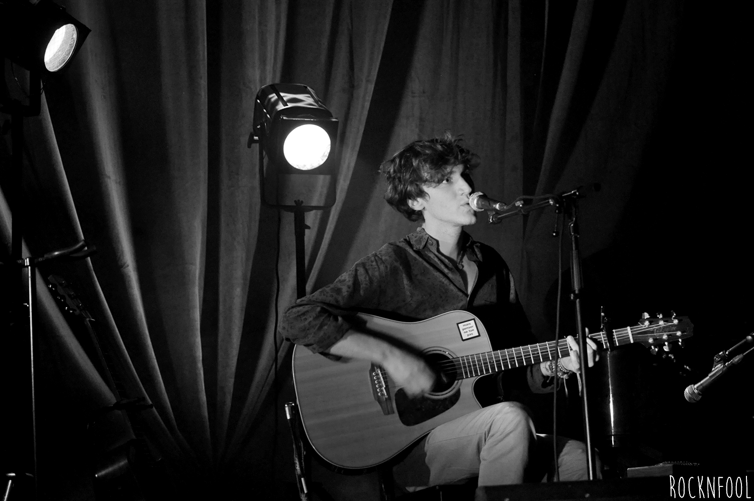 Le chanteur longiligne est installé sur une chaise, sur une scène à peine éclairée, accompagné par moment par un claviériste. Entre nous, on estime que le piano et le clavier sont superflus tant la guitare de Mathieu se suffit à elle-même. Pendant un peu plus d’une heure, le jeune homme va parcourir l’ensemble de son album, il navigue entre des textes en anglais et en français (un peu plus laborieux, le chanteur n’est pas encore à l’aise avec la langue de Molière et a encore un peu de mal à lâcher les chevaux, mais c’est une question d’habitude). Stressé au début du set, Mathieu Saïkaly va se détendre au fur et à mesure, déliant sa langue bien pendue. Il est bavard et meuble parfaitement quand les problèmes techniques s’invitent à la fête. Comme aux Étoiles, le jeune homme a une guest : Pauline, ex-candidate de Nouvelle Star (cette Pauline). Elle poussera la chansonnette sur deux titres absolument ravissants, très Gainsbourg/Birkin.