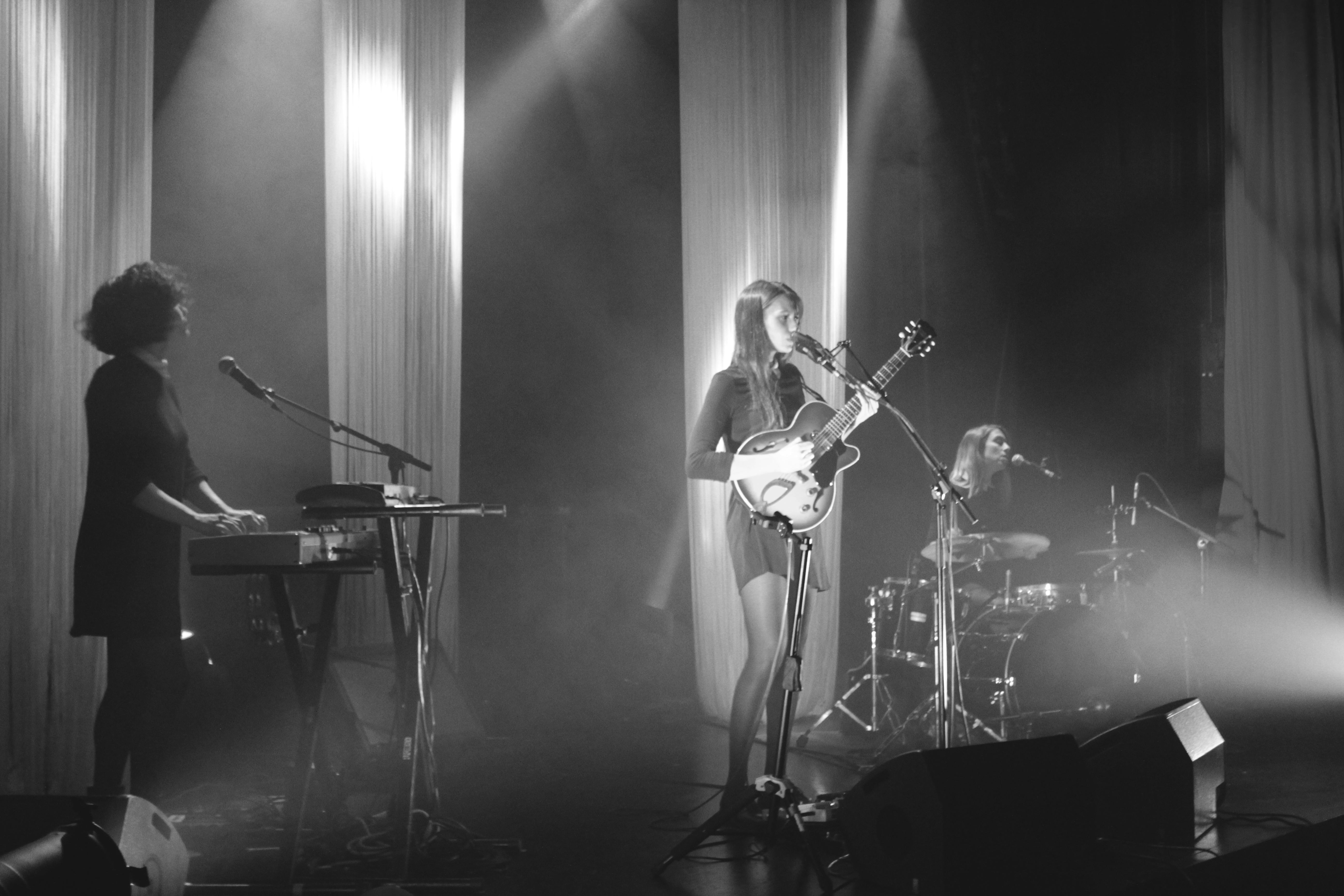 Juniore c’est trois filles en robe noire sage. C’est une batterie, une guitare électrique et un clavier-orgue. C’est aussi une présence scénique un peu statique et intimidée. Mais Juniore c’est surtout la voix grave et chaude de Anna Jean qui rappelle agréablement celle de Françoise Hardy et des années yéyé, et une instrumentalisation minimaliste aux accents électro et aux mélodies acérées. Les textes en français sont poétiques, parfois mystiques. Le monde de Juniore est à la fois chaleureux, nonchalant et réservé, il intrigue et charme. Nous sommes conquises.