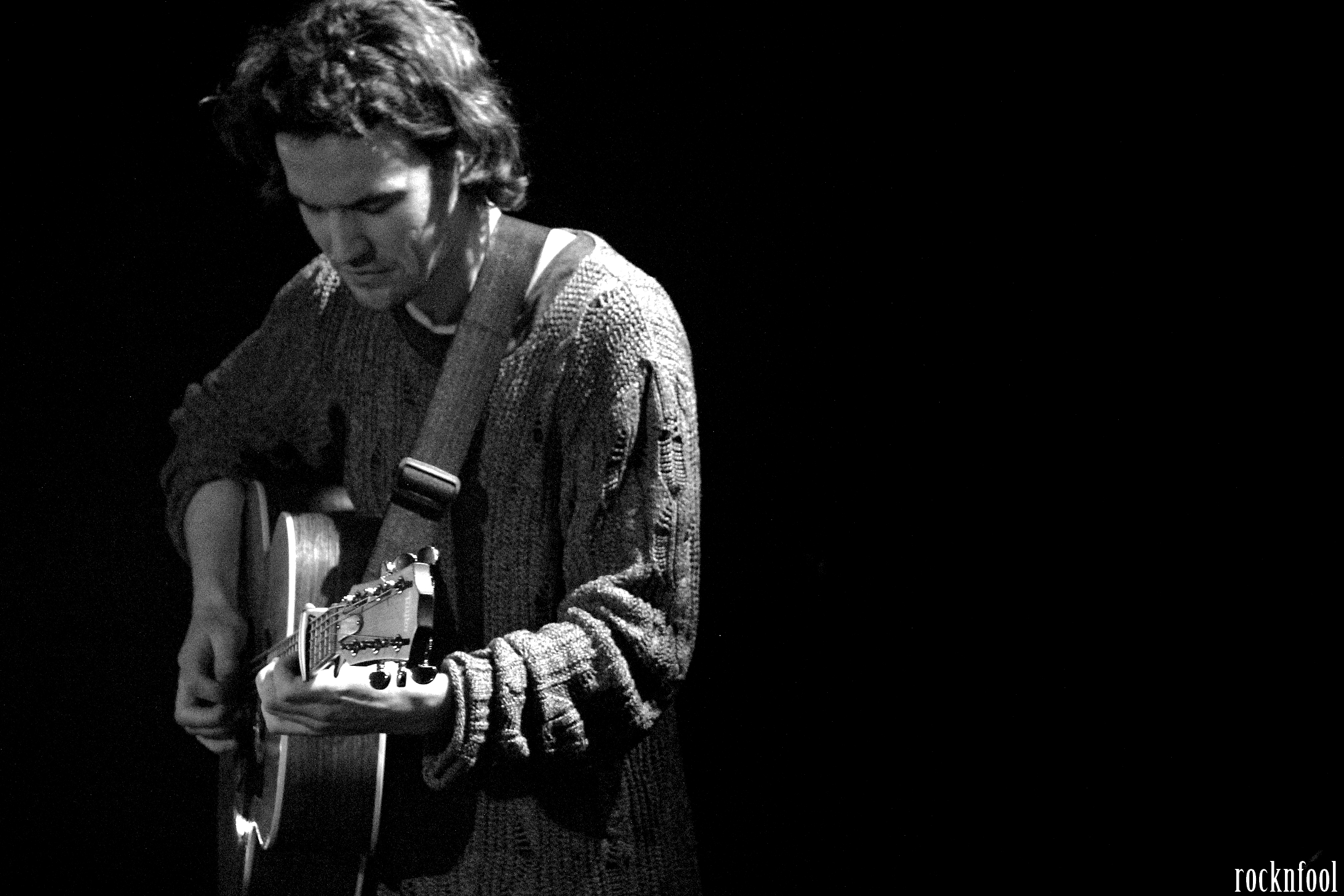 Puis vient Rhodes. Jean noir, tee-shirt noir, visage candide. Il arrive seul avec une de ses innombrables guitares. Ils ne seront que deux sur scène, au maximum. Tommy Ashby vient prêter main-forte, pour une deuxième ligne de guitare, et un soutien harmonique sur la moitié des titres. C’est ce qu’il fallait, pas moins, pas plus. On était un peu anxieuses, on avoue, de le voir débarquer avec un groupe entier, qui aurait comblé les silences de sa musique et chamboulé le doux équilibre de la fusion de la guitare-voix.