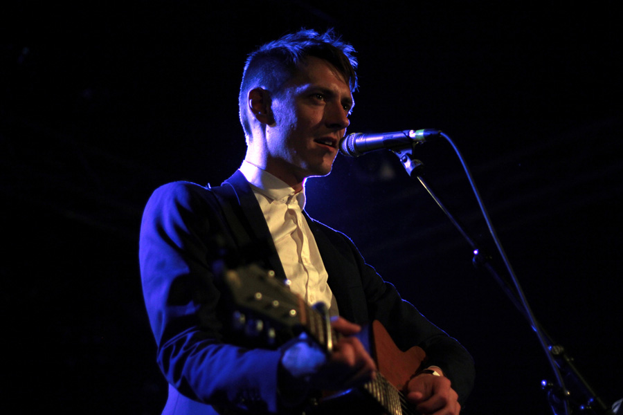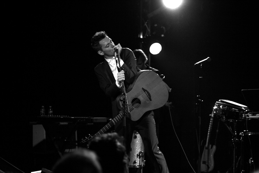 Dans sa voix scandée presque parlée se cache une émotion violente qui contraste avec les samples et rythmiques électroniques sobres. Du décalage froideur musicale, beat dansant et poésie torturée naît un show hypnotisant. Il n’y a qu’à observer ses yeux fixant le lointain, pétillants et animés d’une passion mystique.