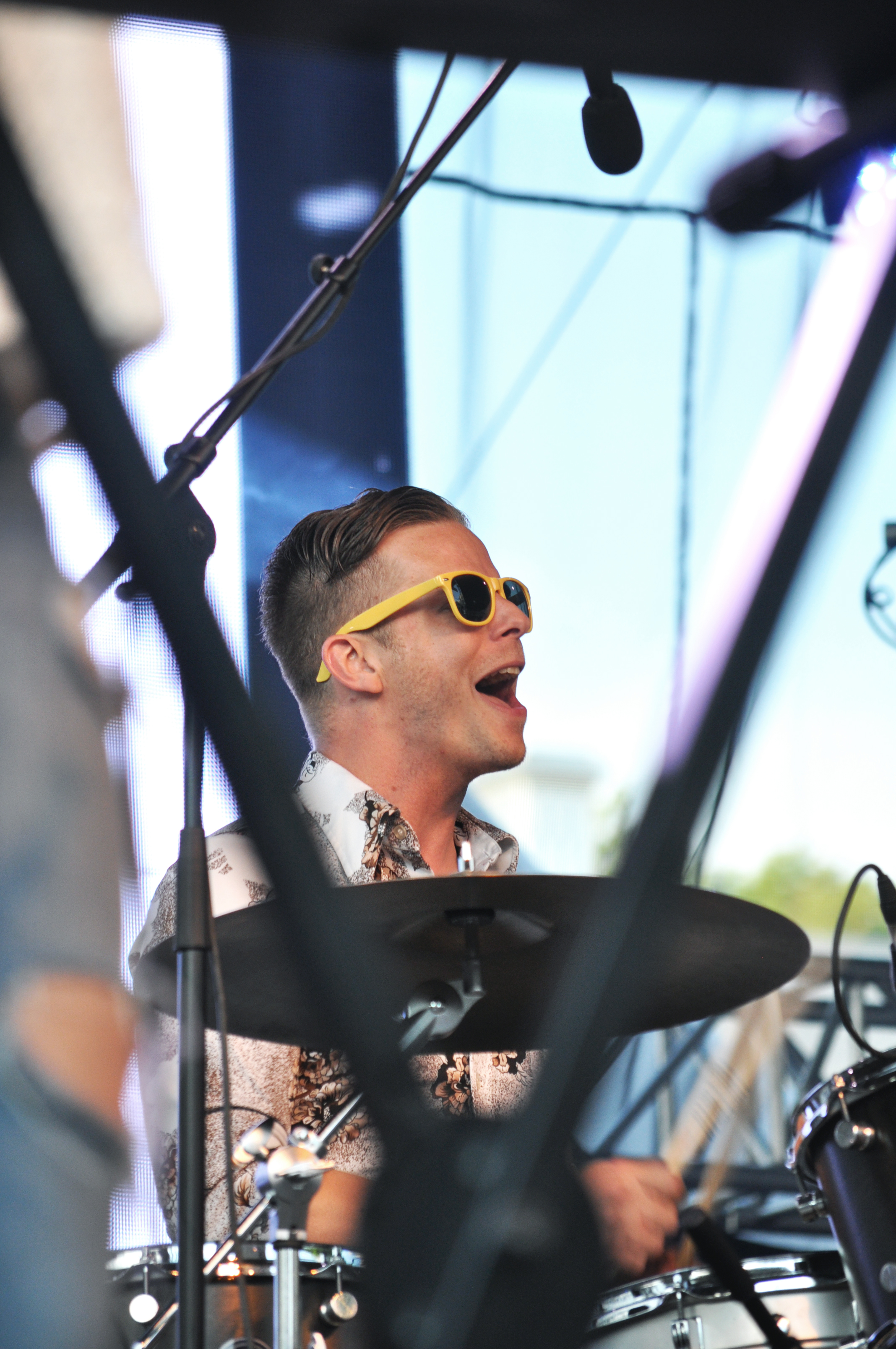 Quand les Strumbellas débarquent sur scène, tu sais d’avance que ça va être chouette à la foule amassée tout autour de l’enceinte officielle de la scène Hydro Québec. Il faut dire que leur folk a de quoi attirer les oreilles des plus impénétrables. Des mélodies catchy et des instrumentalisations enjouées, et nous voilà complètement dans l’ambiance d’un festival d’été en bonne et due forme.”Take that Montreal !” lance même Simon, le chanteur du groupe, ravi de la bonne interaction avec la foule. Les Canadiens parcourent Hope et y ajoutent des titres de leurs premiers albums, “Sheriff”, “Sailing”. Leur folk est bien calibré pour le festivals et le spectacle est bon. Presque normal, puisqu’ils tournent depuis la sortie de leur album en Amérique du nord. Peut-être un peu trop bon, trop rodé en fait, on trouve que cela manque un petit peu de naturel et de spontanéité. Il n’empêche, on est ravis d’entendre les superbes “Wild Sun” ou “Shovels & Dirt”, ainsi que les “Spirits” et autre “We Don’t Know”. Toutes leurs interprétations sont fidèles aux versions studio, le public est comblé.