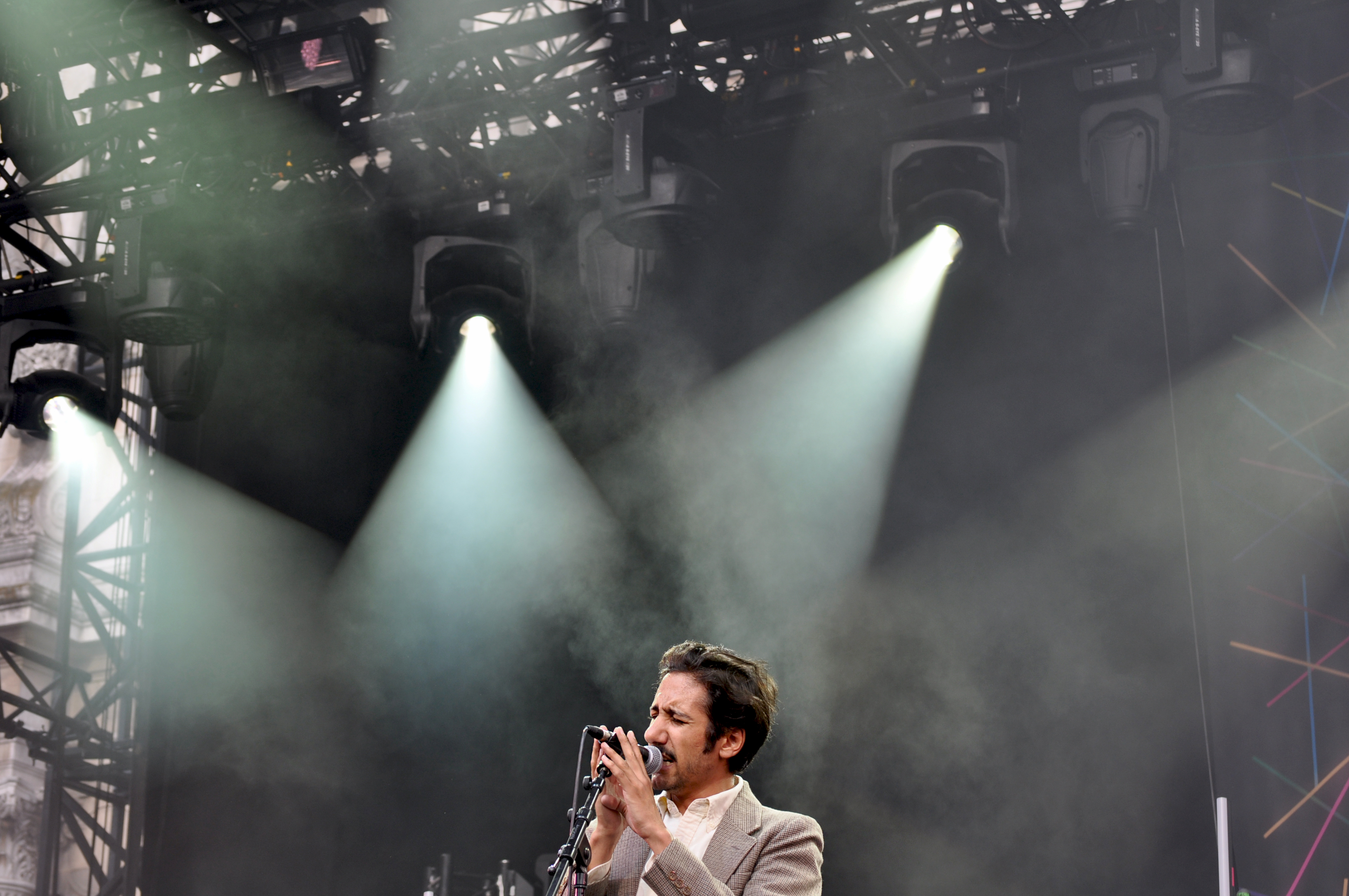 Les aléas de la vie ont fait qu’on a loupé le début des concerts de cette première journée du FNAC Live. Mais, heureusement, on arrive quand Lola Marsh commence. La jeune formation israélienne commence à être habituée à jouer à Paris. Ce soir-là, on les a sentis encore plus assurés sur l’immense scène de l’hôtel de ville. Elle, magnifique, joue de sensualité, avec cette voix haut-perchée. Elle s’amuse avec le public, n’hésite pas à lui dire qu’il est mauvais quand il ne répond pas à ses questions. Eux, heureux d’être sur scène, échangeant les instruments à mesure que le set avance. Le sourire est communicatif. Lola Marsh irradie de bonne humeur et assurément, le public est séduit par ce petit bout de femme et ce groupe. Nous aussi, mais ça fait un bout de temps déjà.