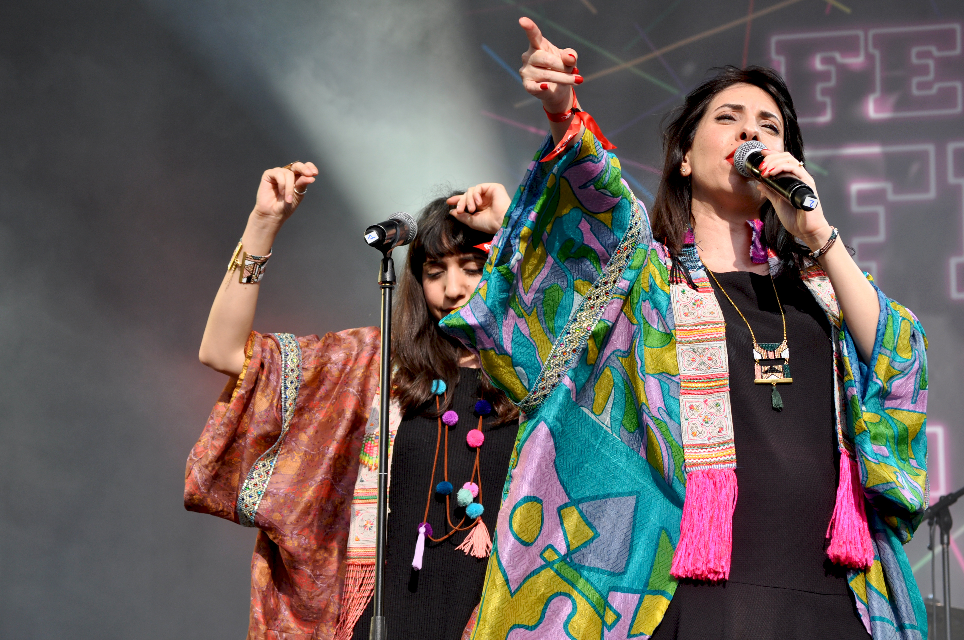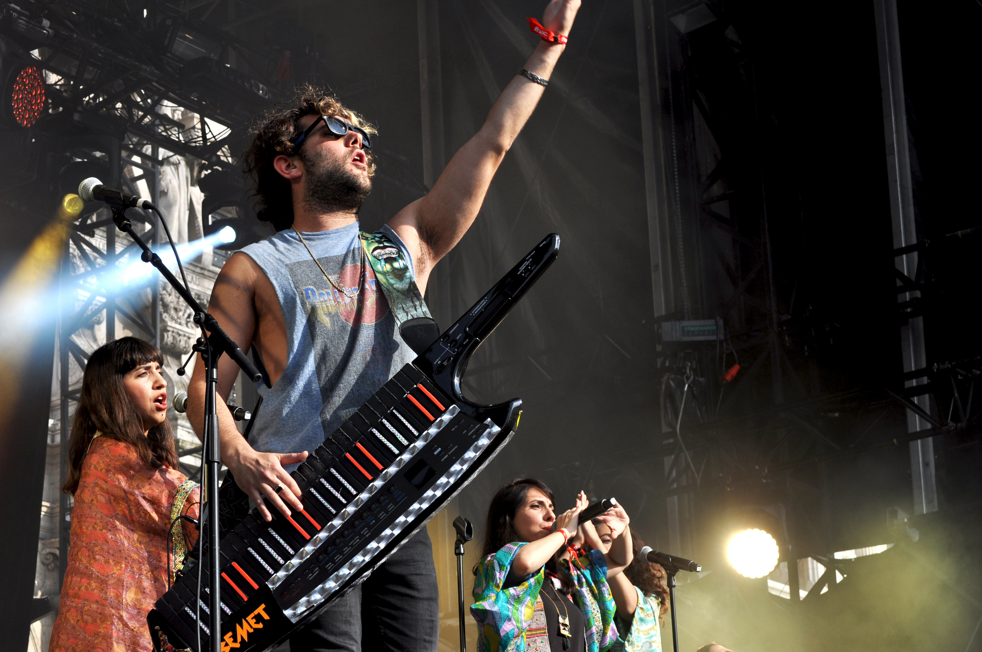 Elles sont soeurs, elles sont trois, elles revendiquent fièrement leurs origines dans leur musique aux accents orientaux affirmés. Elles modernisent leur folklore traditionnel du Yémen avec intelligence et c’est rafraîchissant. Les musiques traditionnelles orientales, c’est un peu ma passion cachée. Plus d’ailleurs, j’avais fait une playlist dans laquelle je te parlais de cette musique qui parlait à mes origines. Et A-Wa, c’est un plaisir à voir sur scène, à écouter. C’est l’instant déconnexion, ce moment où tu écoutes, tu danses, tu te lâches, où plus rien n’importe sauf communier avec la personne qui fait exactement la même chose que toi, à côté. Les trois filles mélangent donc les sons de leur enfance avec des sonorités plus électroniques et modernes. À cela, s’ajoute des magnifiques harmonies. Et des sourires. Toujours des sourires. Le parvis de l’Hôtel de ville a craqué pour elles. Logique.