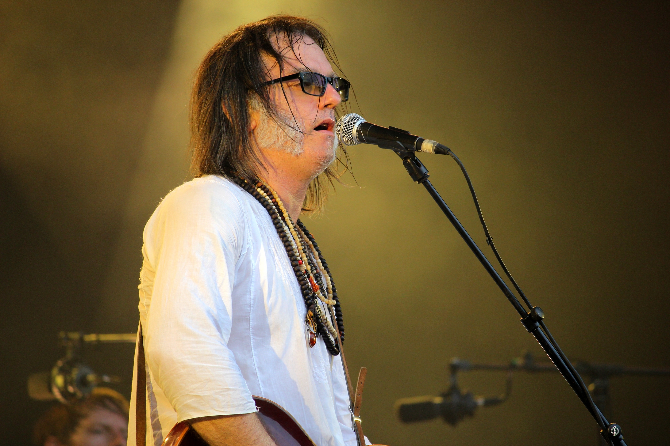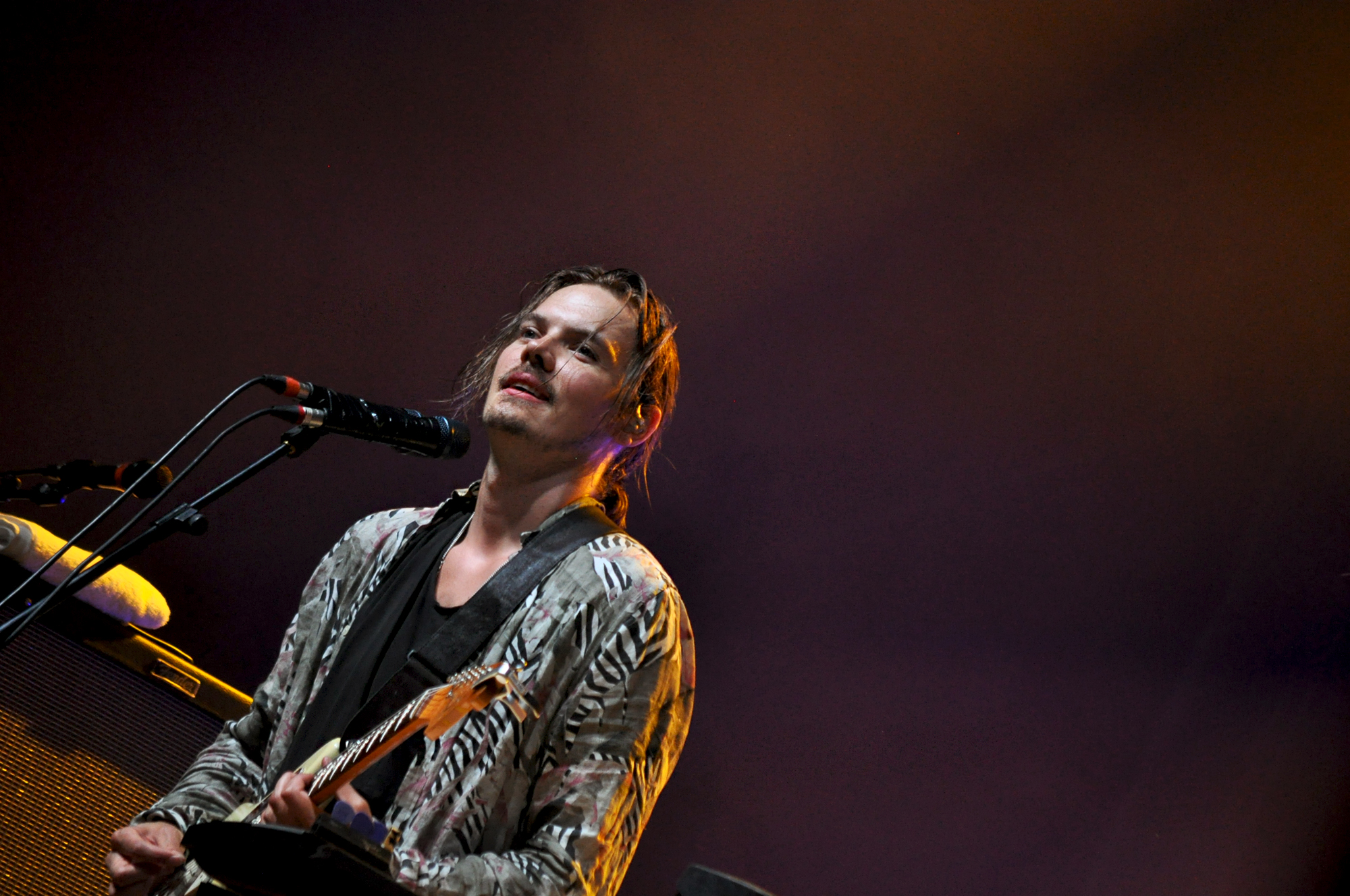 Comment parler d’Edward Sharpe & The Magnetic Zeros ? Pour être honnêtes avec vous, une partie de l’équipe a décroché avec Person A leur dernier album… Mais bon, on ne se démonte pas, et on se rend à la Grande Scène pour assister à un spectacle magistral de pure folie. Les 9 membres du groupes sont rassemblés au milieu de la scène, fournissant un cocon musical nourri de sons composites, allant de la clarinette au tambourin-caxixis, en passant par un tuba jazz. Mais le héros du jour, celui qui attire tous les regards avec sa voix addictive, c’est le divin gourou Alex Ebert bien sûr. Bain de foule dès la première chanson, le frontman du groupe californien enchaîne clope sur clope, avant de se rafraîchir le gosier de vin rouge. Il a le regard possédé en arpentant l’avant scène, incapable de s’immobiliser plus d’une seconde. Alors que le collectif s’est lancé dans “I Don’t Wanna Pray”, il tend le micro à une jeune femme téméraire (et amoureuse) qu’il fait chanter (et qu’il finira par faire monter sur scène, pour son anniversaire). “Wake Up The Sun” nous fait furieusement penser à une démonstration de foi, tandis que “Day Dream” nous fait chalouper comme jamais, on a l’impression d’appartenir à cette sympathique secte d’exaltés. Pour finir, c’est “Truth” et “Home” qui achèvent de nous fasciner (et de ravir le public). C’est décidé, on lâche tout et on adhère au Sharpisme direct.