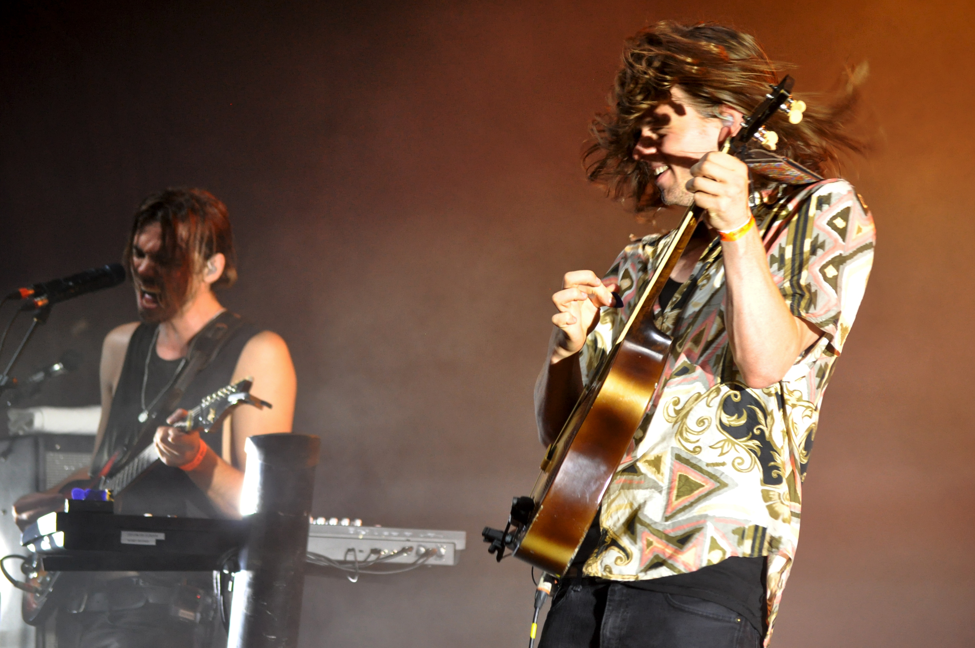 Soleil de plomb et belle ambiance à la Grande Scène pour le concert de Wolfmother, alors qu’une partie de la foule compacte se déhanche en plein cagnard. Le trio australien en est bien conscient. Riff sur riff, ils balancent leur rock énergique et brut très British. Leur son sec te prend aux tripes : ça gigote dans ton corps et tu te sens posséder petit à petit par le démon du rock. Ça vibre aussi à l’intérieur du corps du bassiste-claviériste qui ne tient pas en place, il transpire chaque note en tabassant son clavier. Derrière, le batteur envoie la patate, tandis qu’au premier plan, Andrew Stockdale, le chanteur-guitariste chevelu attire tous les regards, avec son timbre de voix haut-perché (“Victorious”) et ses riffs sulfureux (“How Many Times”). On adore.