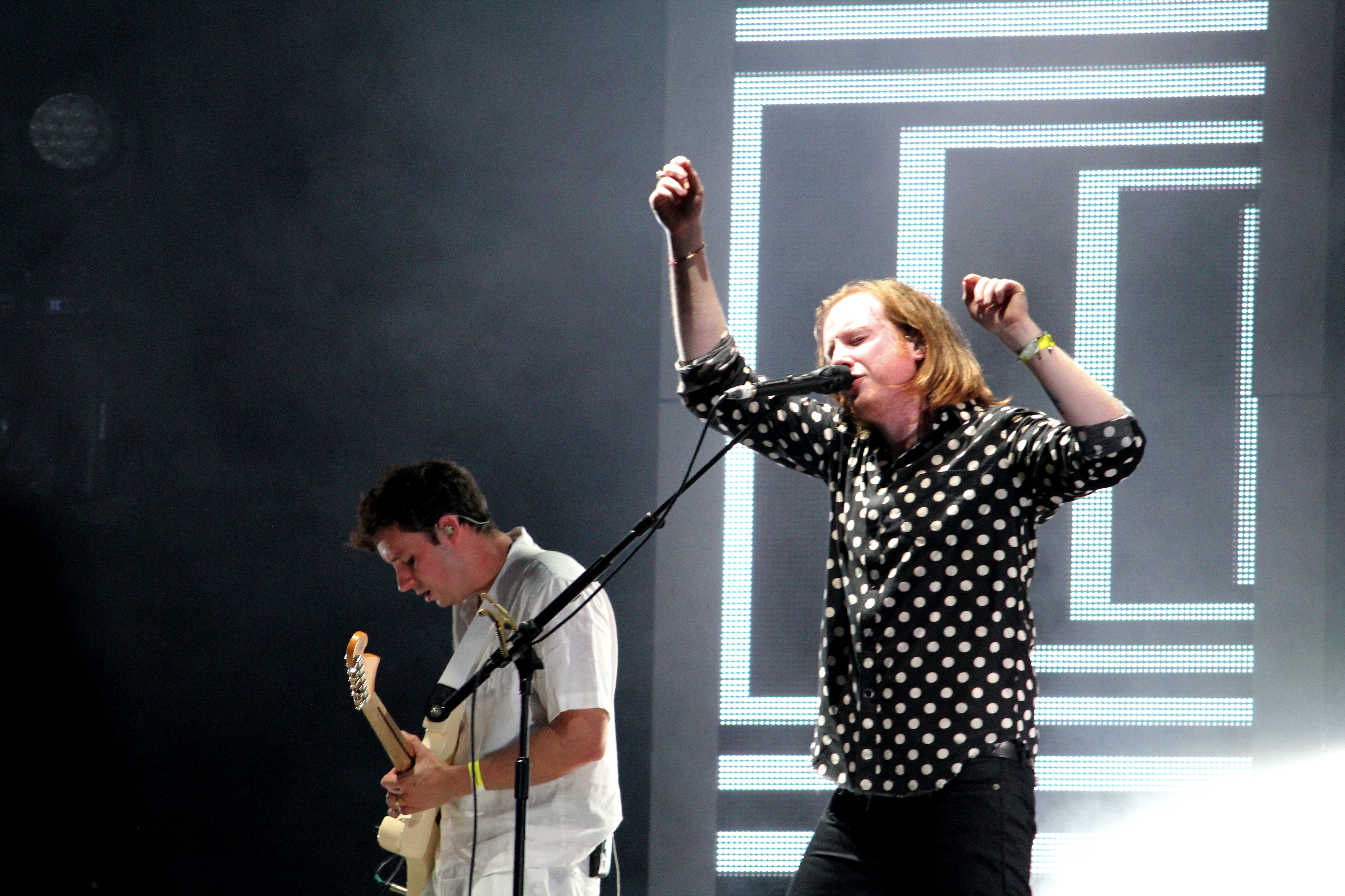 On était allé jusqu’à Clermont-Ferrand, au Festival Europavox pour voir les deux enfants terribles du rock anglais. C’était moite, sexy. Terriblement sexy. Ce soir-là à Rock en Seine, c’était un peu différent. Un set alcoolisé (oui, on a remarqué qu’Alex n’a pas bu que de l’eau avant de monter sur la Grande Scène), un peu désorganisé mais tout de même de très haute facture. Le concert joue sur la guerre des egos entre Turner et Kane. Les deux prennent énormément de place et rendent invisibles les autres membres du groupe. Pendant une heure, les garçons parcourent leurs deux albums et agrémentent leur set de deux reprises : “Les Cactus” de Jacques Dutronc (c’était une blague au début) et “Moonage Daydream” de David Bowie. Ce dernier aurait été touché d’un tel hommage.